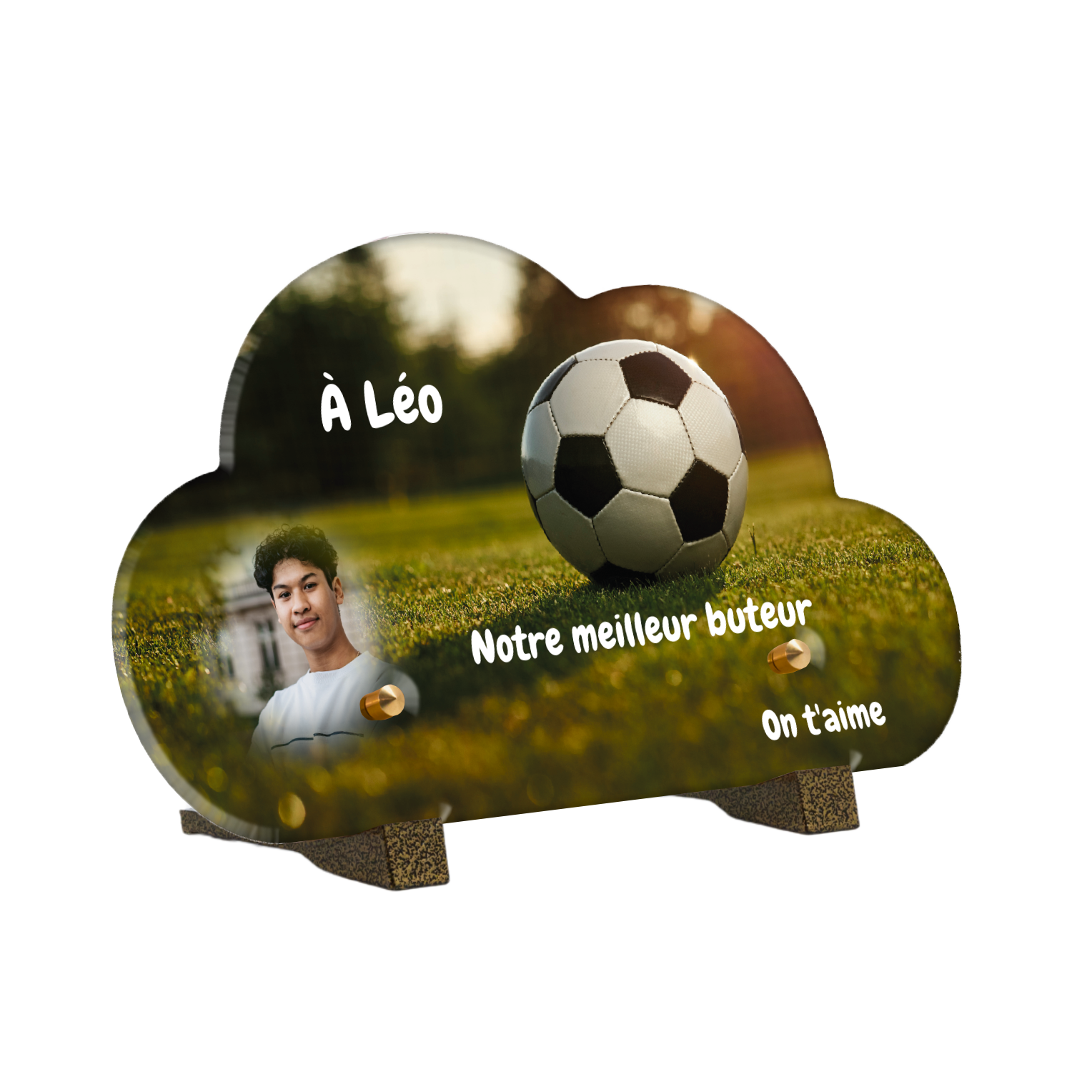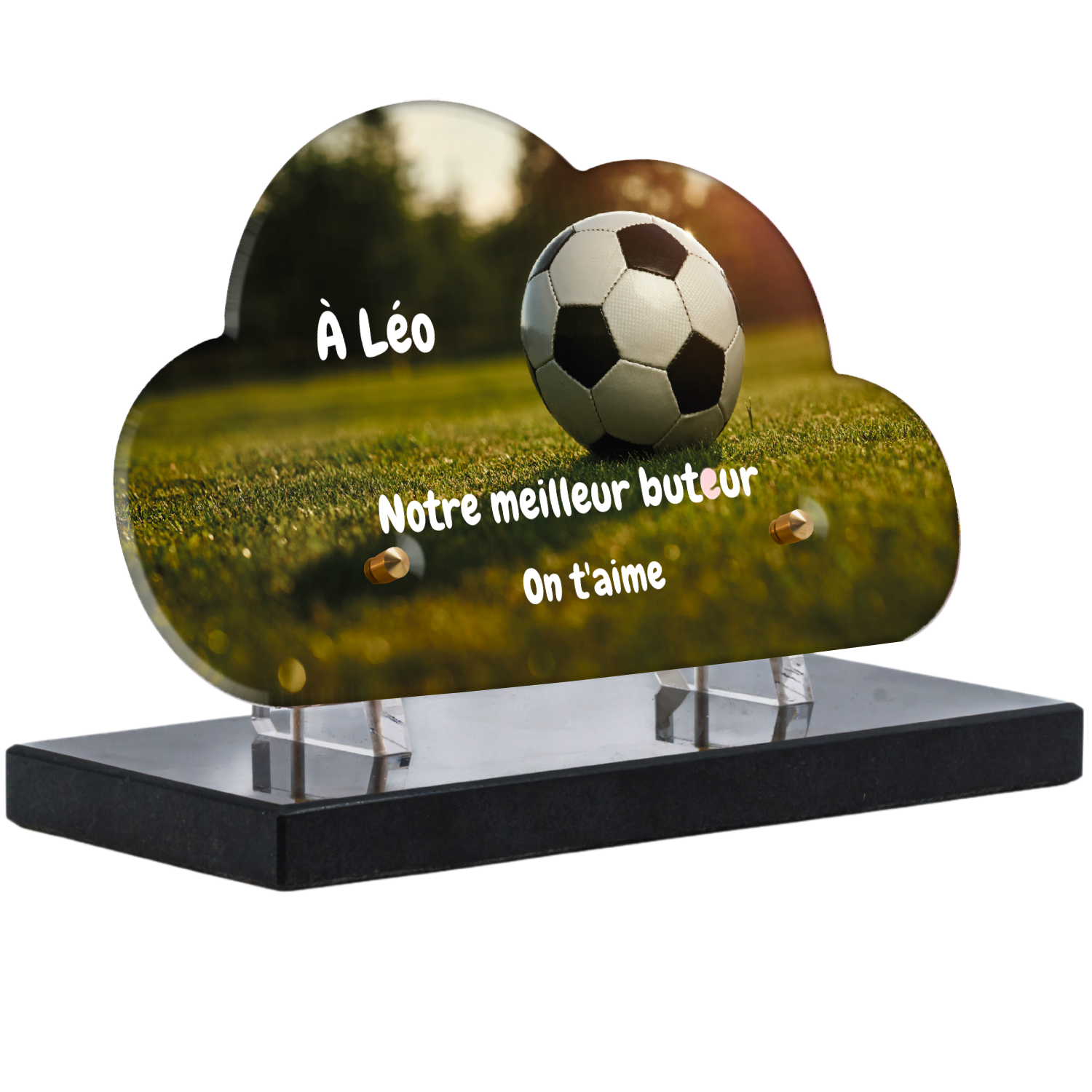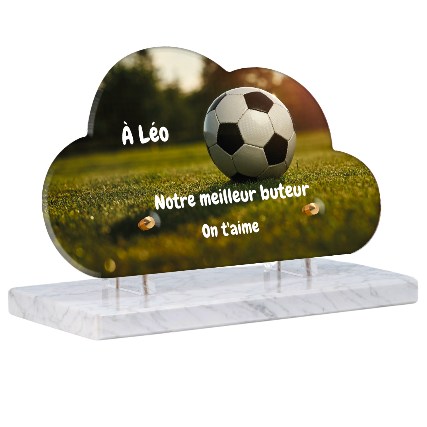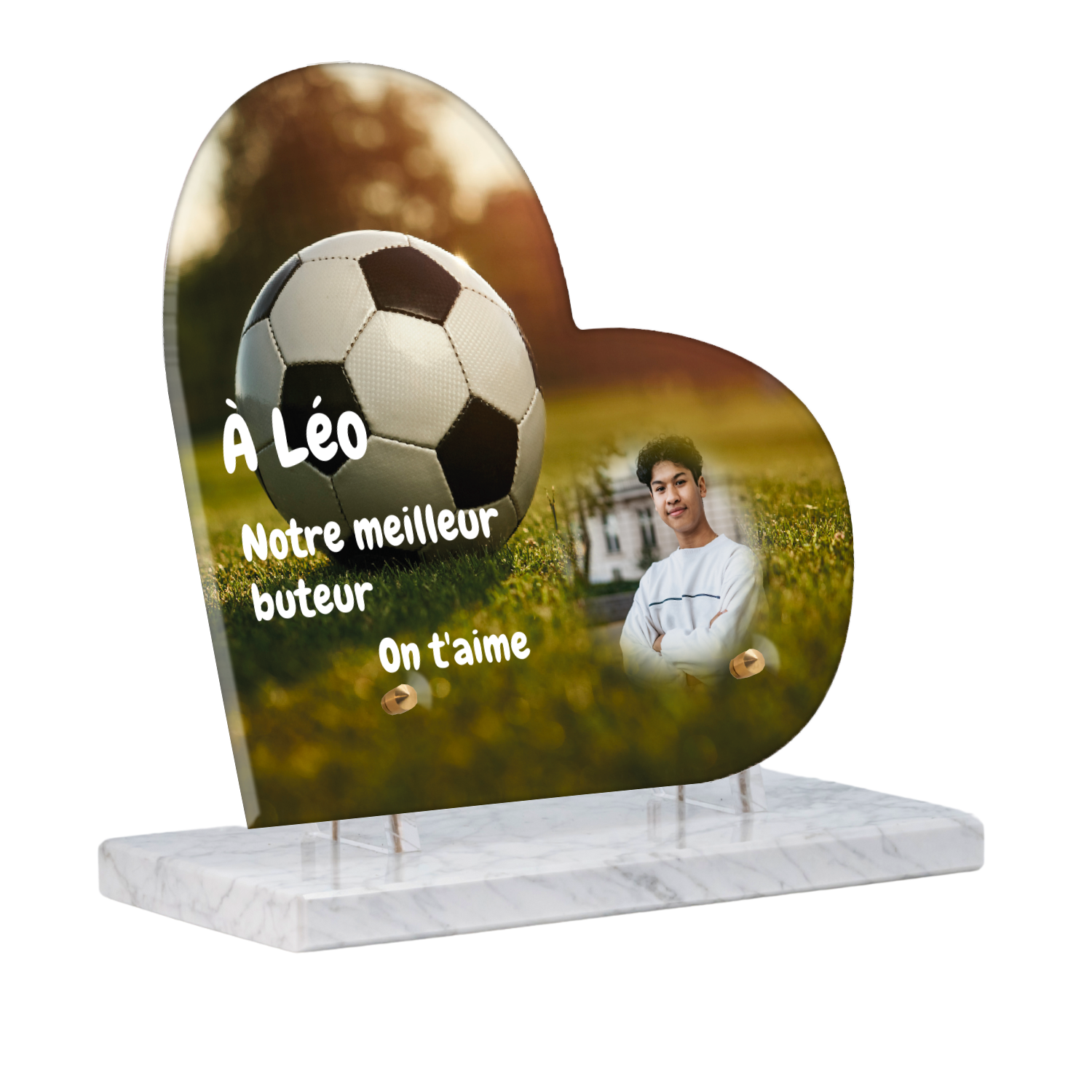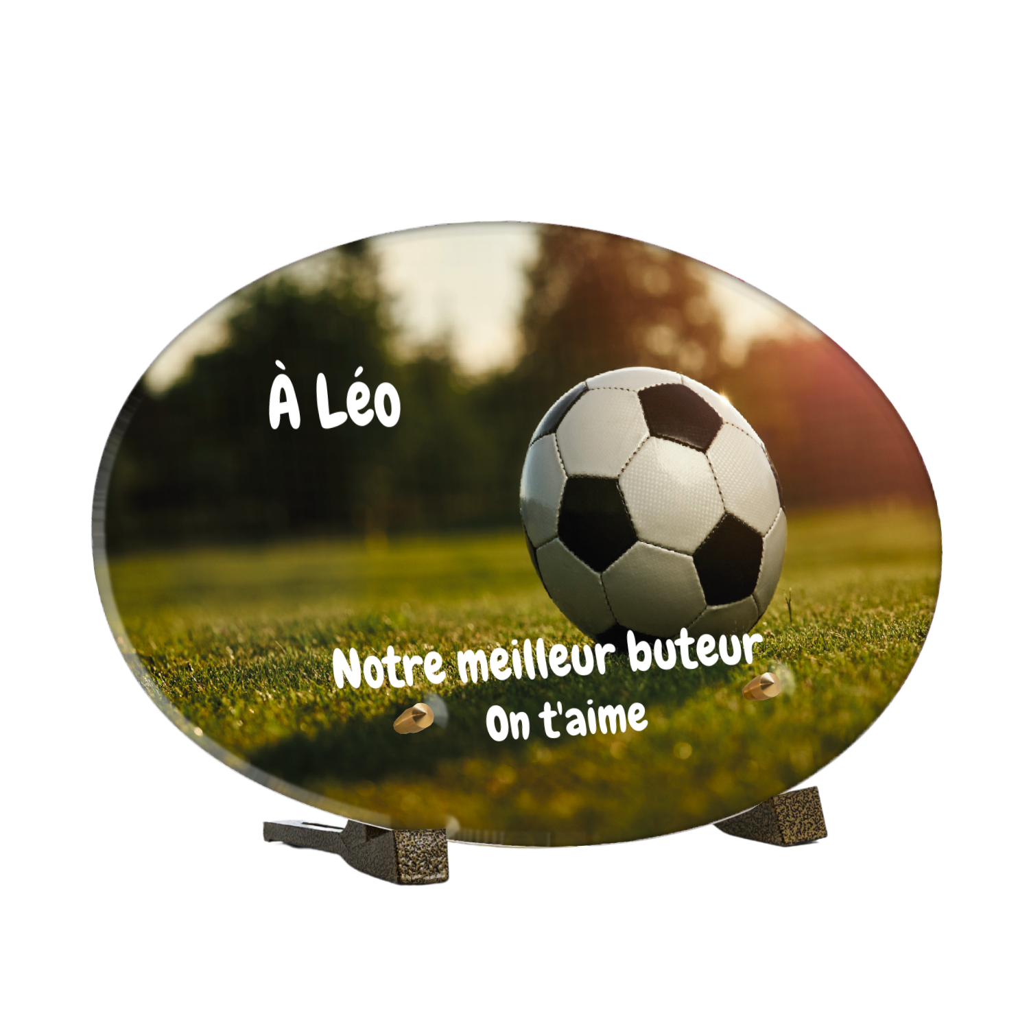 Offrez un hommage unique avec cette plaque funéraire personnalisée représentant un ballon de foot sur un terrain, idéale pour célébrer la passion du défunt. Cette plaque mortuaire allie design moderne et élégance, réalisée en plexiglas de haute qualité pour une finition soignée et résistante aux intempéries. Chaque plaque funéraire moderne est conçue sur mesure, vous permettant d’ajouter un texte personnalisé pour un souvenir véritablement unique. Sa durabilité approuvée garantit une longue conservation, assurant que la mémoire de votre proche reste intacte au fil du temps.