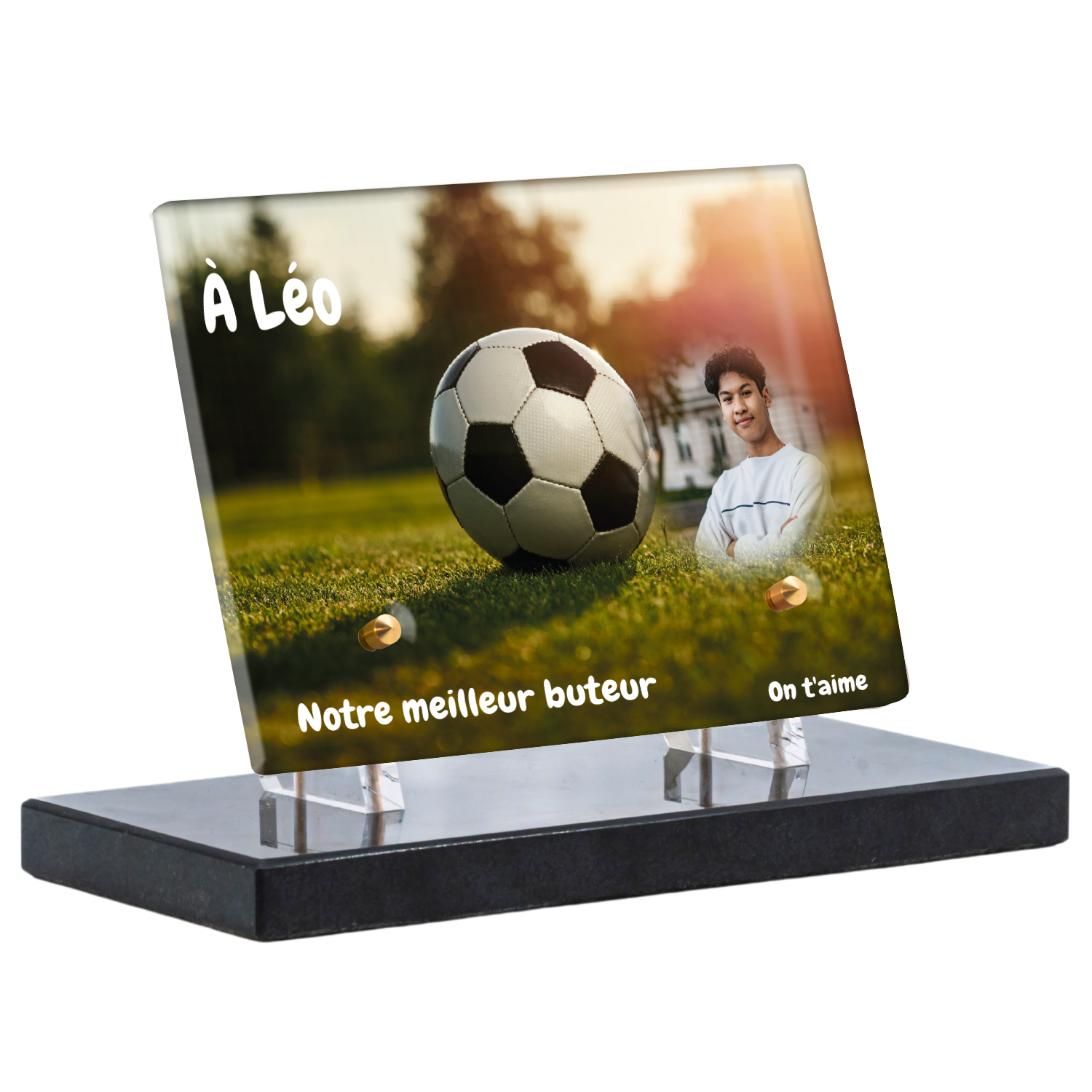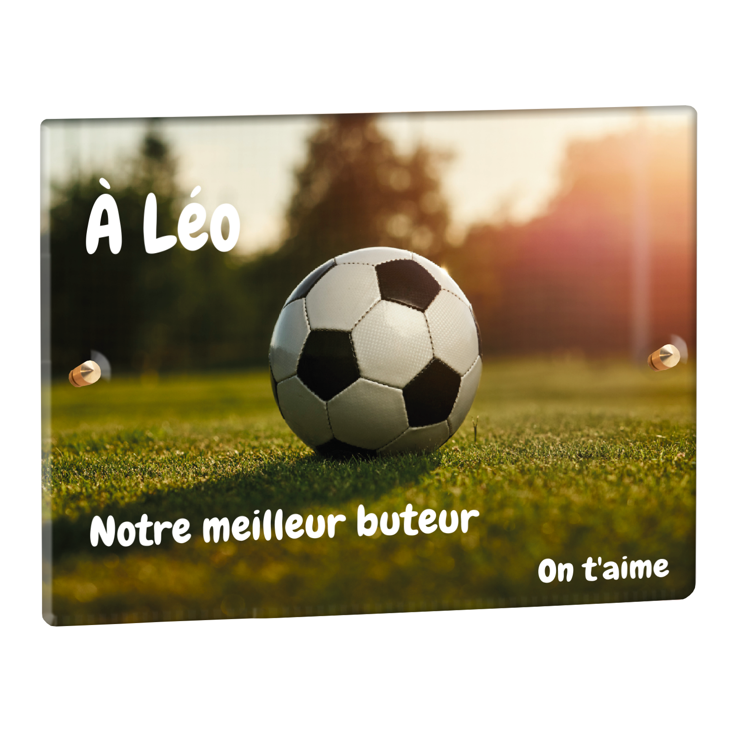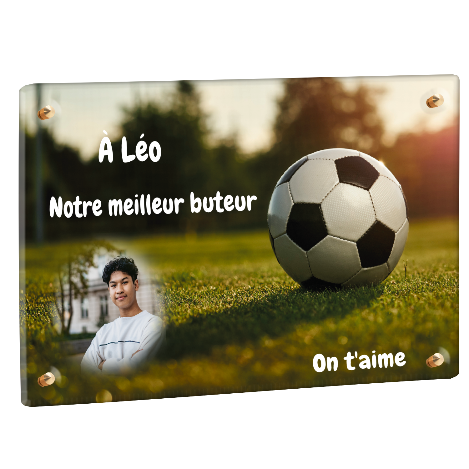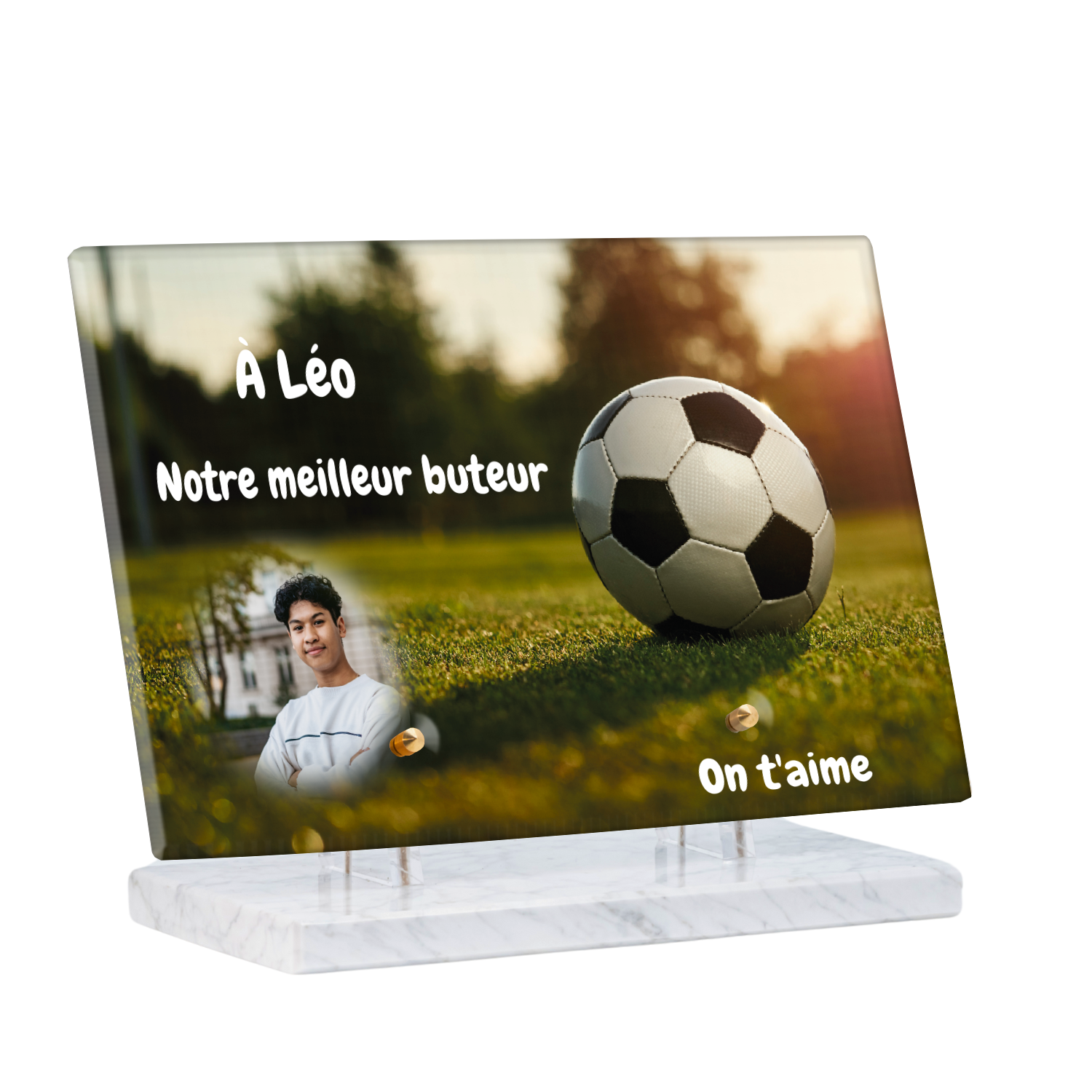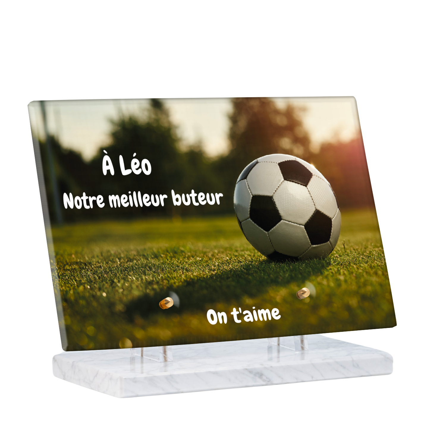 Offrez un hommage unique avec cette plaque funéraire personnalisée représentant un ballon de foot sur un terrain, idéale pour célébrer la passion du défunt. Cette plaque mortuaire allie design moderne et élégance, réalisée en plexiglas de haute qualité pour une finition soignée et résistante aux intempéries. Chaque plaque funéraire moderne est conçue sur mesure, vous permettant d’ajouter un texte personnalisé pour un souvenir véritablement unique. Sa durabilité approuvée garantit une longue conservation, assurant que la mémoire de votre proche reste intacte au fil du temps.