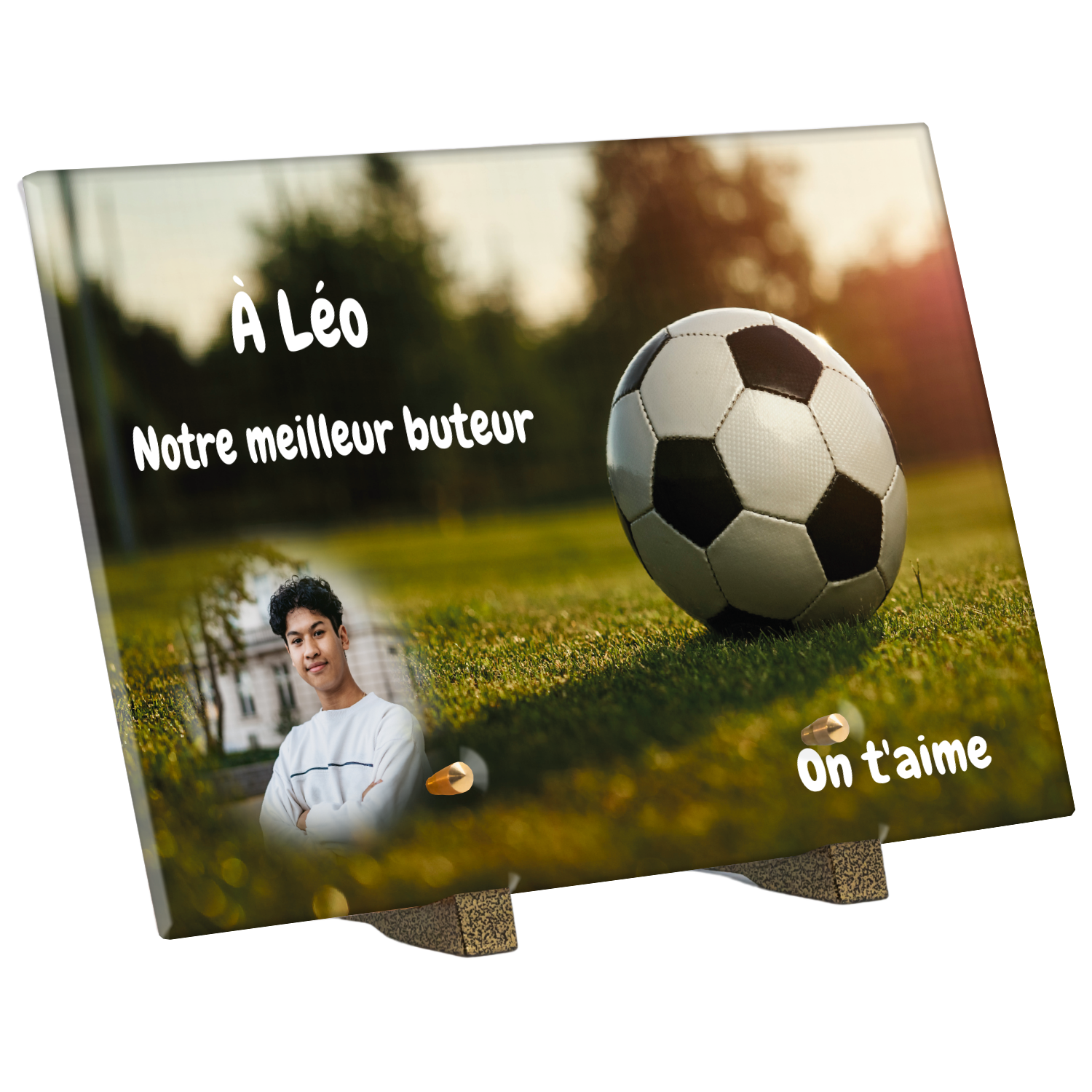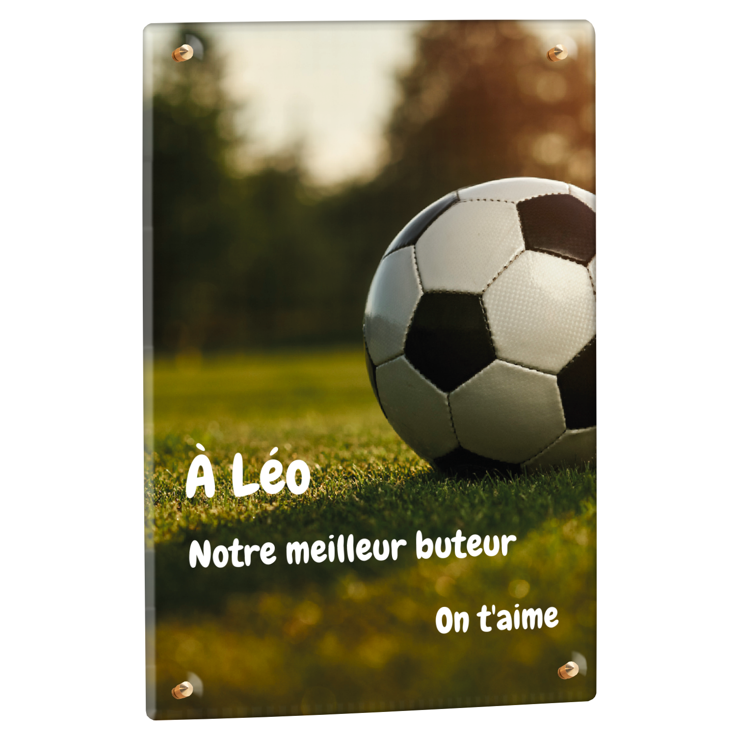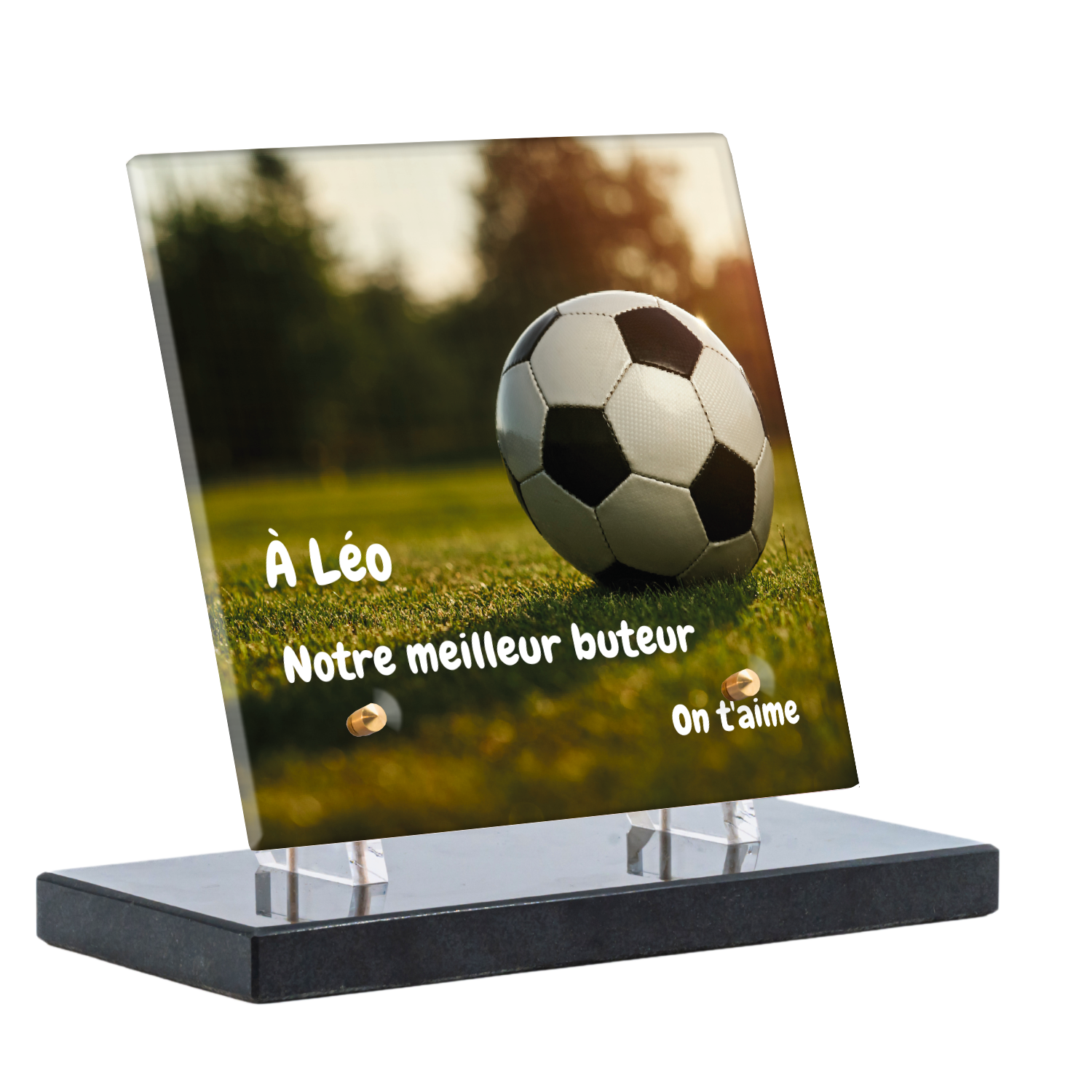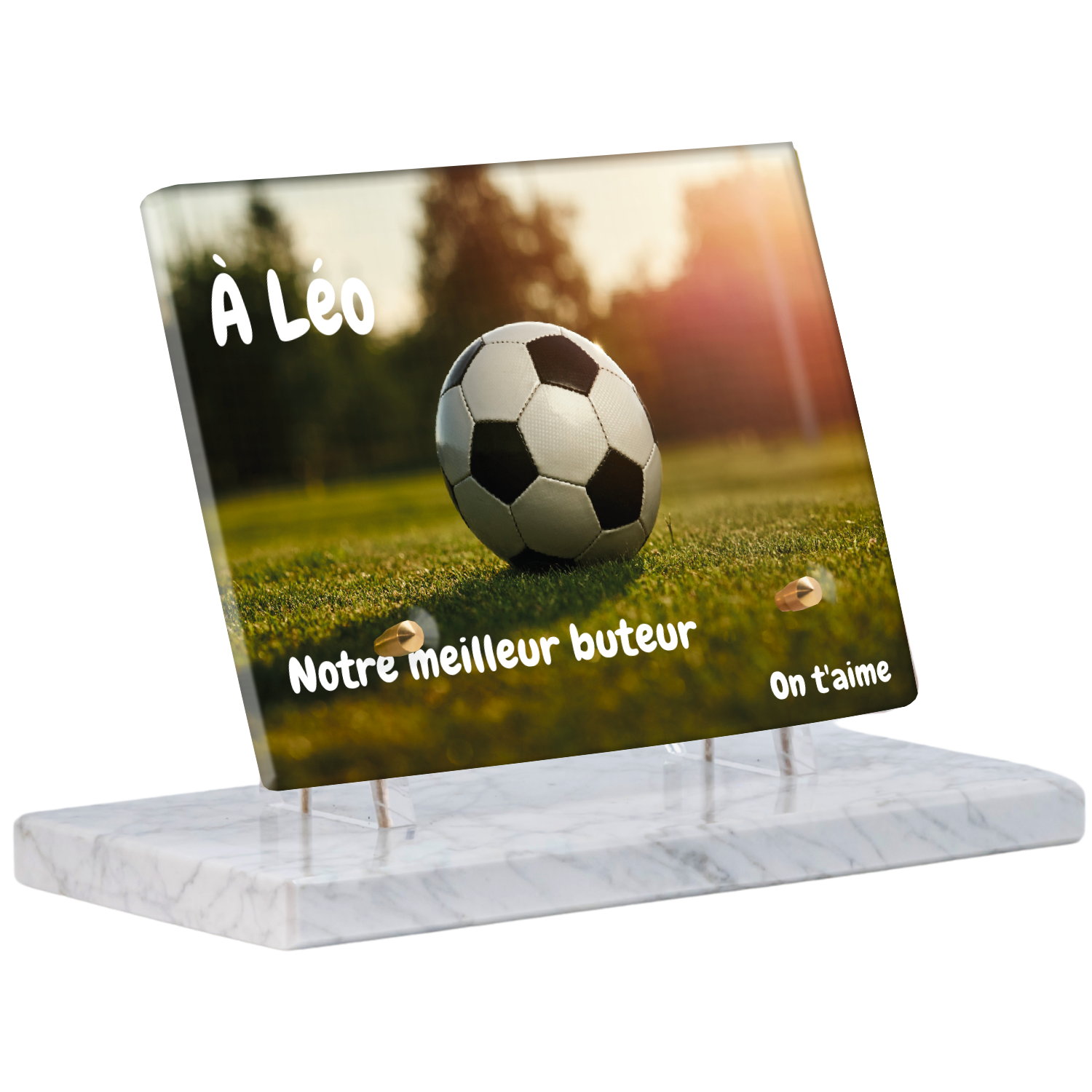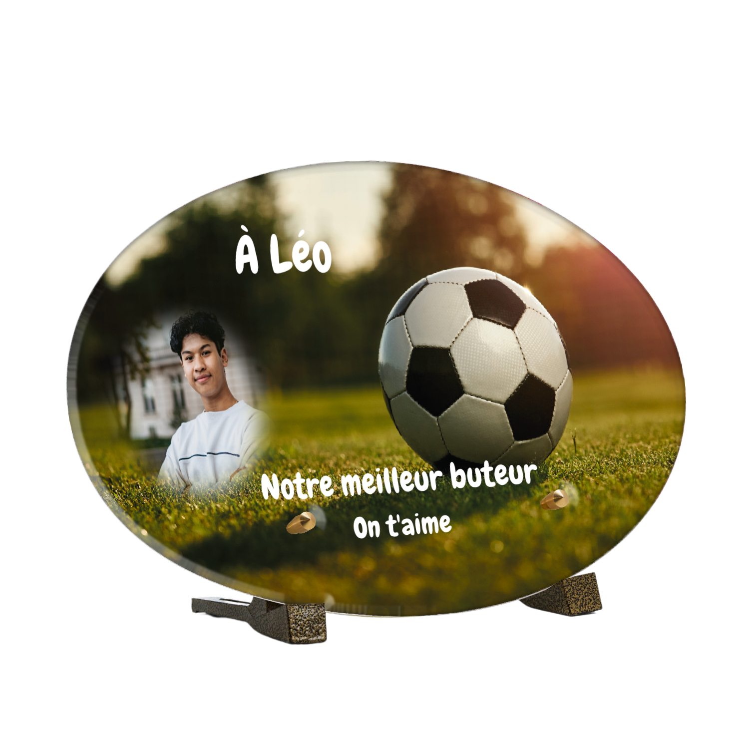 Offrez un hommage unique avec cette plaque funéraire personnalisée représentant un ballon de foot sur un terrain, idéale pour célébrer la passion du défunt. Cette plaque mortuaire allie design moderne et élégance, réalisée en plexiglas de haute qualité pour une finition soignée et résistante aux intempéries. Chaque plaque funéraire moderne est conçue sur mesure, vous permettant d’ajouter un texte personnalisé pour un souvenir véritablement unique. Sa durabilité approuvée garantit une longue conservation, assurant que la mémoire de votre proche reste intacte au fil du temps.