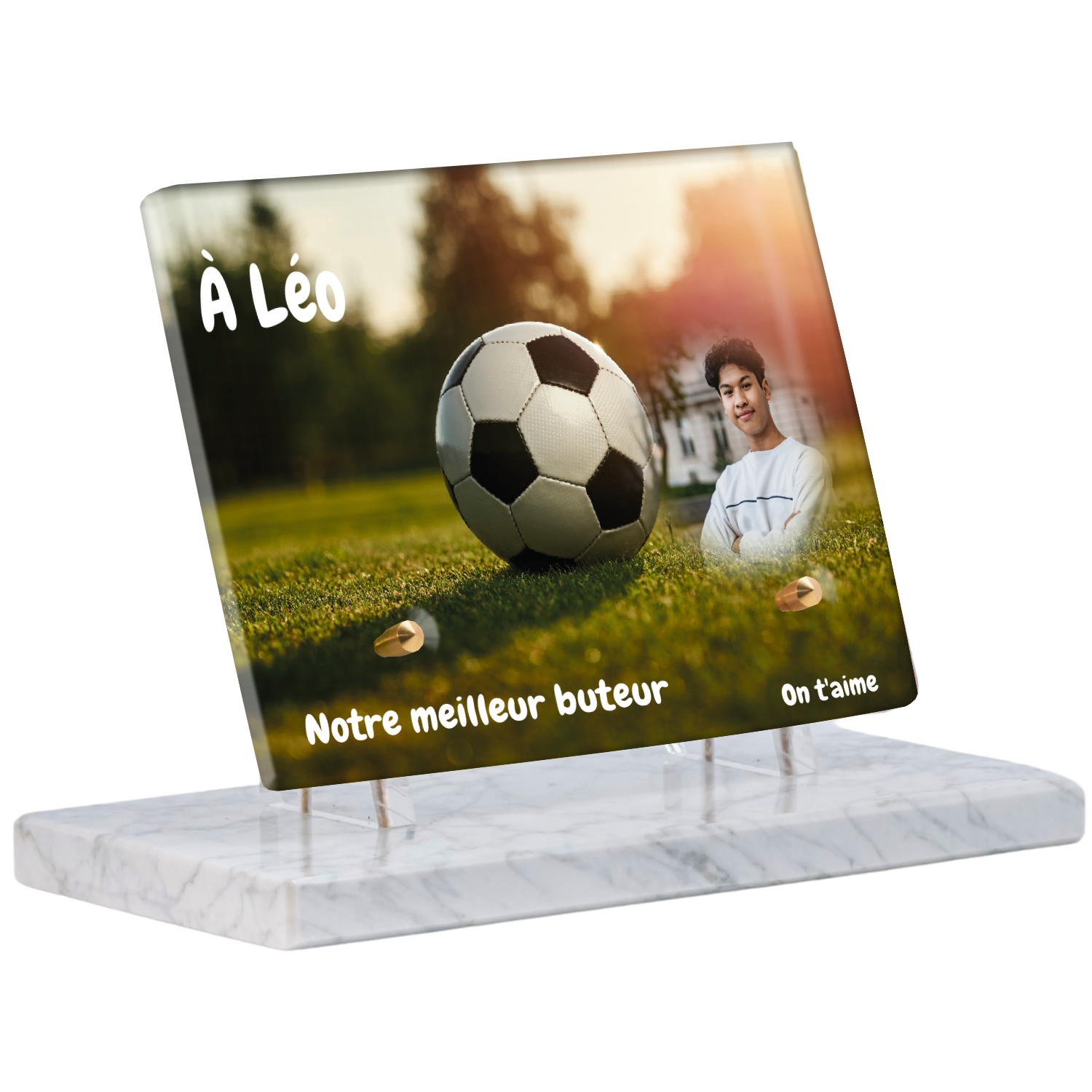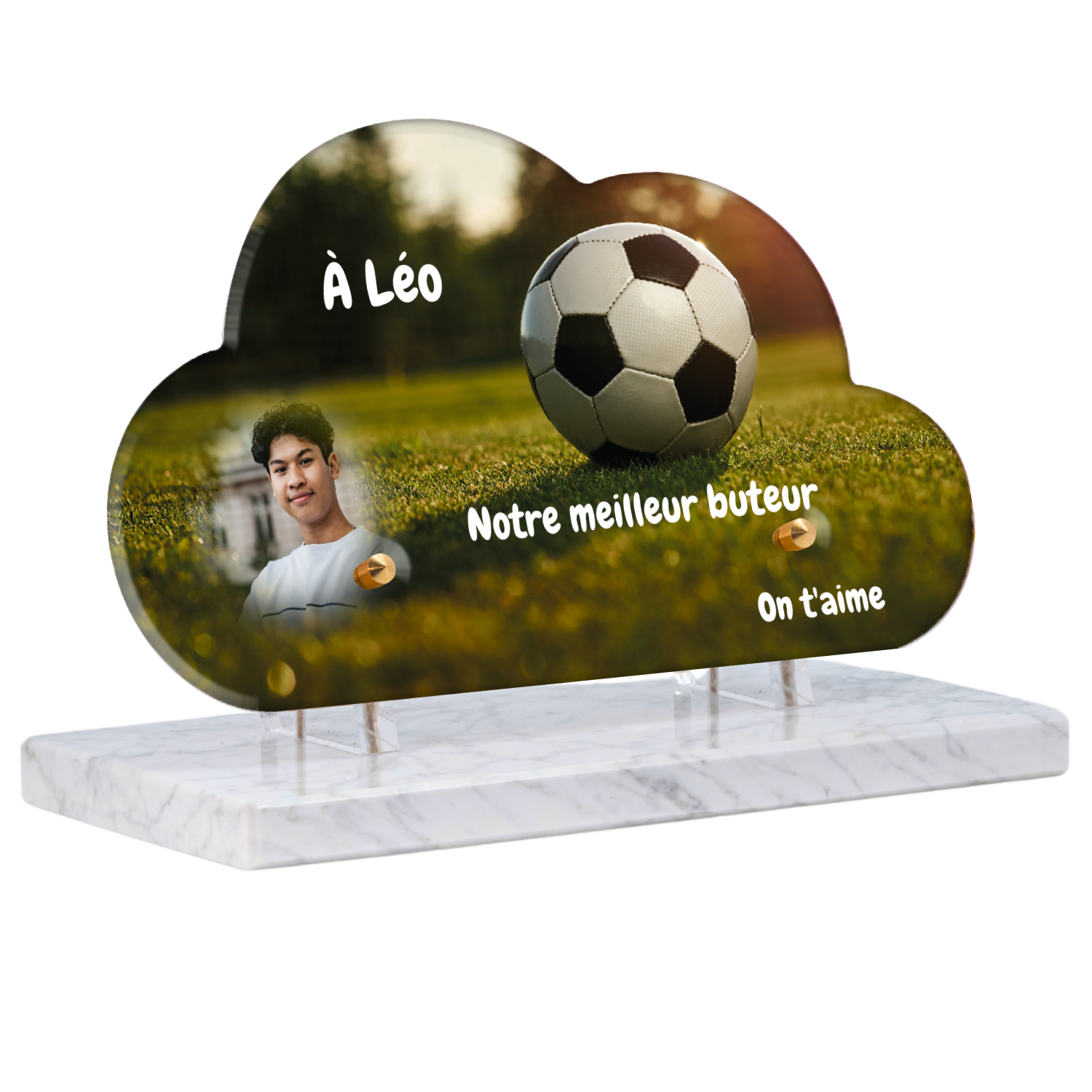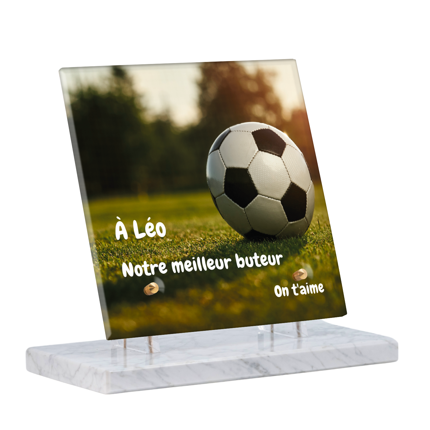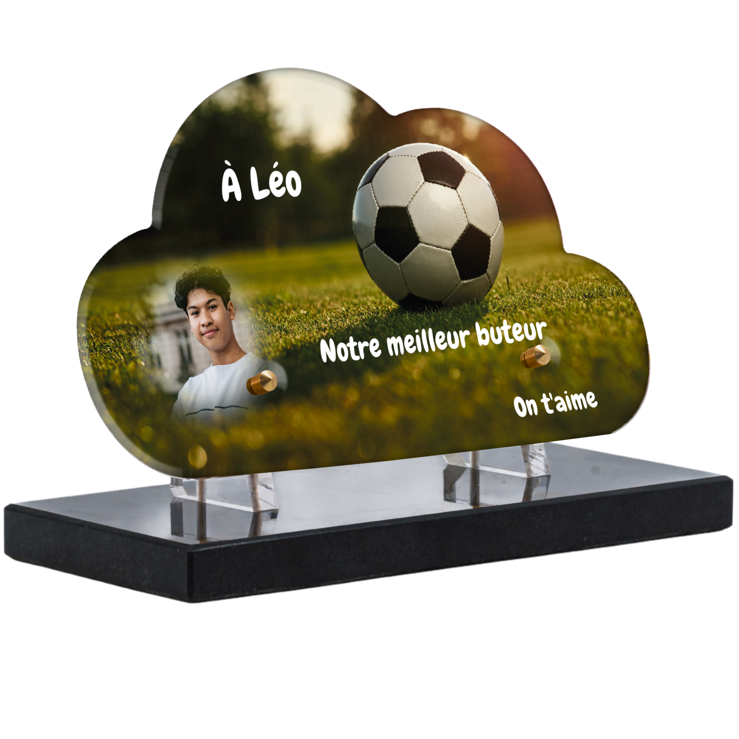 Offrez un hommage unique avec cette plaque funéraire personnalisée représentant un ballon de foot sur un terrain, idéale pour célébrer la passion du défunt. Cette plaque mortuaire allie design moderne et élégance, réalisée en plexiglas de haute qualité pour une finition soignée et résistante aux intempéries. Chaque plaque funéraire moderne est conçue sur mesure, vous permettant d’ajouter un texte personnalisé pour un souvenir véritablement unique. Sa durabilité approuvée garantit une longue conservation, assurant que la mémoire de votre proche reste intacte au fil du temps.
