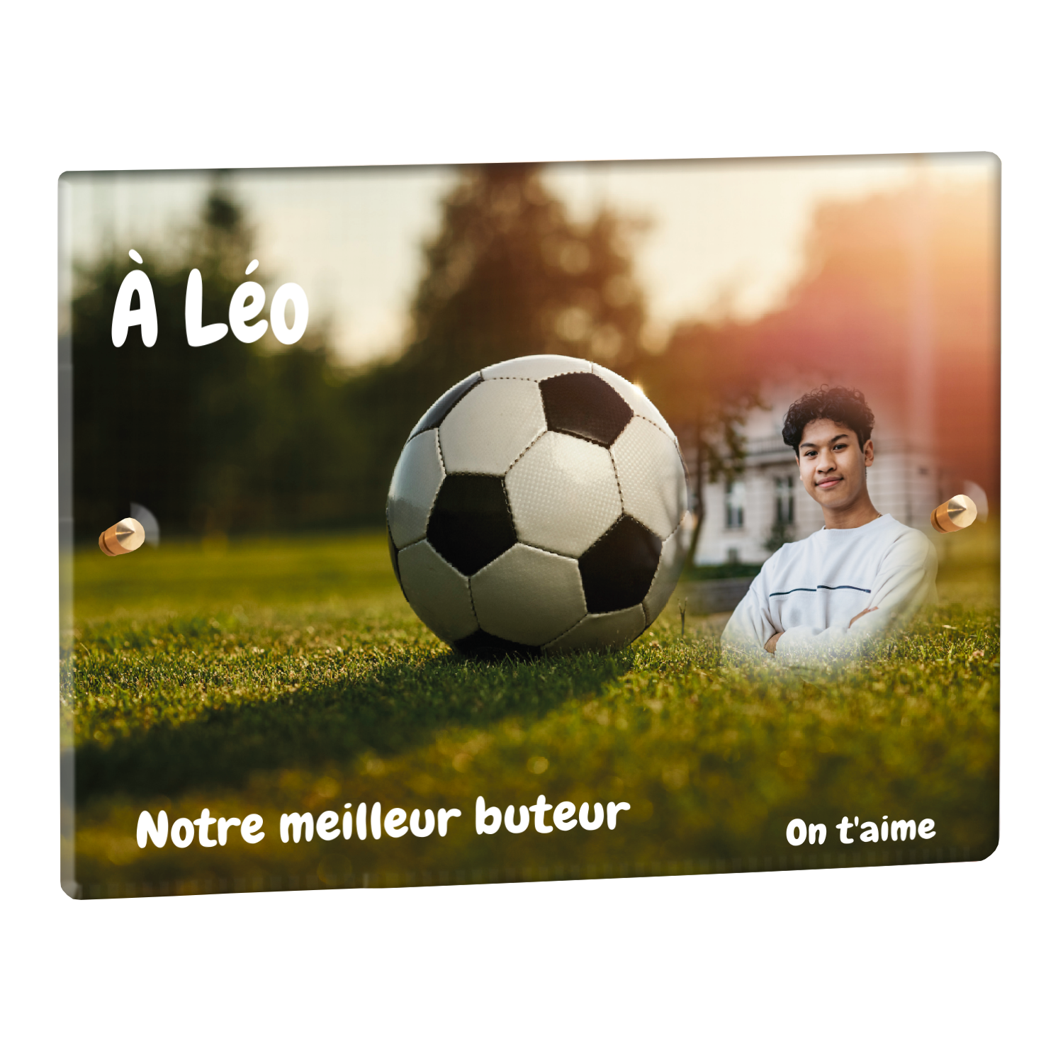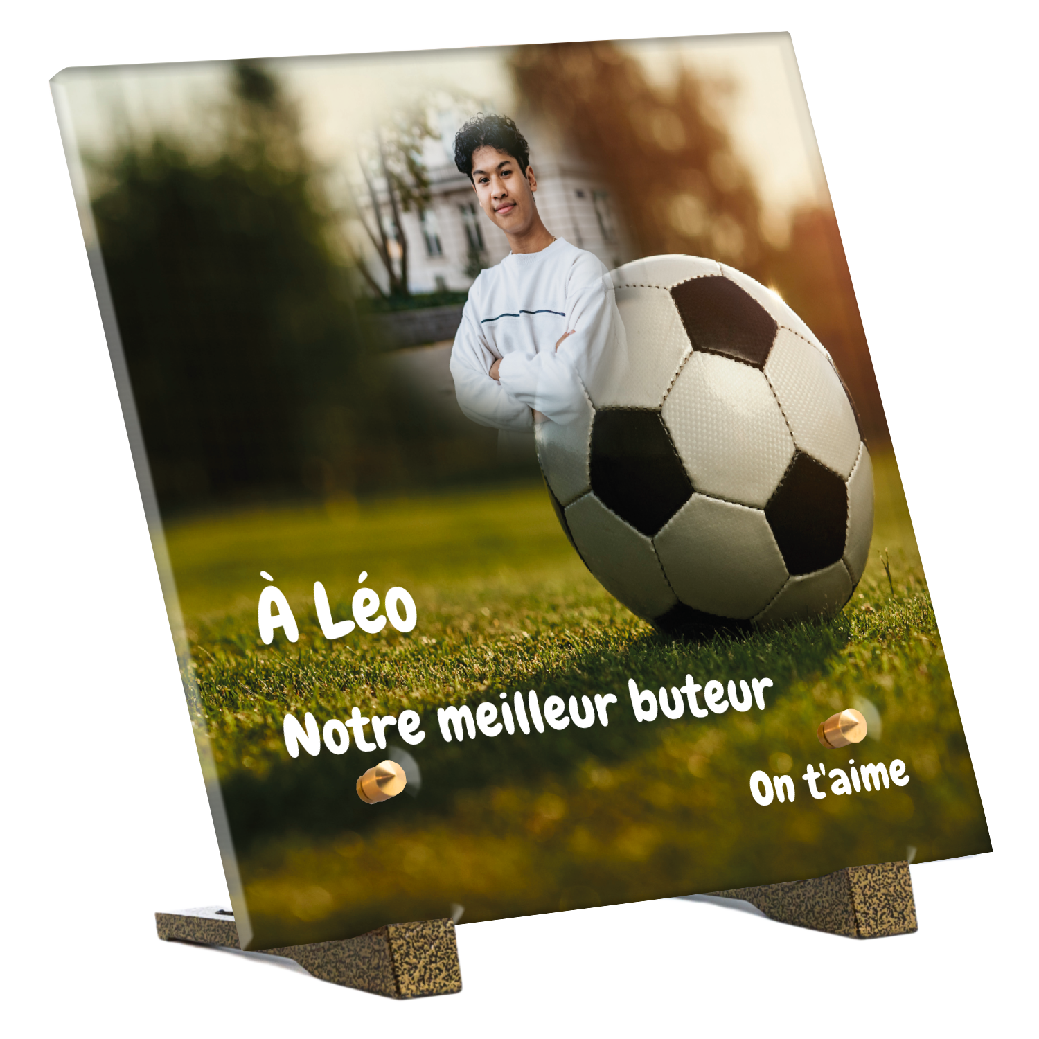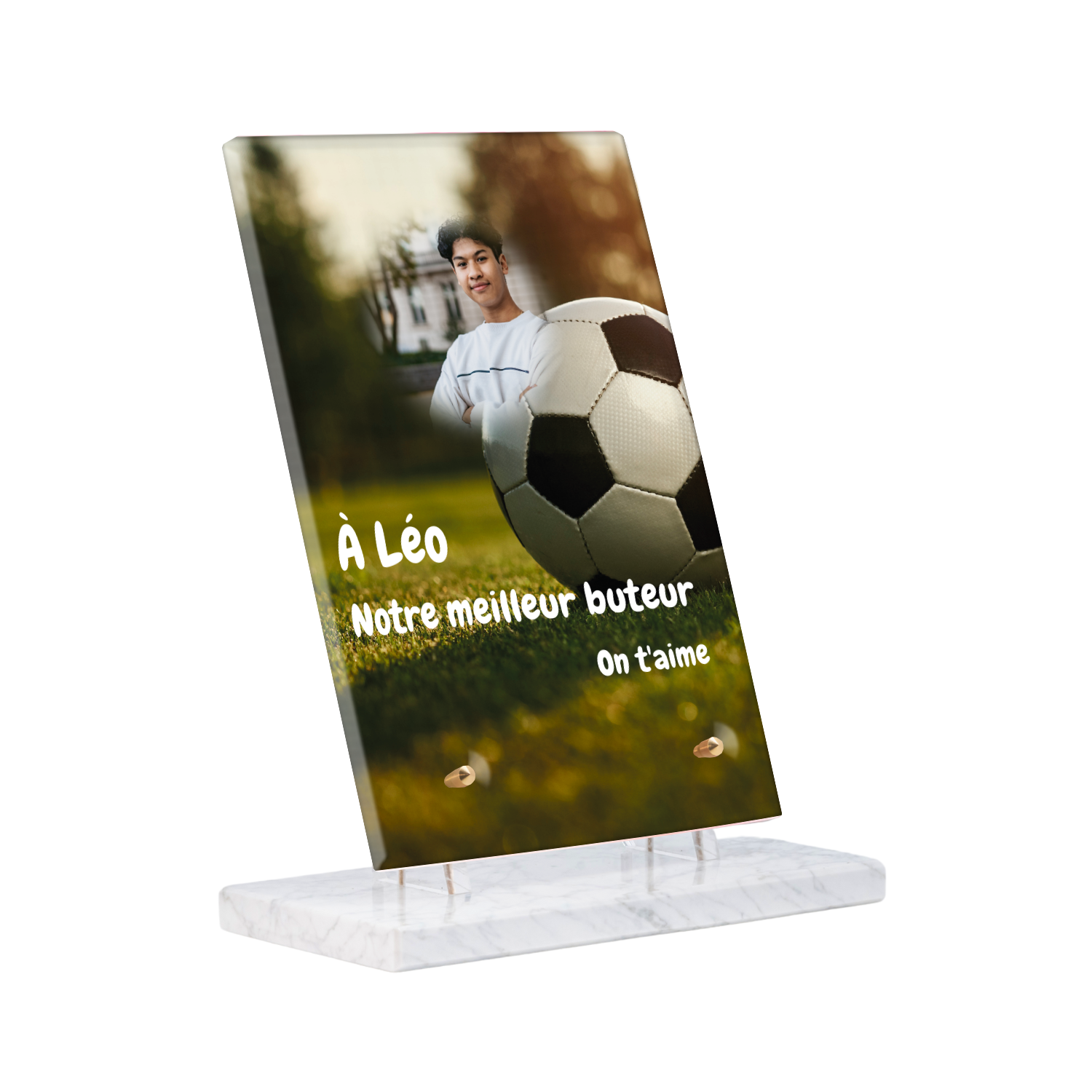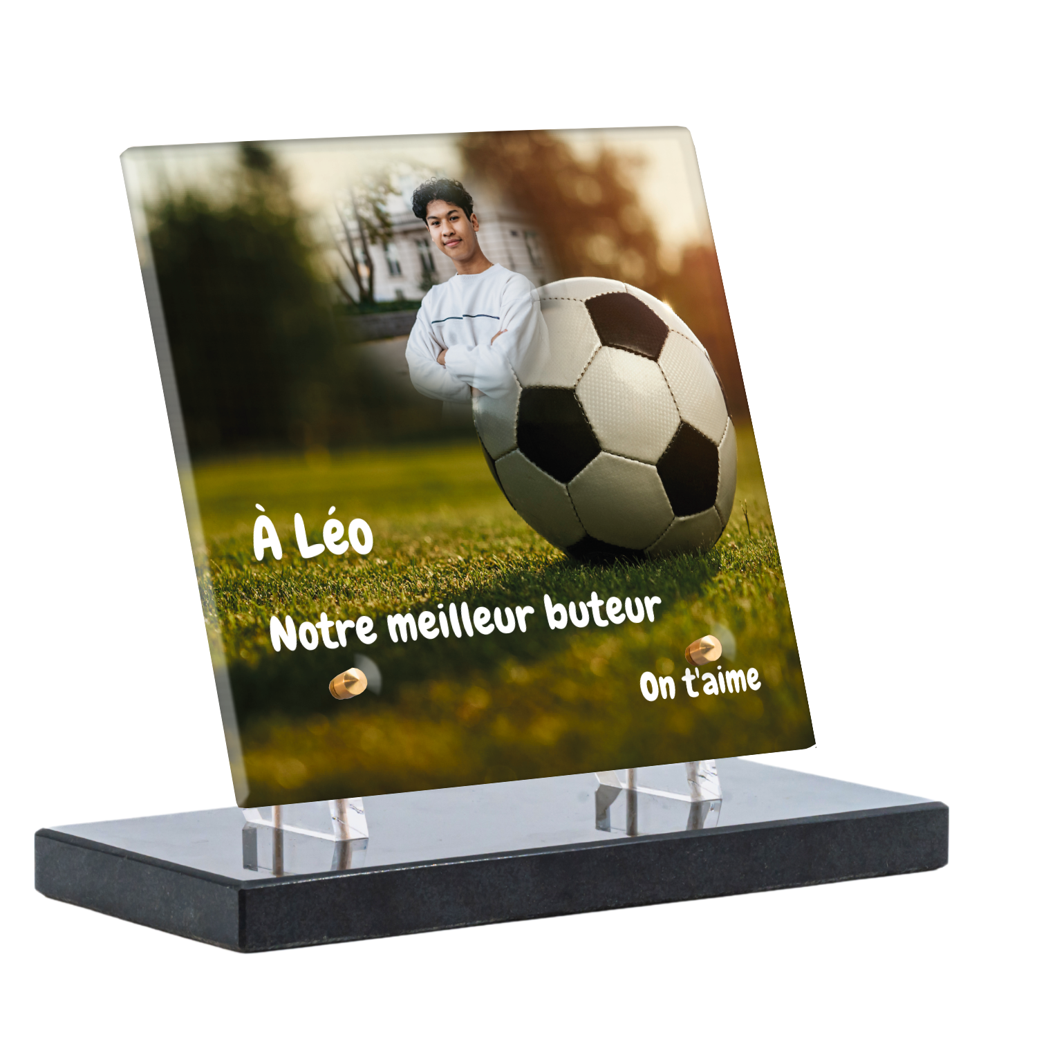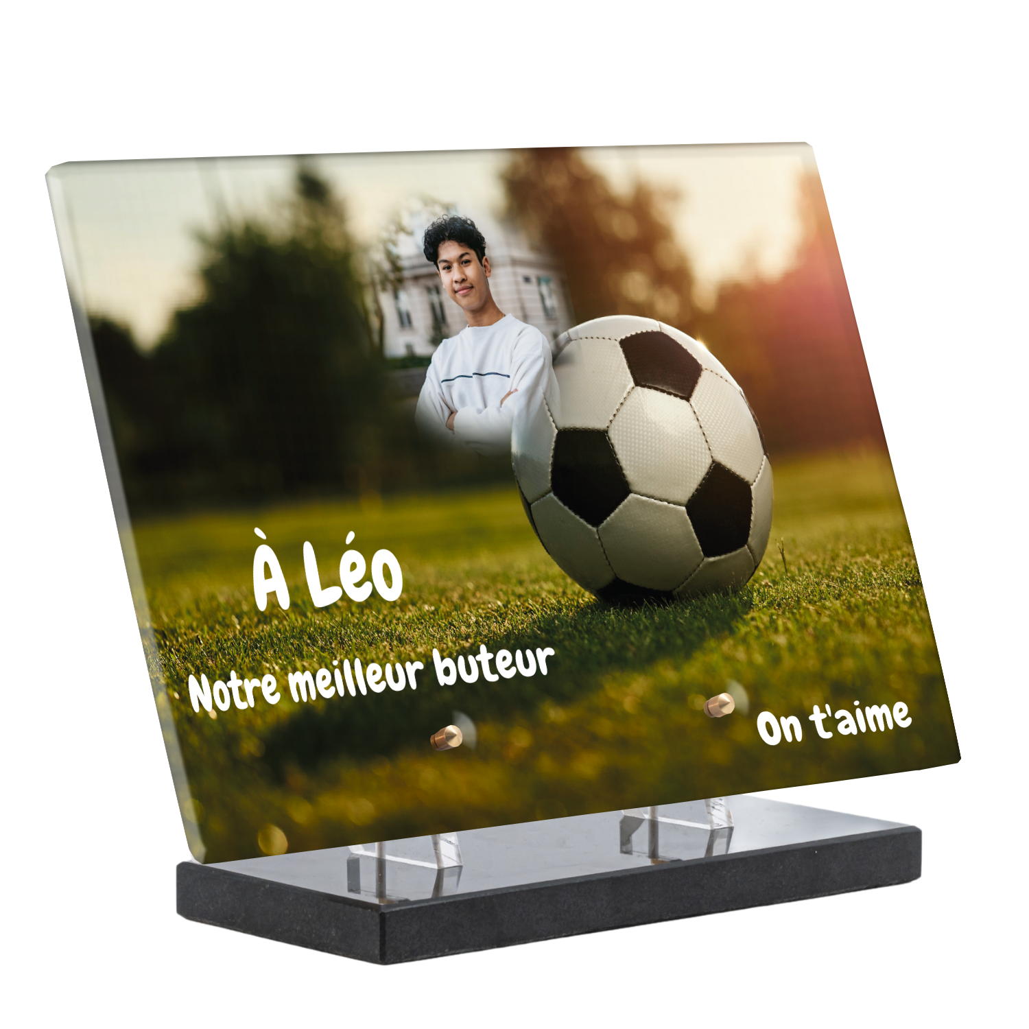 Offrez un hommage unique avec cette plaque funéraire personnalisée représentant un ballon de foot sur un terrain, idéale pour célébrer la passion du défunt. Cette plaque mortuaire allie design moderne et élégance, réalisée en plexiglas de haute qualité pour une finition soignée et résistante aux intempéries. Chaque plaque funéraire moderne est conçue sur mesure, vous permettant d’ajouter un texte personnalisé pour un souvenir véritablement unique. Sa durabilité approuvée garantit une longue conservation, assurant que la mémoire de votre proche reste intacte au fil du temps.