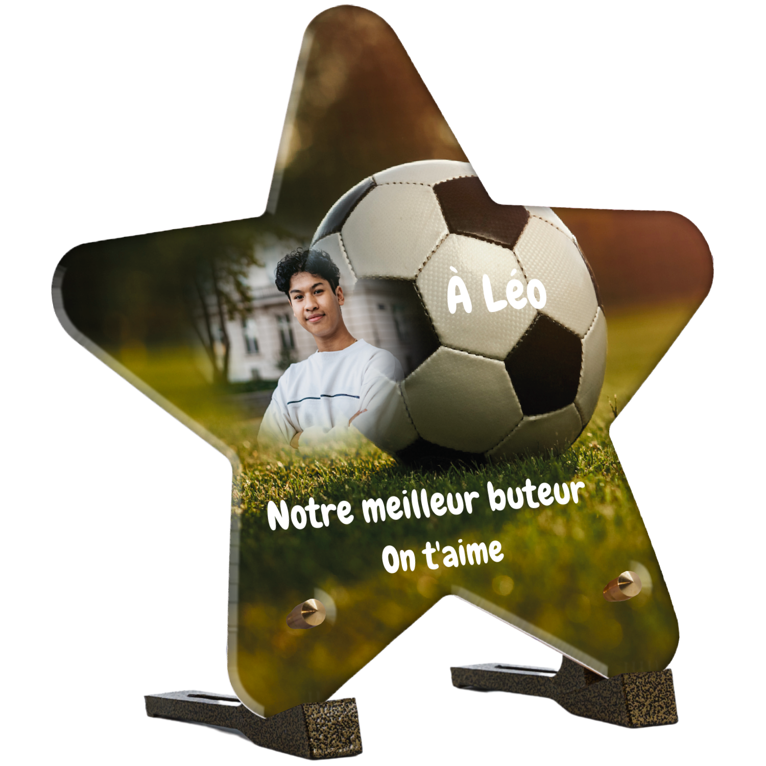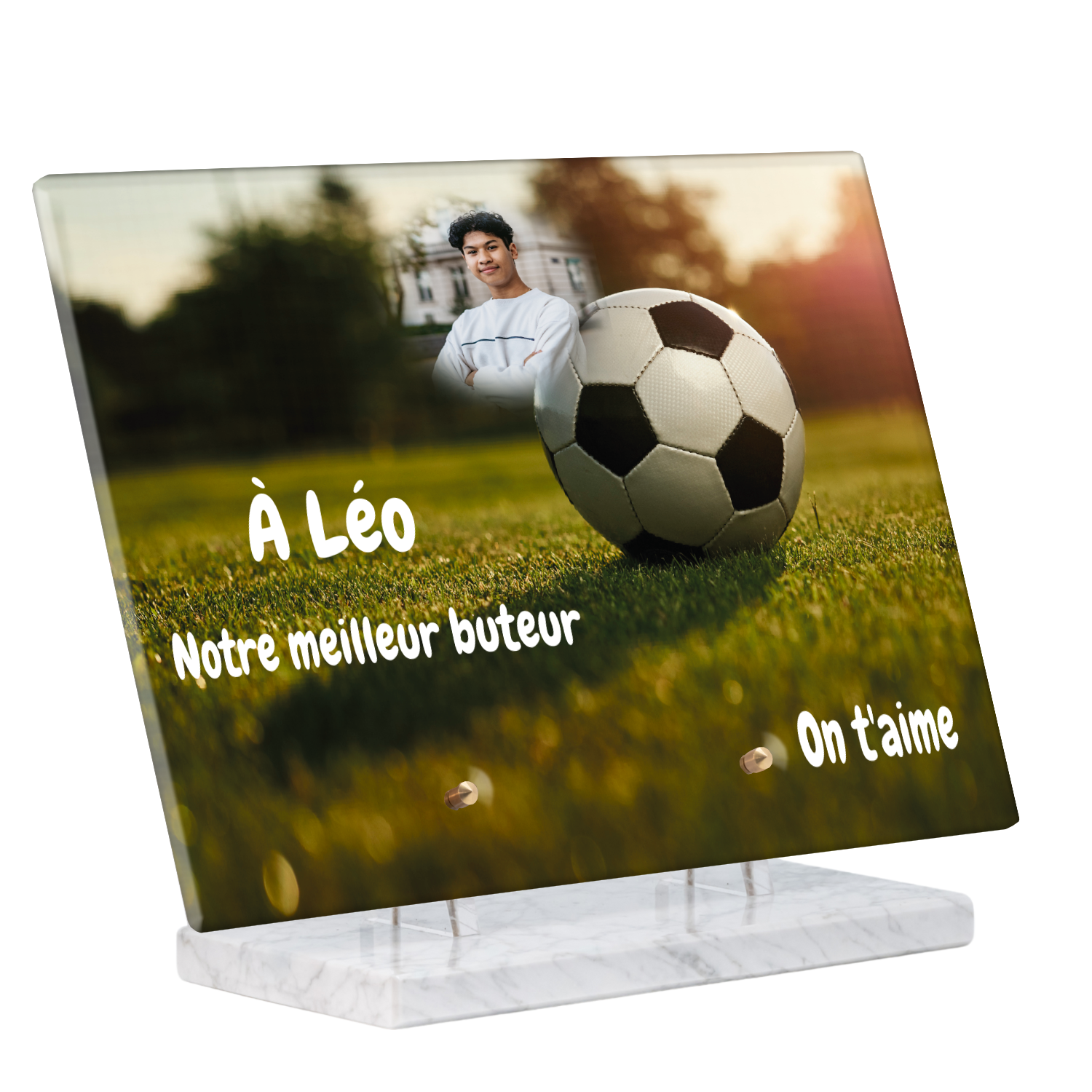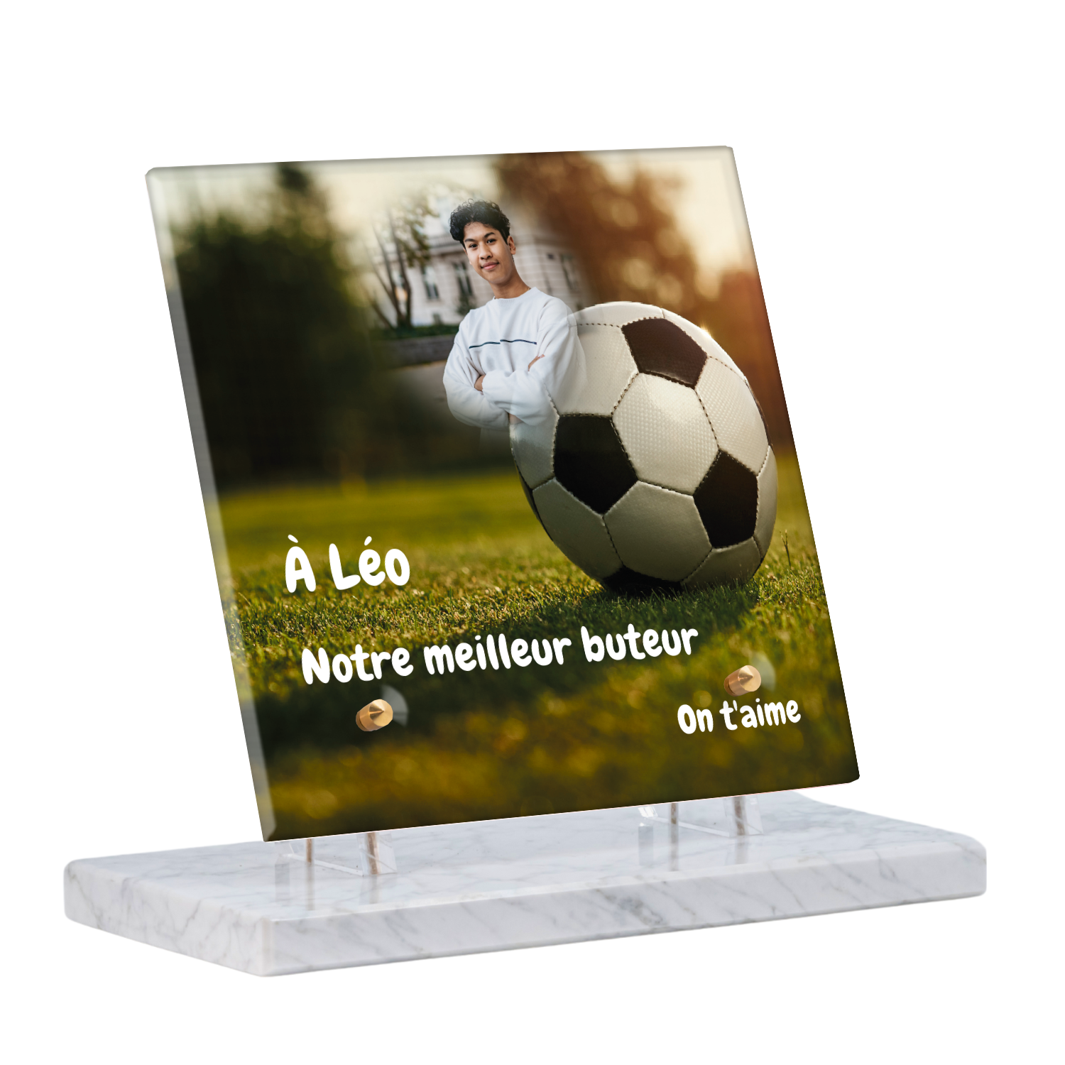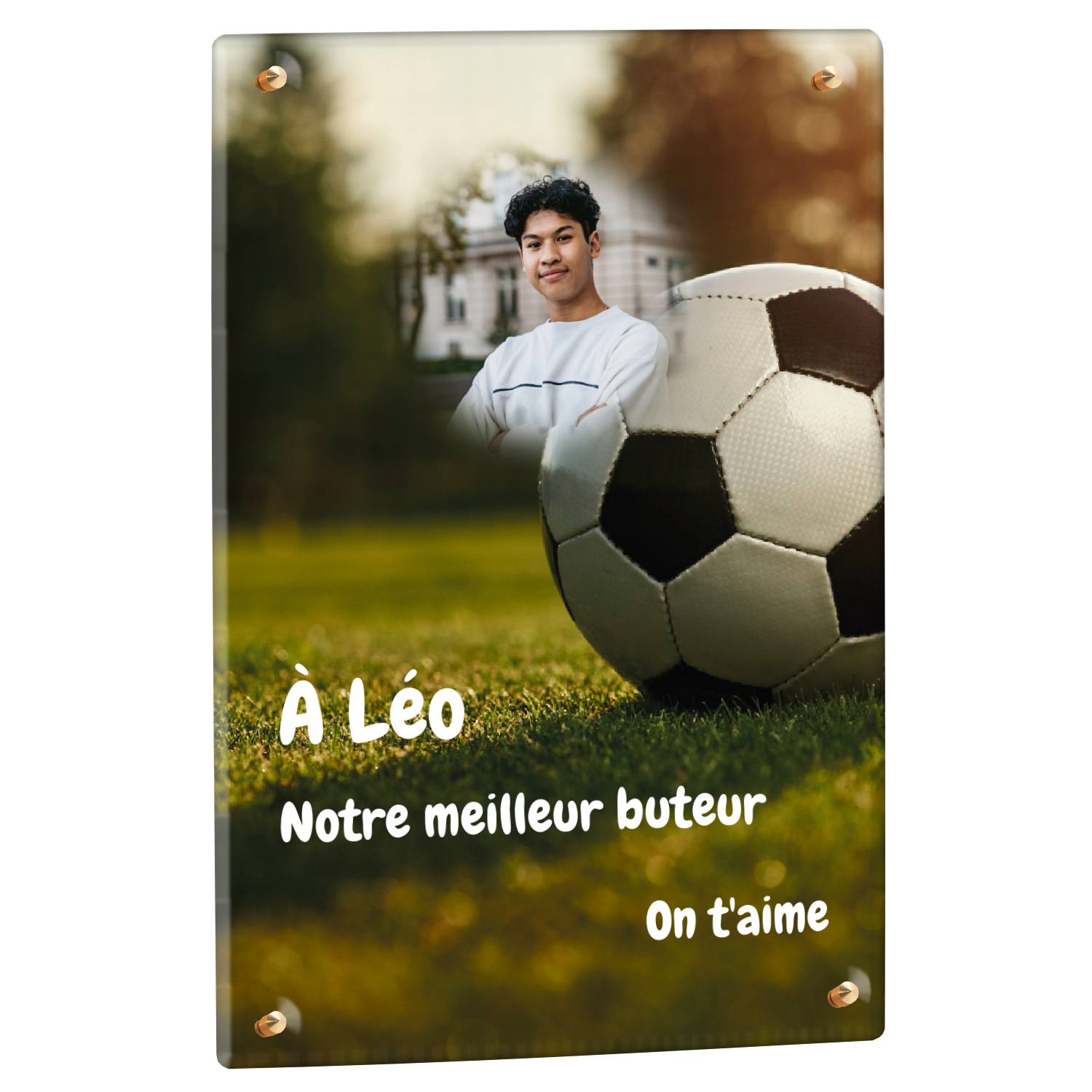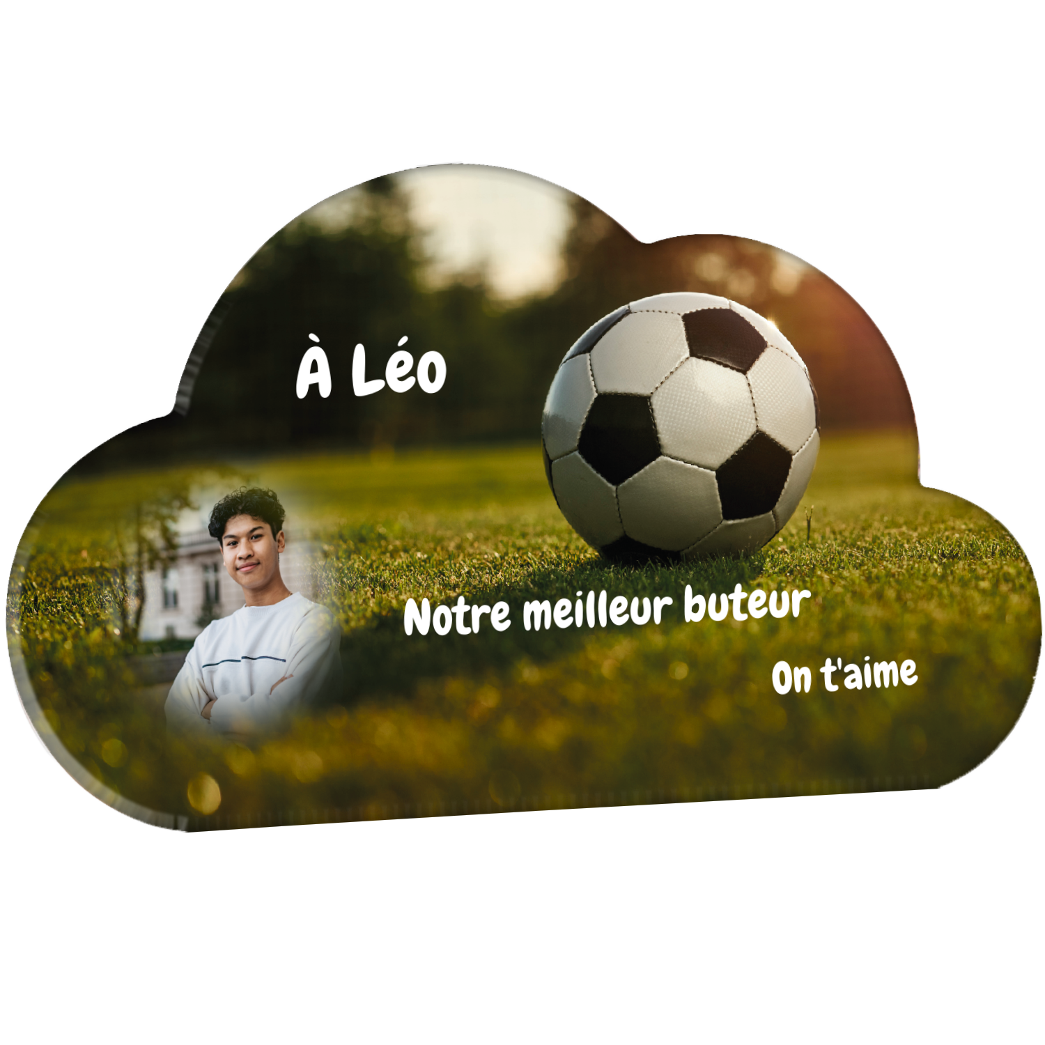 Offrez un hommage unique avec cette plaque funéraire personnalisée représentant un ballon de foot sur un terrain, idéale pour célébrer la passion du défunt. Cette plaque mortuaire allie design moderne et élégance, réalisée en plexiglas de haute qualité pour une finition soignée et résistante aux intempéries. Chaque plaque funéraire moderne est conçue sur mesure, vous permettant d’ajouter un texte personnalisé pour un souvenir véritablement unique. Sa durabilité approuvée garantit une longue conservation, assurant que la mémoire de votre proche reste intacte au fil du temps.