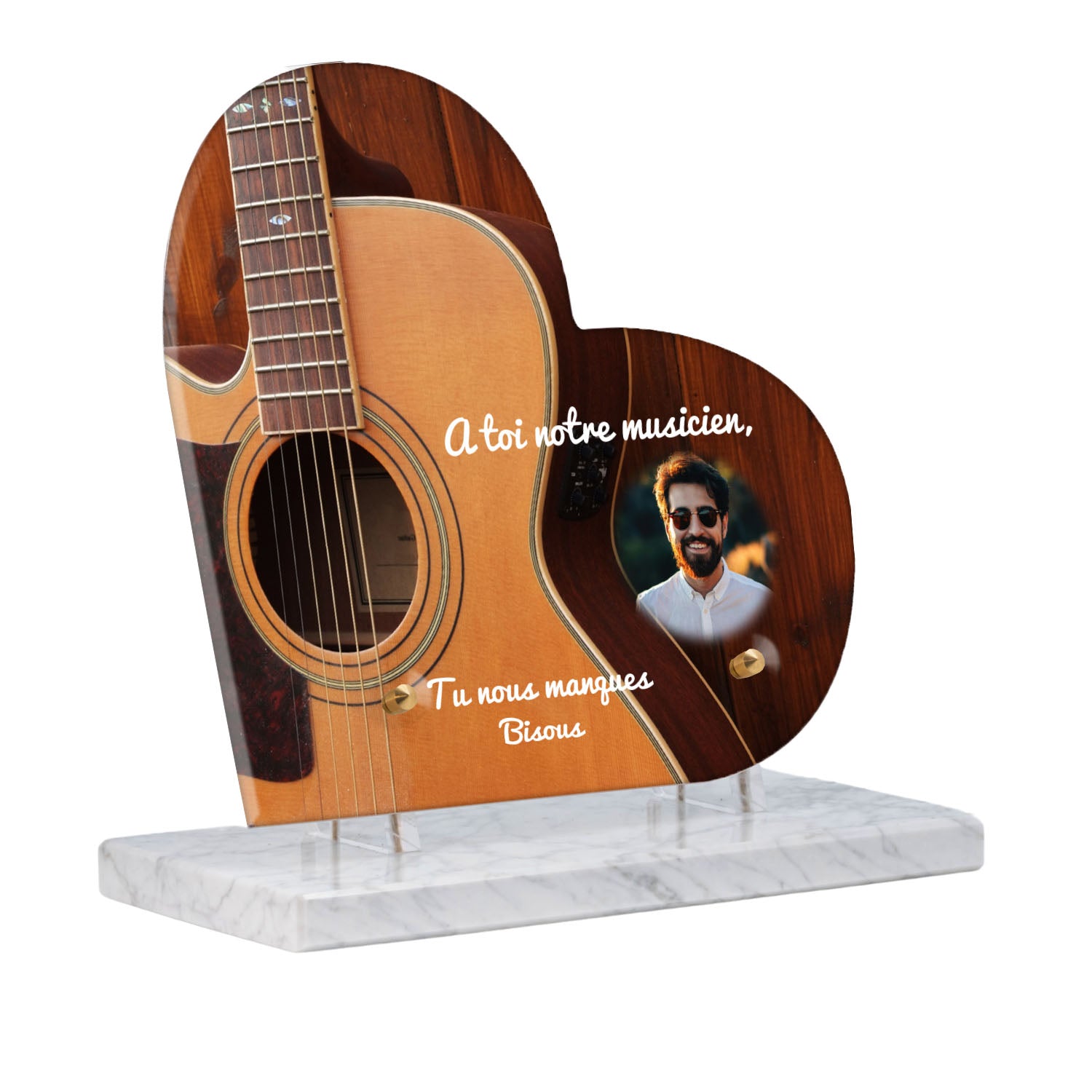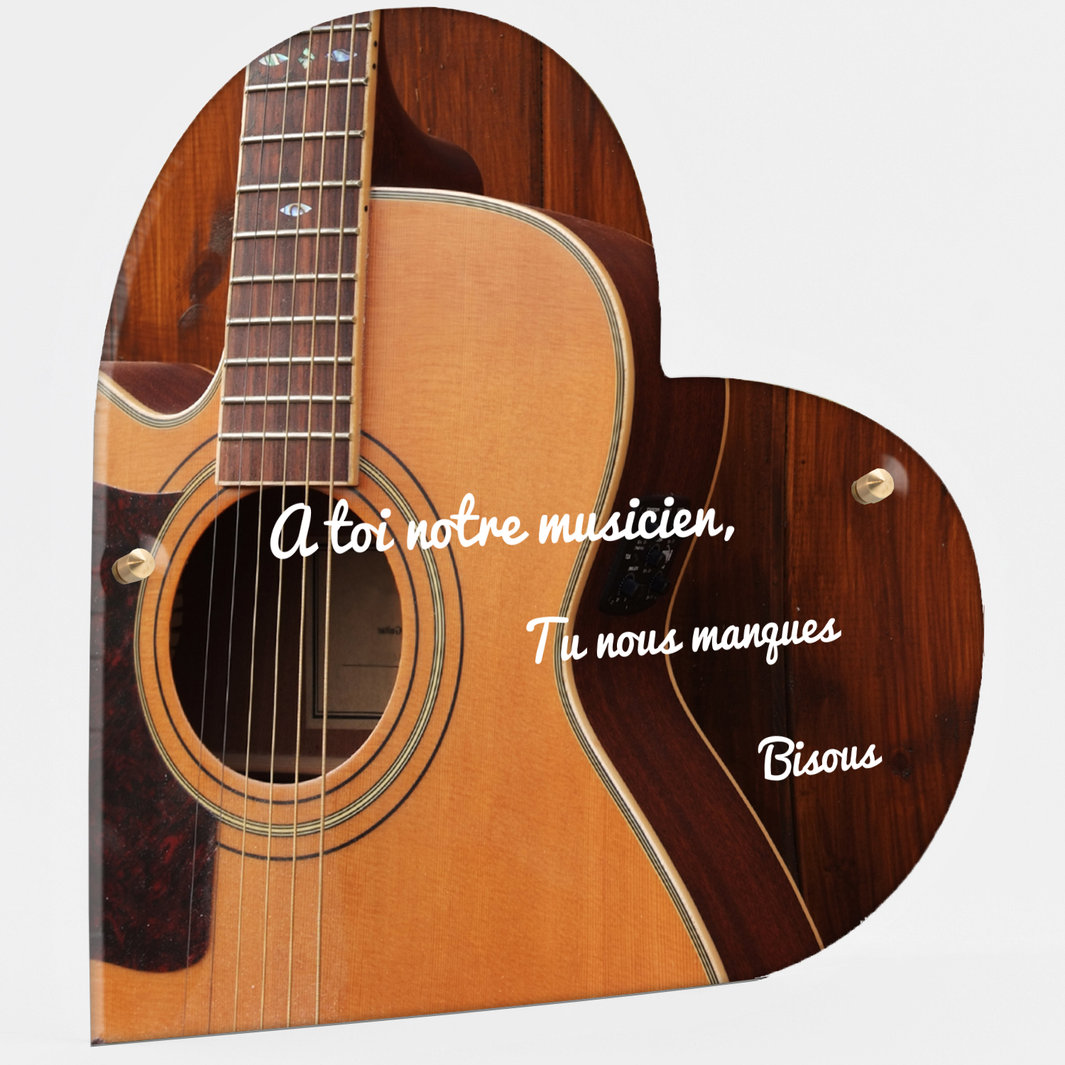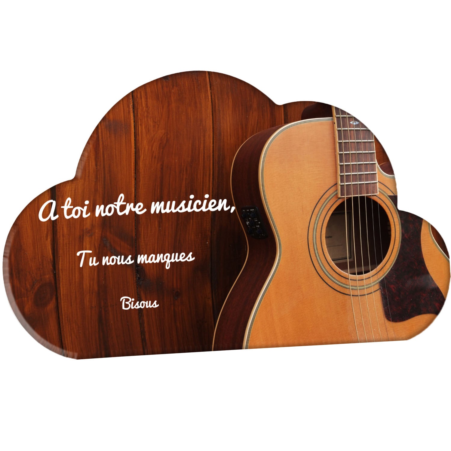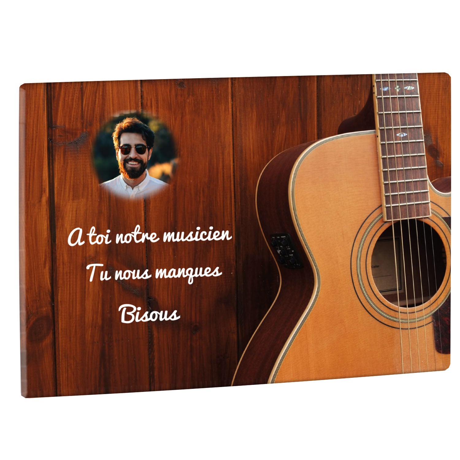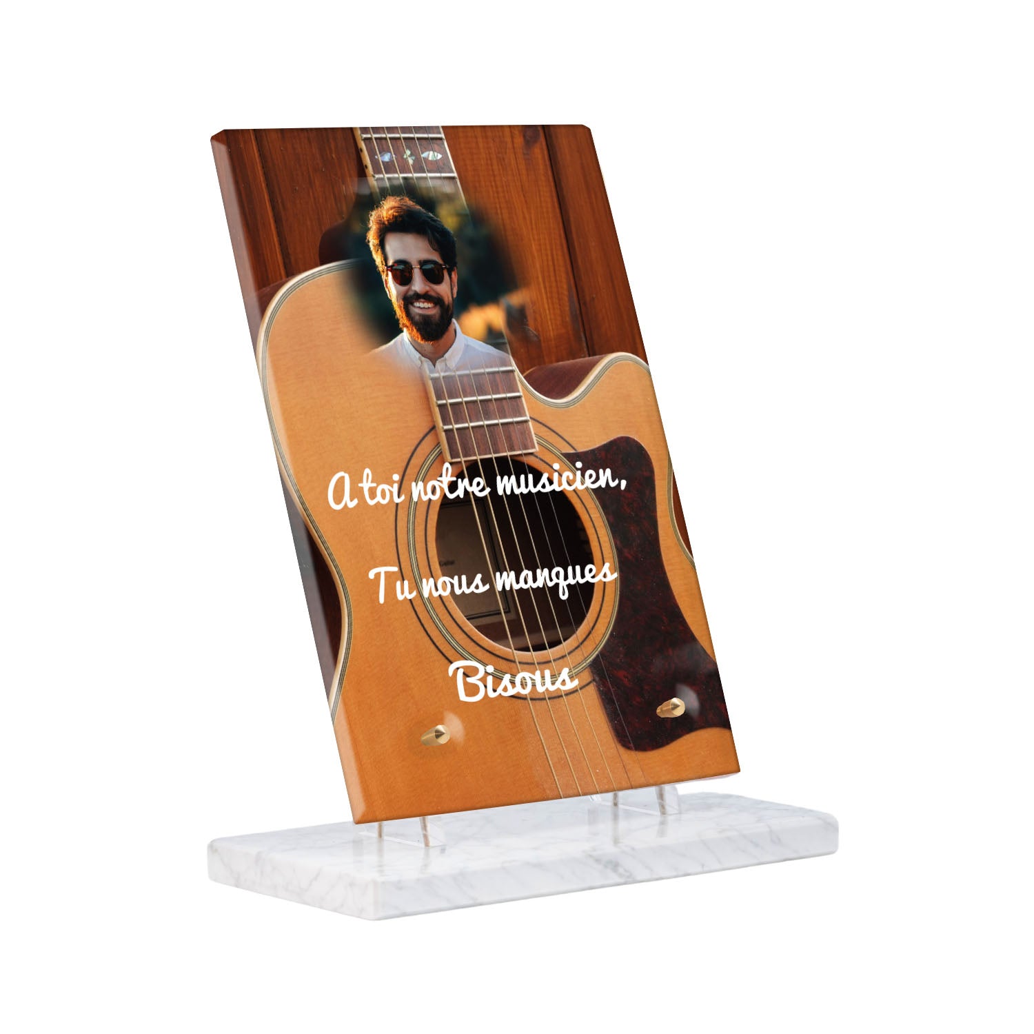Cette plaque funéraire personnalisée représente une guitare acoustique délicatement posée sur un fond en bois, alliant authenticité et modernité. Conçue en plexiglas, elle offre une plaque mortuaire élégante et résistante, idéale pour rendre hommage avec sobriété et style. Sa finition soignée met en valeur chaque détail, faisant de cette plaque funéraire moderne un choix durable et esthétique. Personnalisable sur mesure, cette plaque funéraire plexiglas vous permet d’ajouter un texte unique et des motifs adaptés à votre souvenir. Sa durabilité approuvée garantit une excellente résistance aux intempéries, assurant que cet hommage reste intact au fil du temps. Offrez un souvenir personnalisé et pérenne grâce à cette plaque funéraire personnalisée.