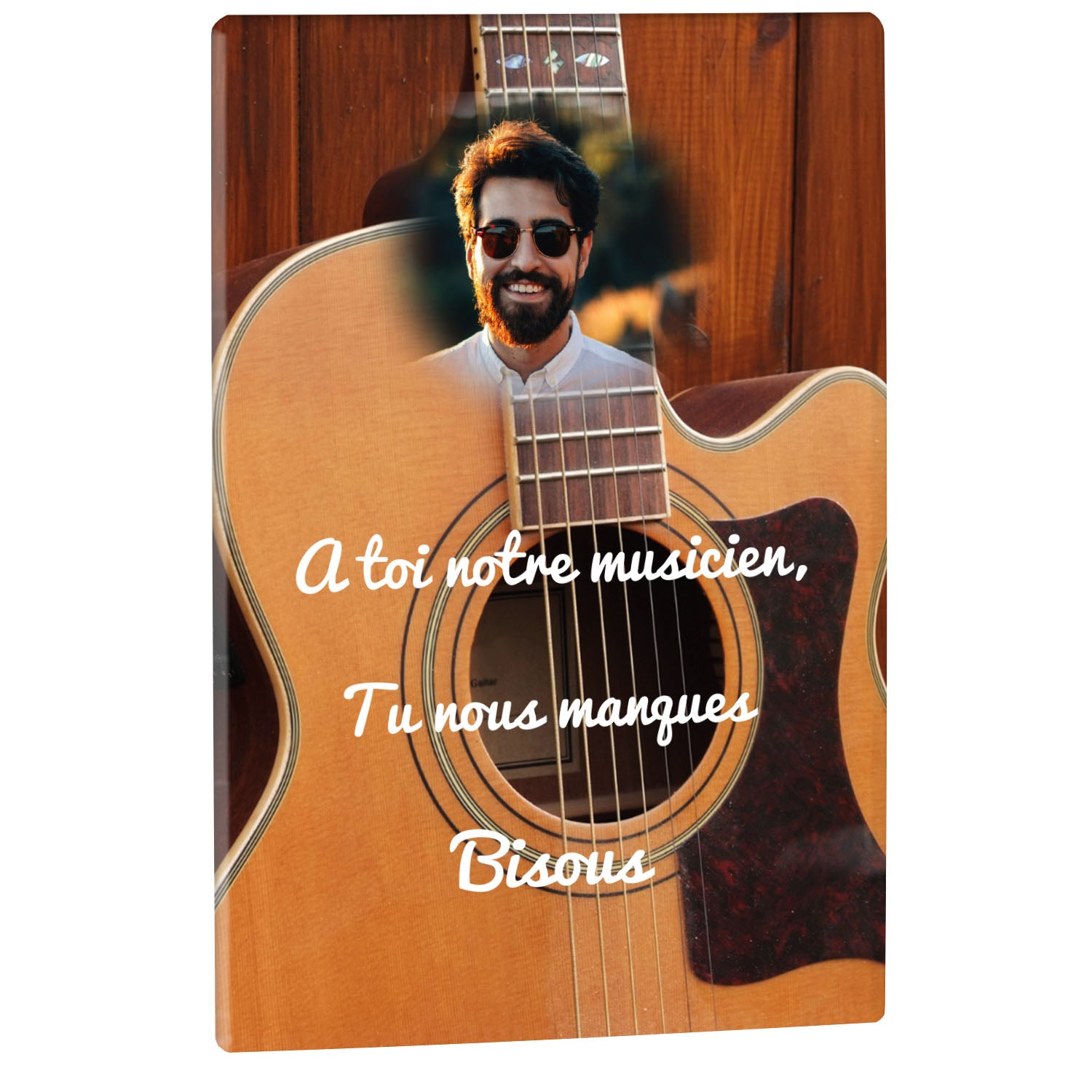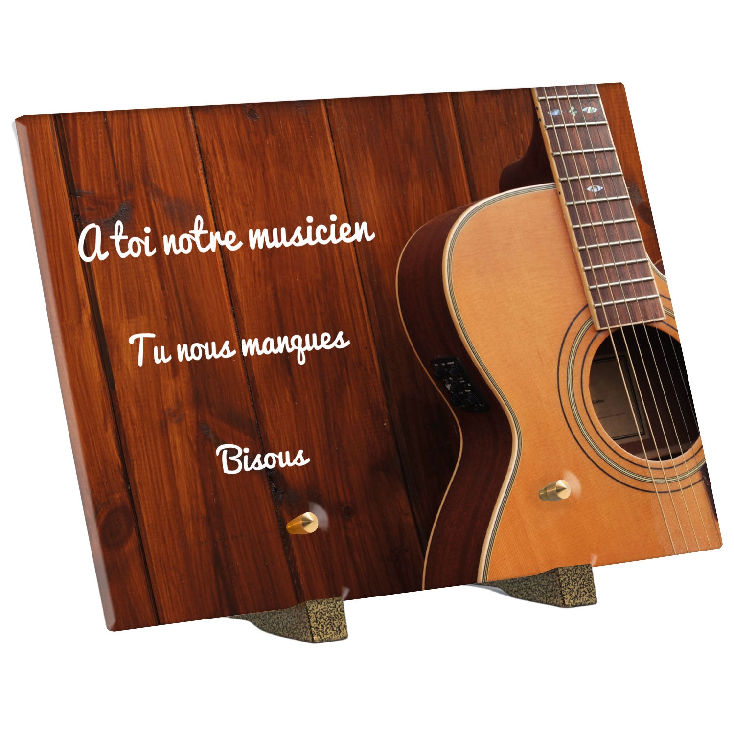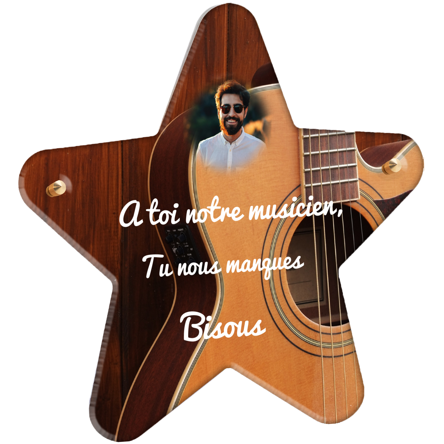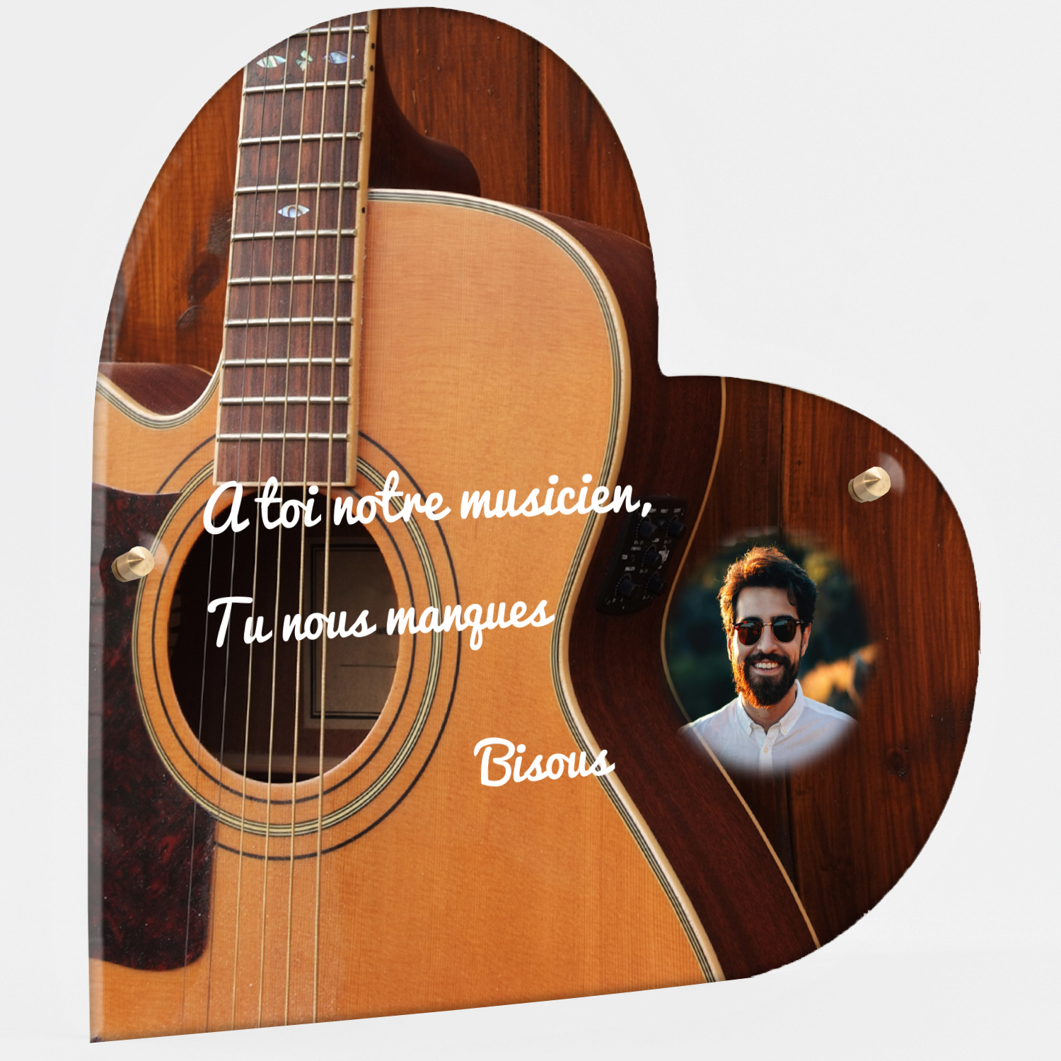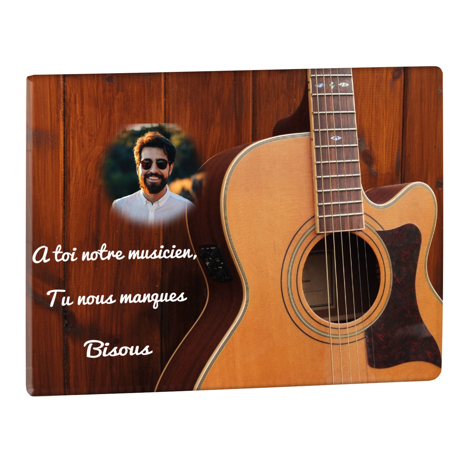 Cette plaque funéraire personnalisée représente une guitare acoustique délicatement posée sur un fond en bois, alliant authenticité et modernité. Conçue en plexiglas, elle offre une plaque mortuaire élégante et résistante, idéale pour rendre hommage avec sobriété et style. Sa finition soignée met en valeur chaque détail, faisant de cette plaque funéraire moderne un choix durable et esthétique. Personnalisable sur mesure, cette plaque funéraire plexiglas vous permet d’ajouter un texte unique et des motifs adaptés à votre souvenir. Sa durabilité approuvée garantit une excellente résistance aux intempéries, assurant que cet hommage reste intact au fil du temps. Offrez un souvenir personnalisé et pérenne grâce à cette plaque funéraire personnalisée.