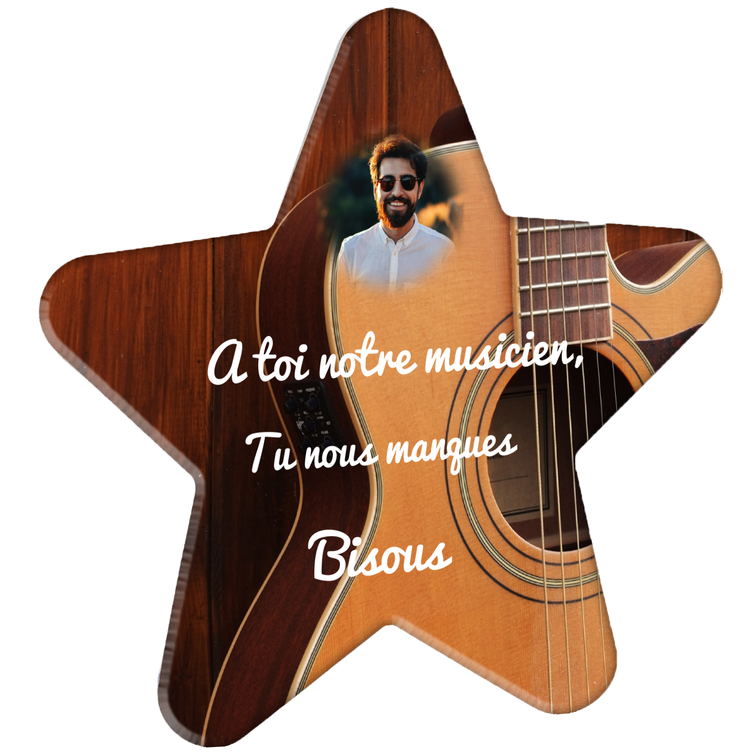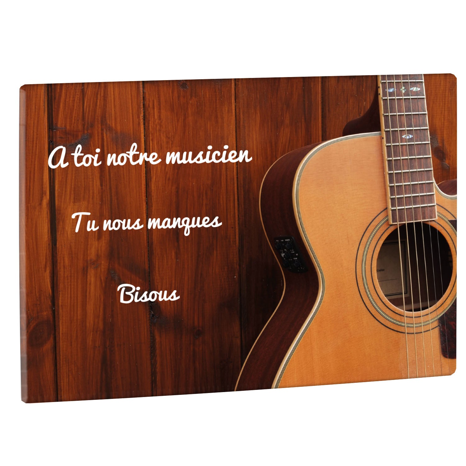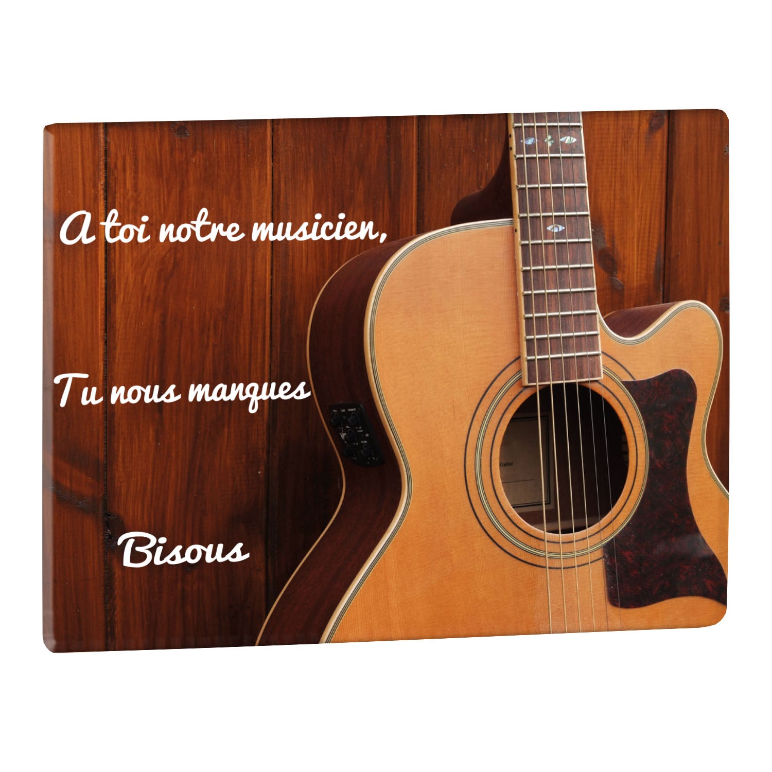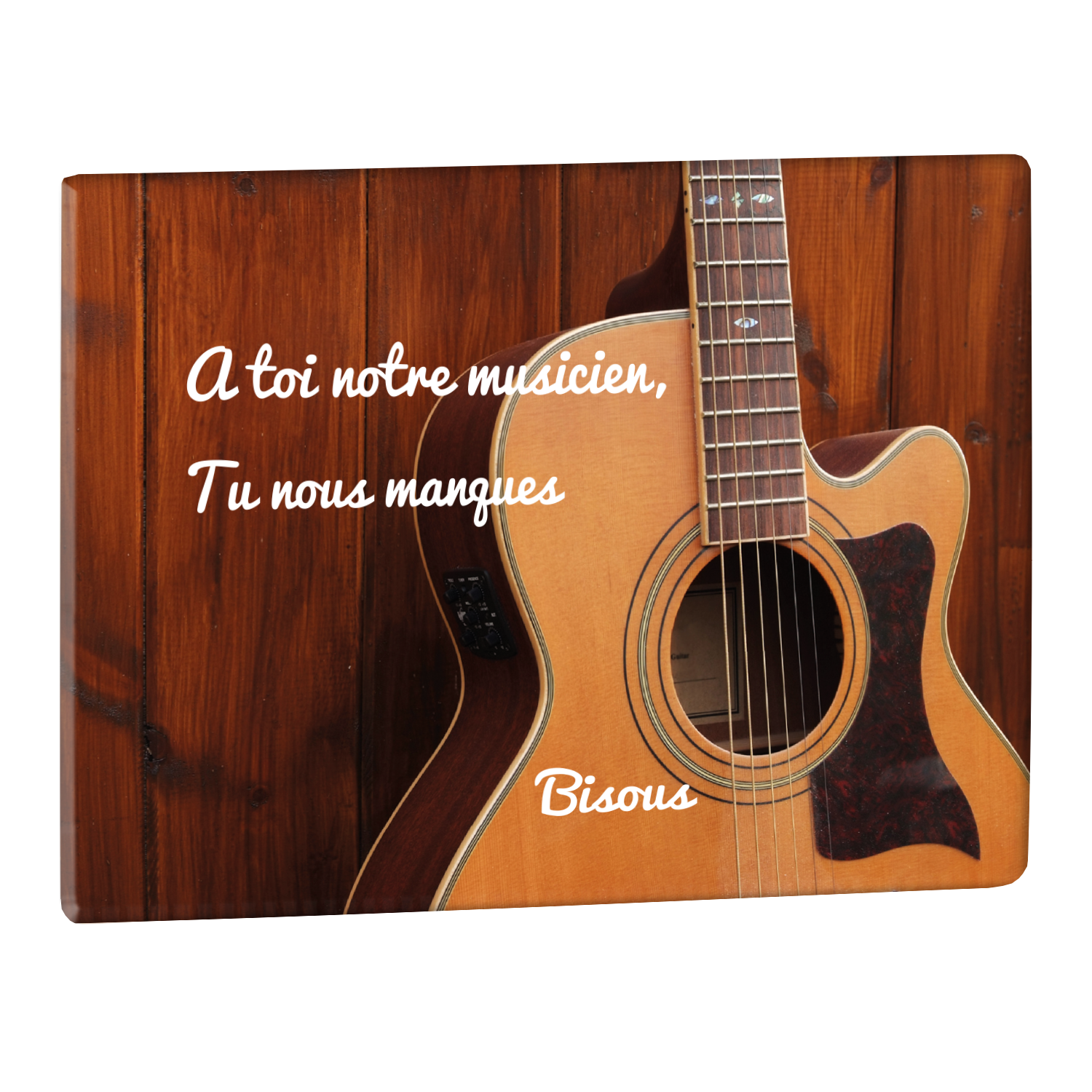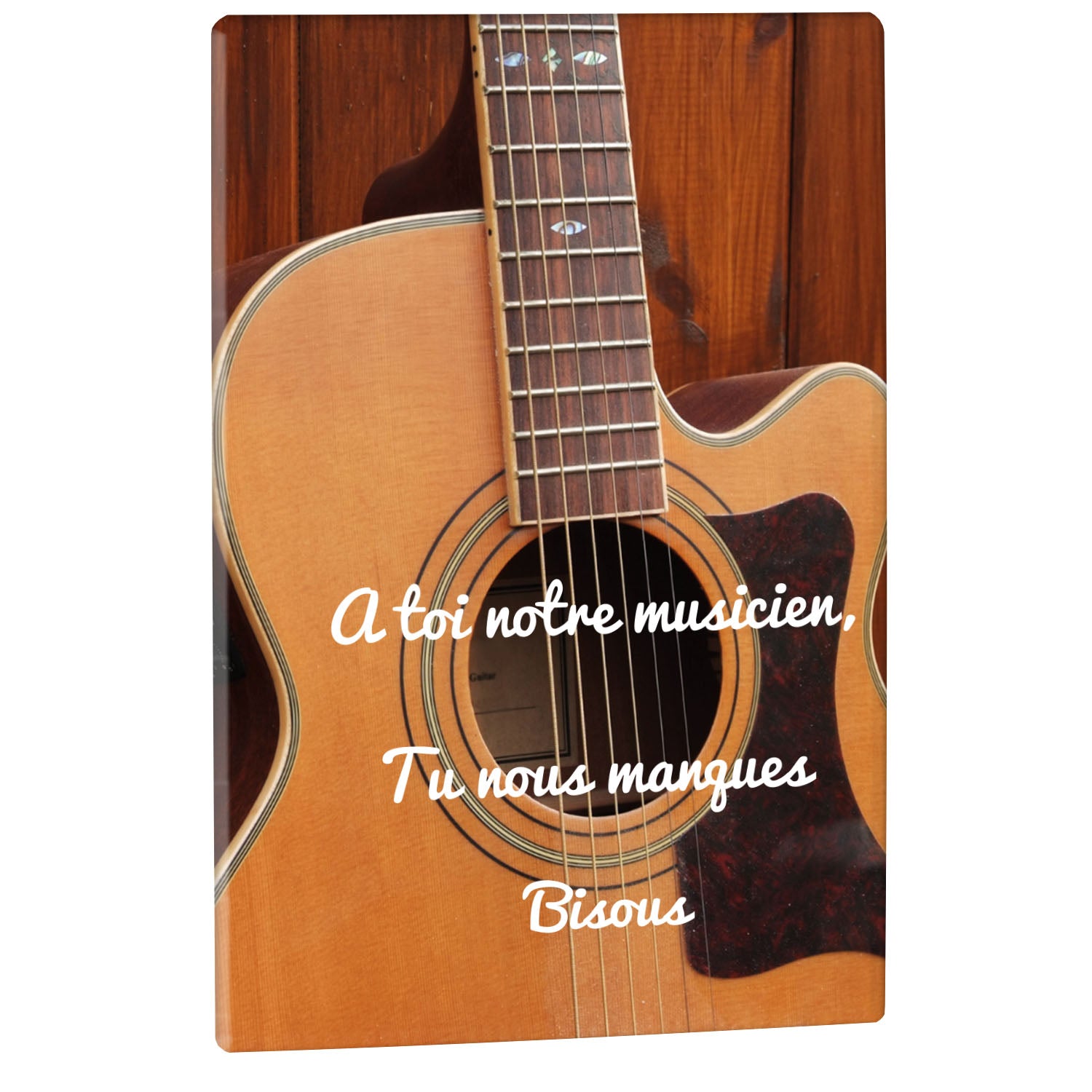 Cette plaque funéraire personnalisée représente une guitare acoustique délicatement posée sur un fond en bois, alliant authenticité et modernité. Conçue en plexiglas, elle offre une plaque mortuaire élégante et résistante, idéale pour rendre hommage avec sobriété et style. Sa finition soignée met en valeur chaque détail, faisant de cette plaque funéraire moderne un choix durable et esthétique. Personnalisable sur mesure, cette plaque funéraire plexiglas vous permet d’ajouter un texte unique et des motifs adaptés à votre souvenir. Sa durabilité approuvée garantit une excellente résistance aux intempéries, assurant que cet hommage reste intact au fil du temps. Offrez un souvenir personnalisé et pérenne grâce à cette plaque funéraire personnalisée.