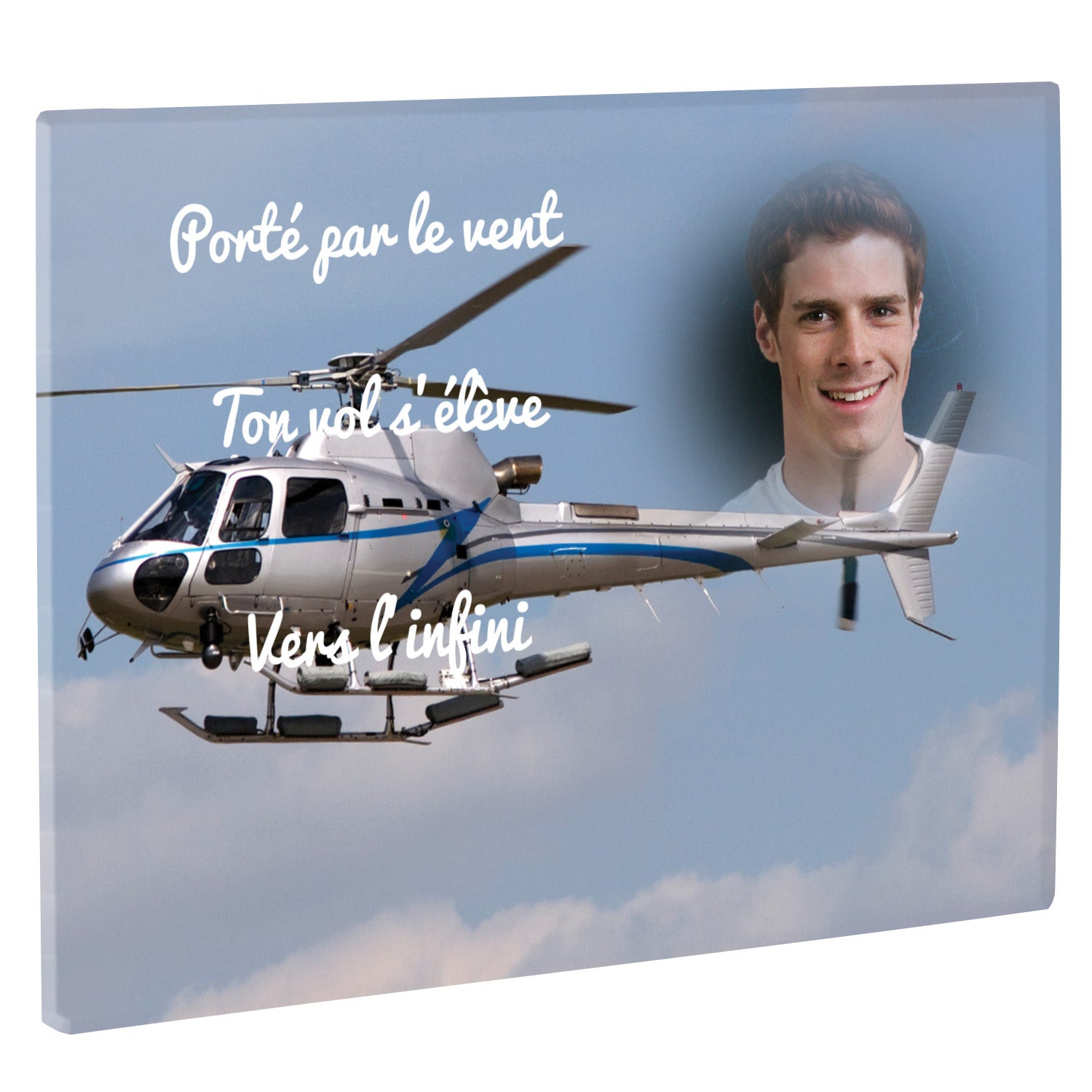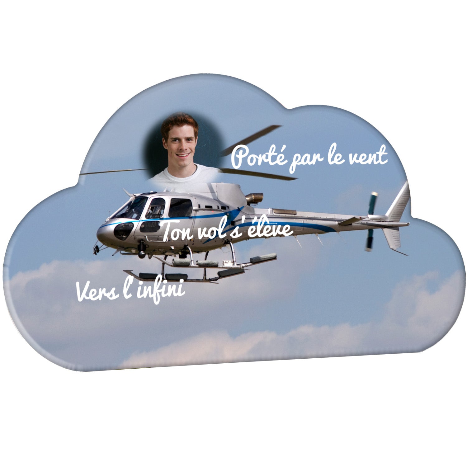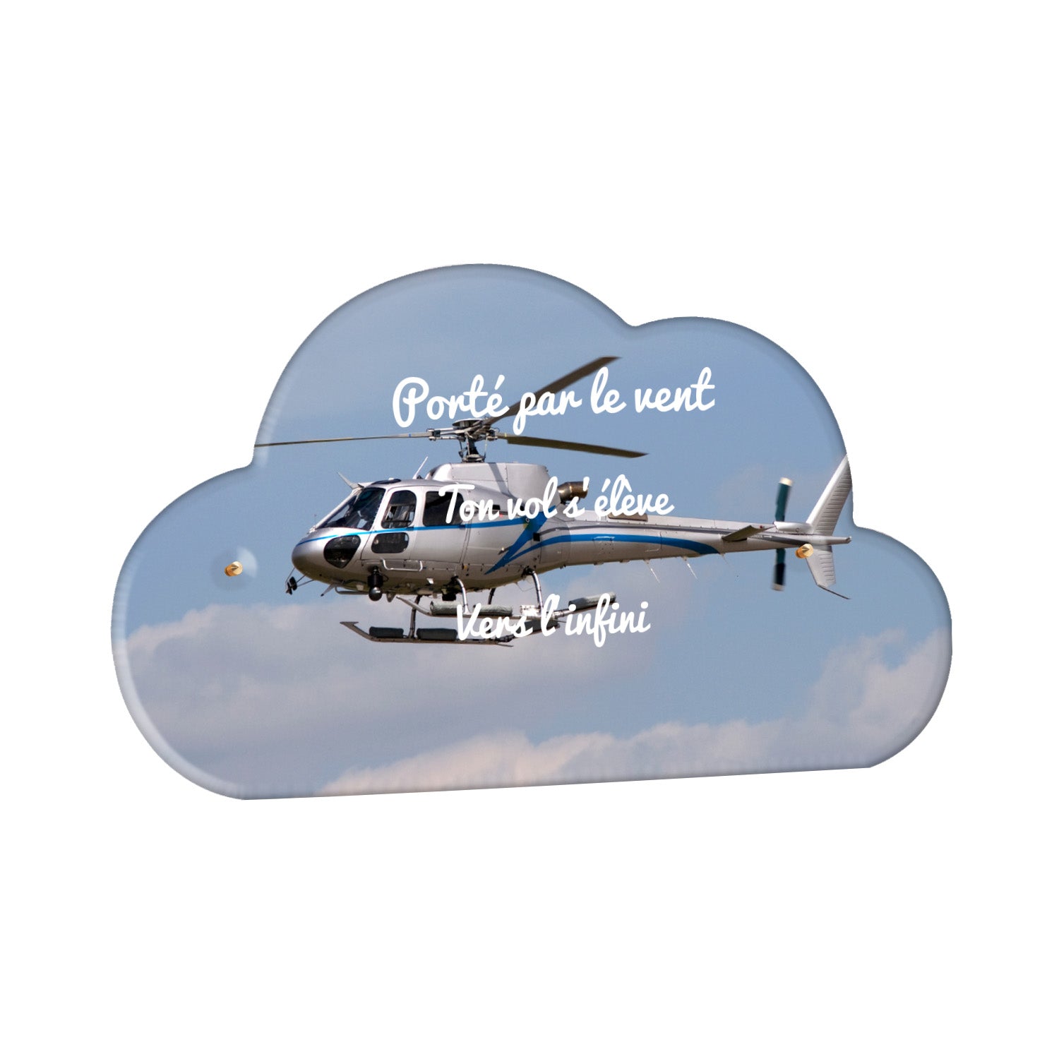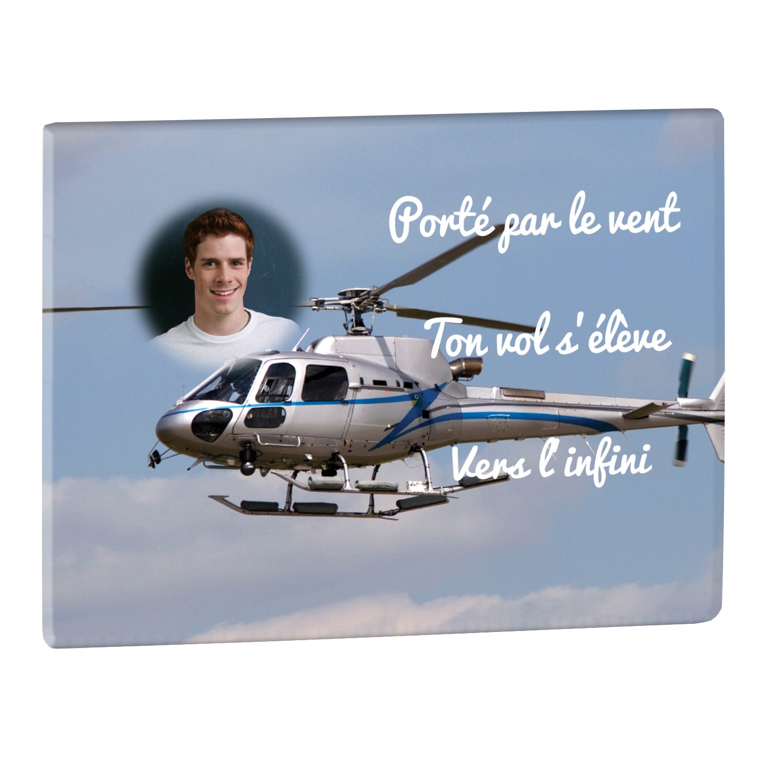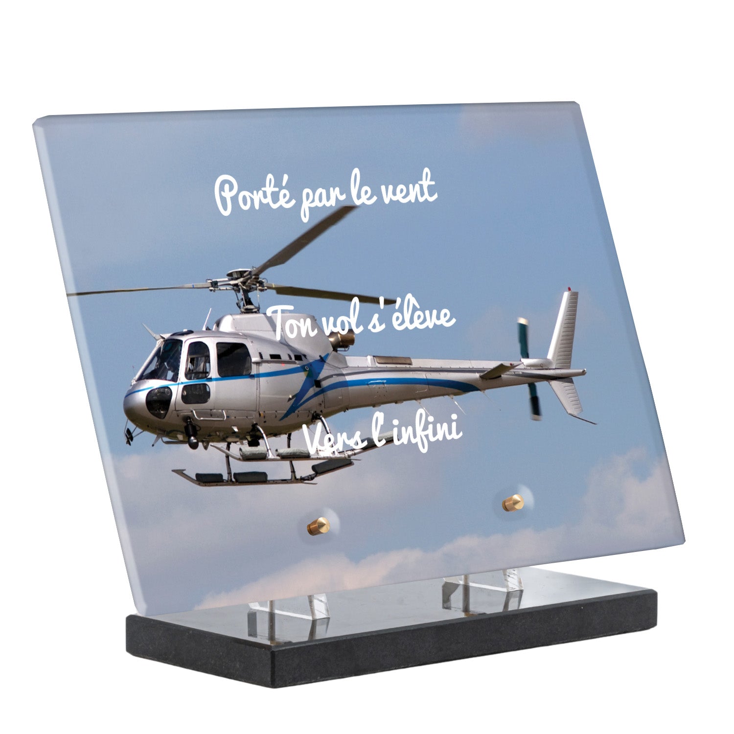 Cette plaque funéraire personnalisée représente un hélicoptère en vol, symbole de liberté et d’aventure, pour rendre un hommage unique et chargé de sens. Fabriquée en plexiglas, cette plaque mortuaire allie modernité et élégance, parfaite pour une plaque funéraire moderne qui valorise la mémoire de manière originale et durable.