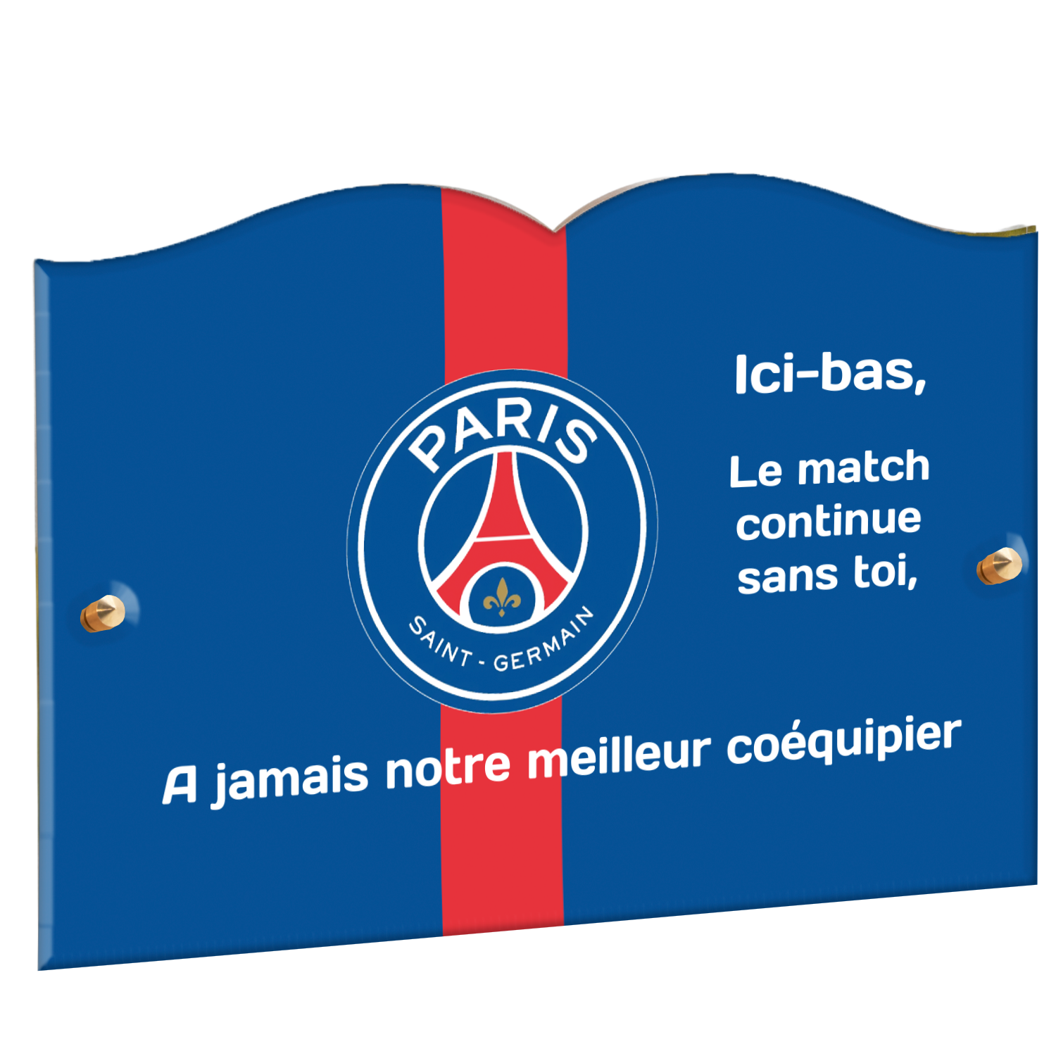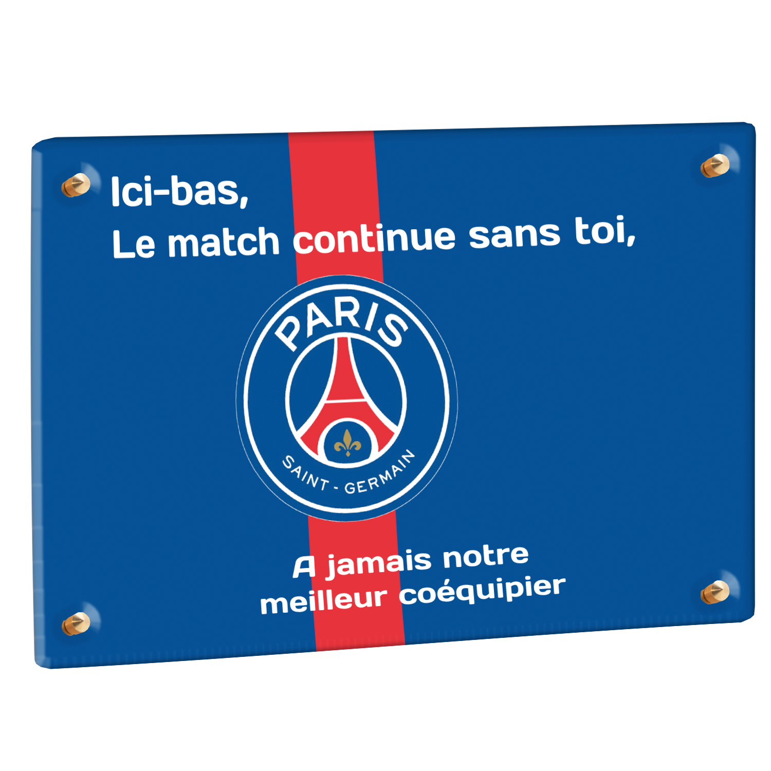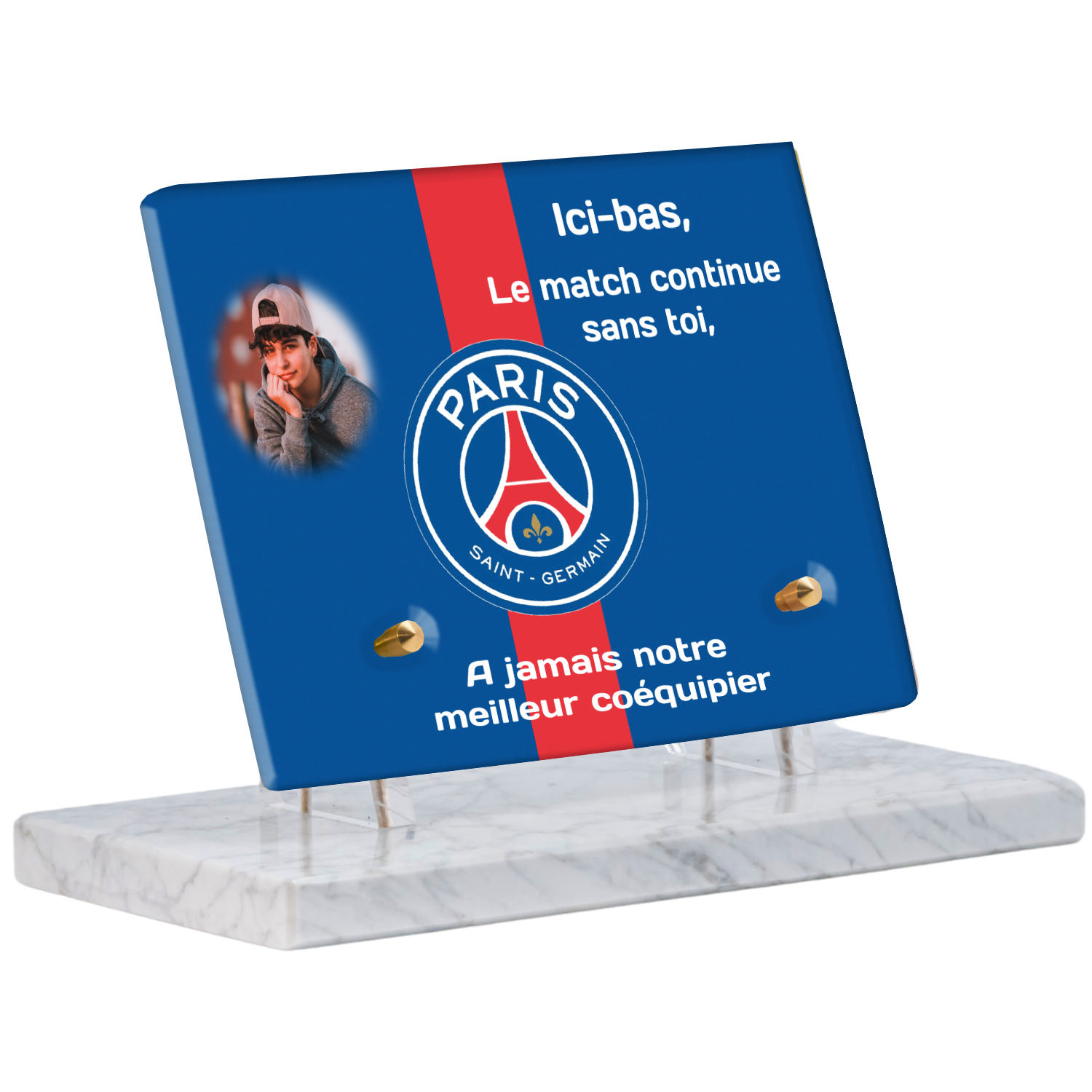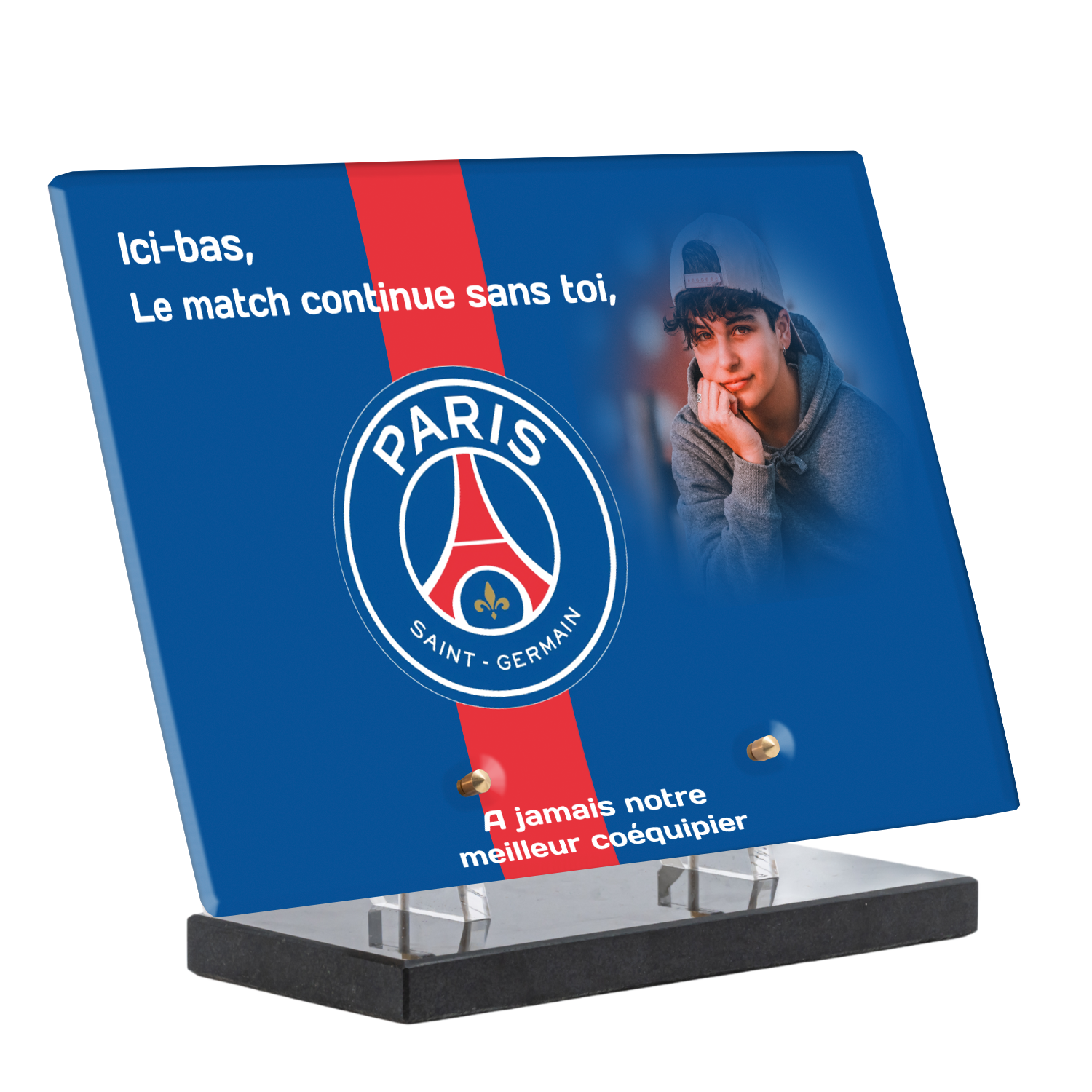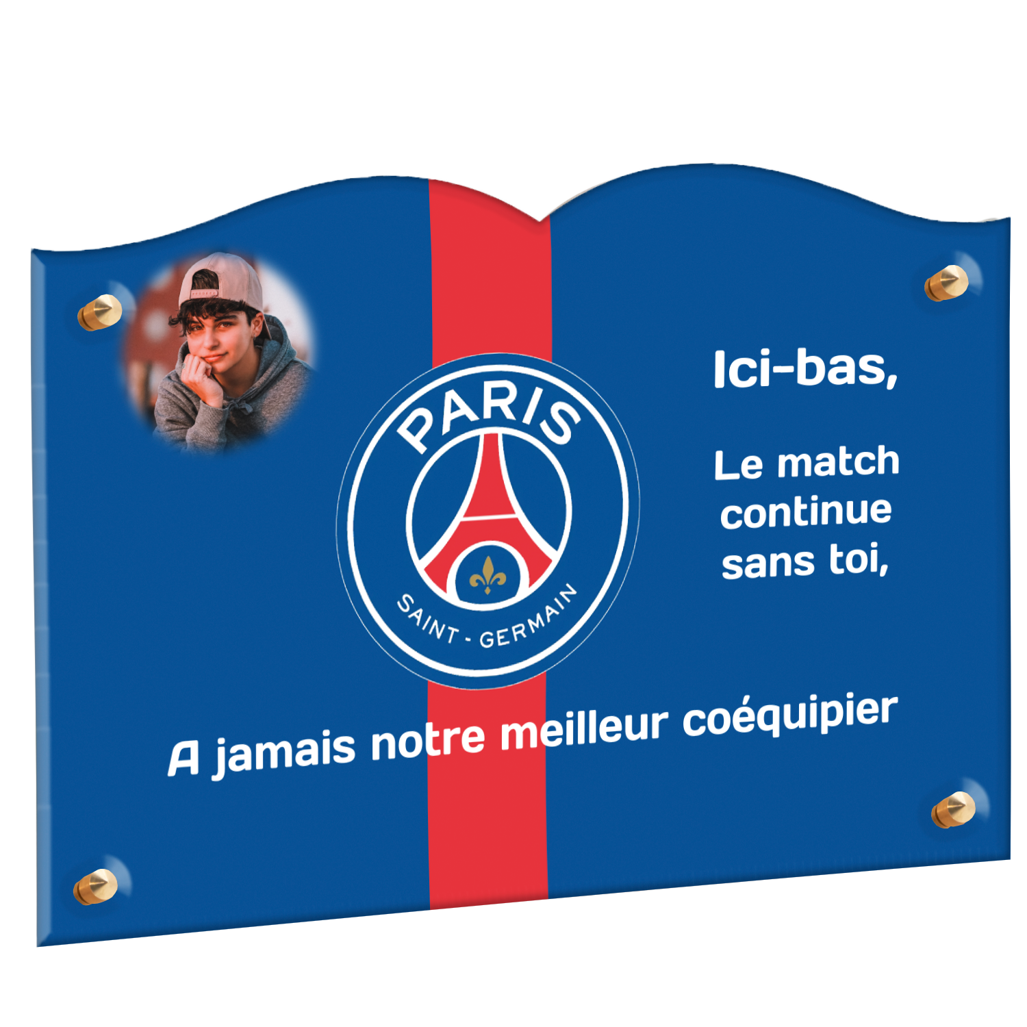 Offrez un hommage unique avec cette plaque funéraire personnalisée aux couleurs du PSG. Conçue en plexiglas moderne, elle allie élégance et durabilité pour célébrer la mémoire de vos proches.