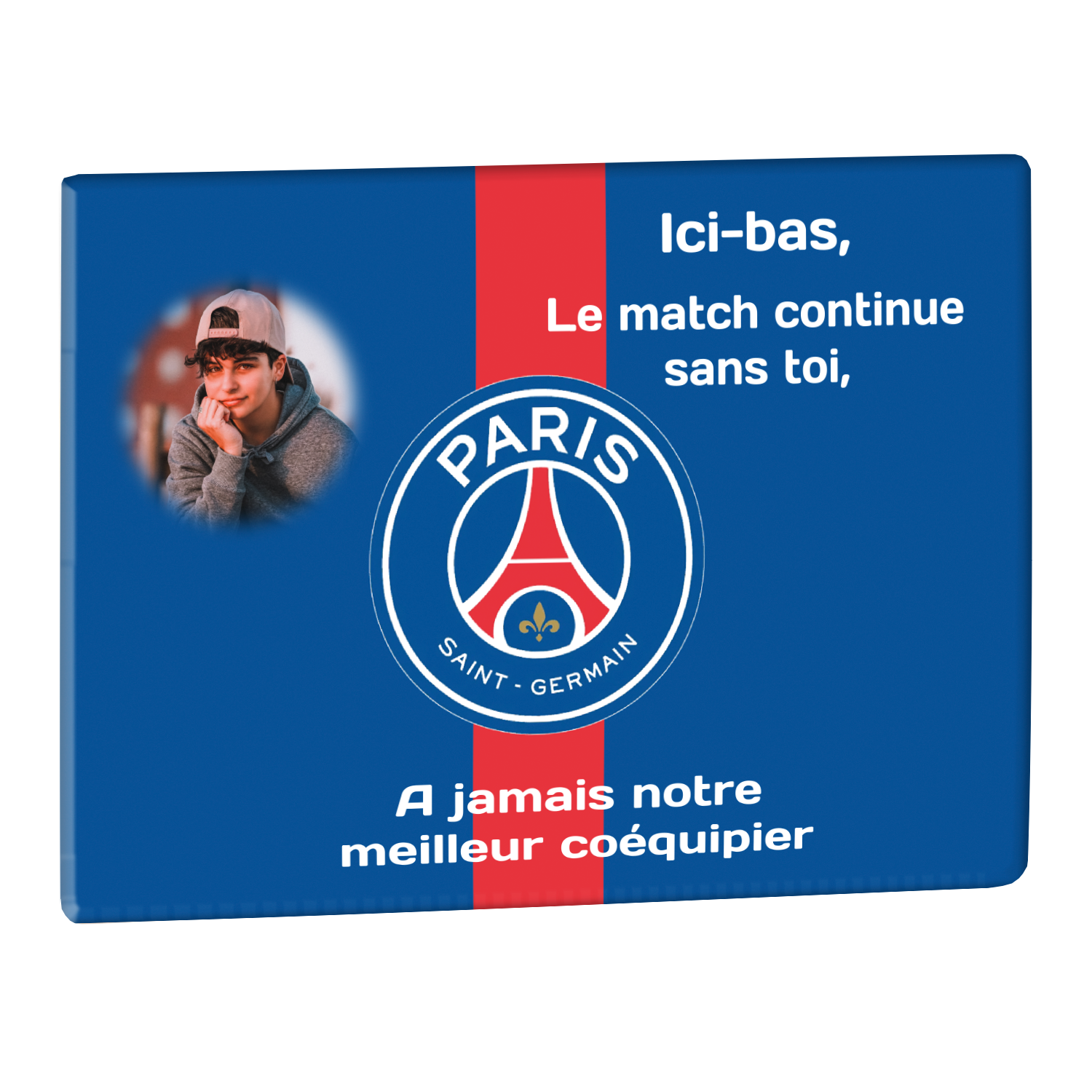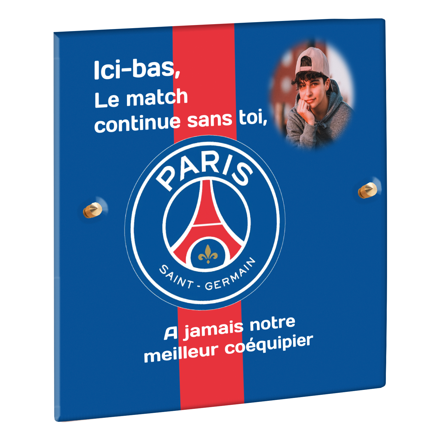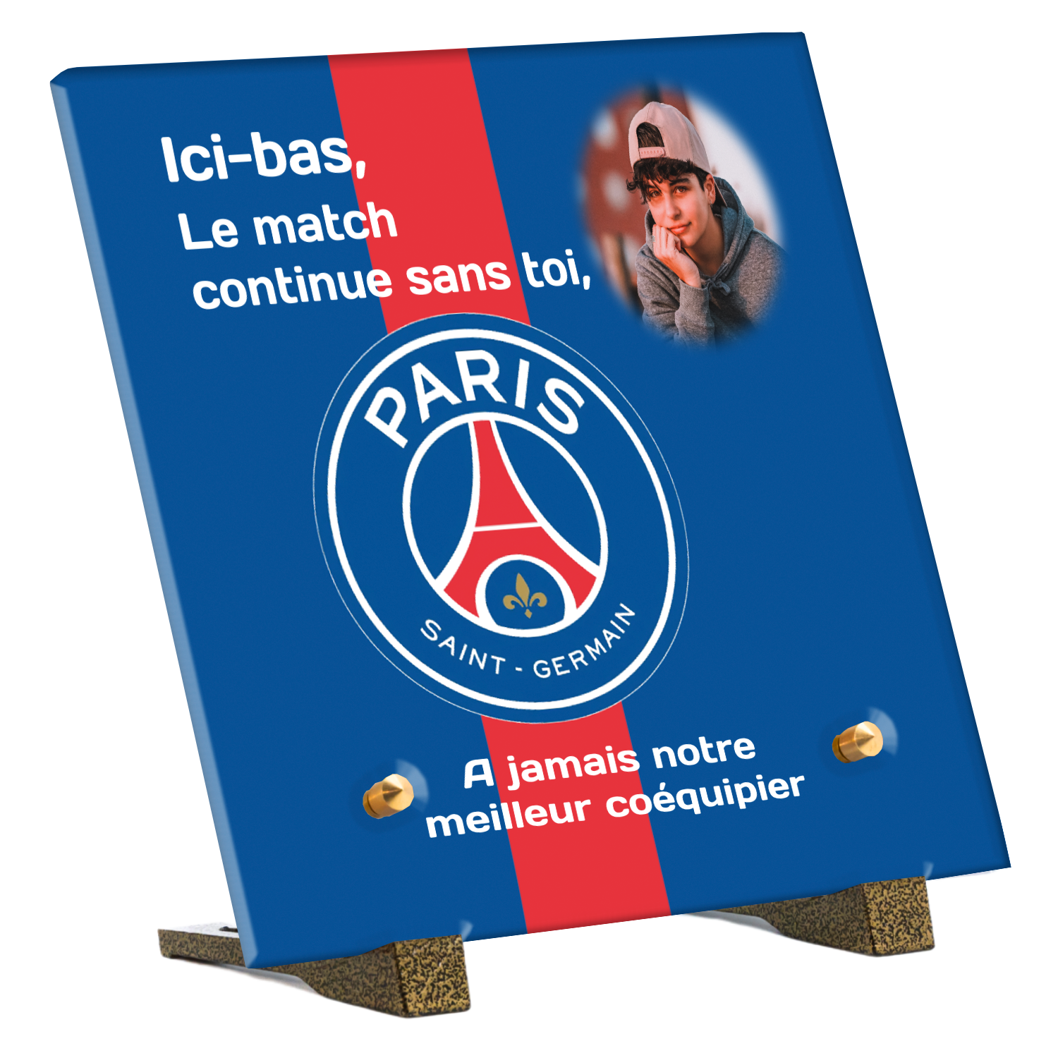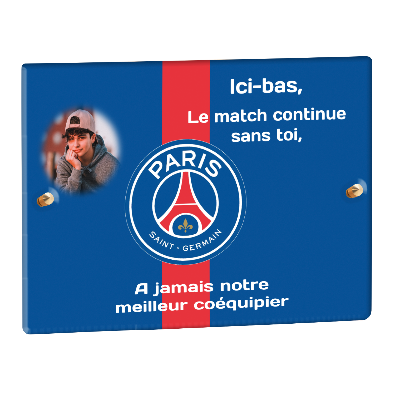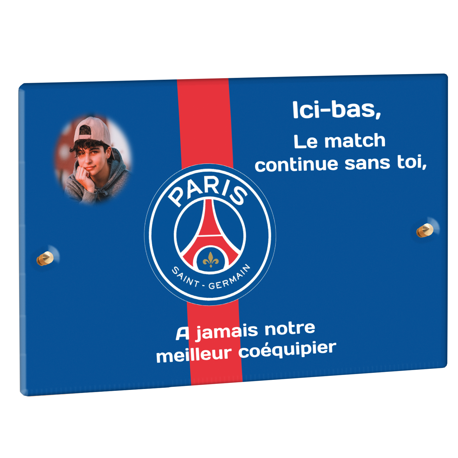 Offrez un hommage unique avec cette plaque funéraire personnalisée aux couleurs du PSG. Conçue en plexiglas moderne, elle allie élégance et durabilité pour célébrer la mémoire de vos proches.