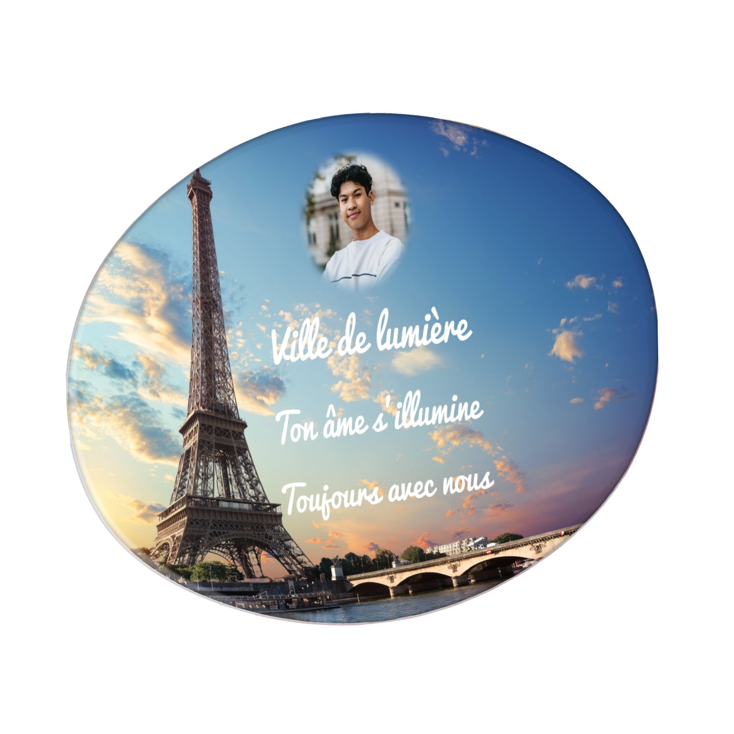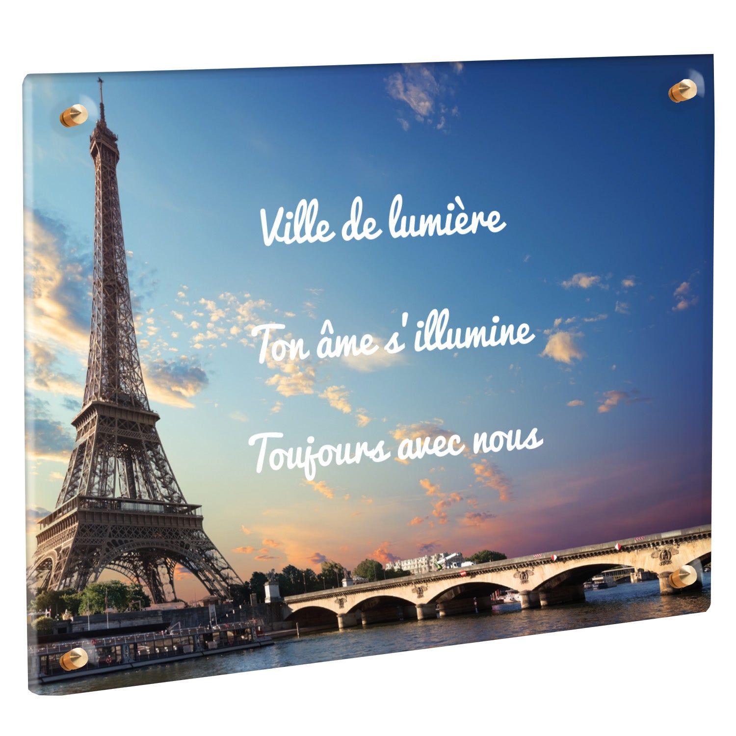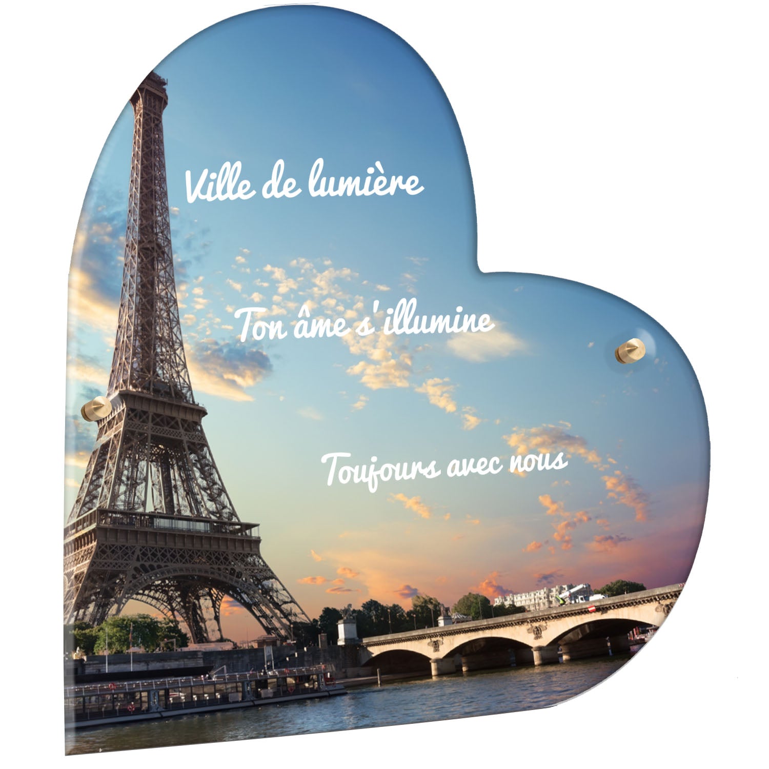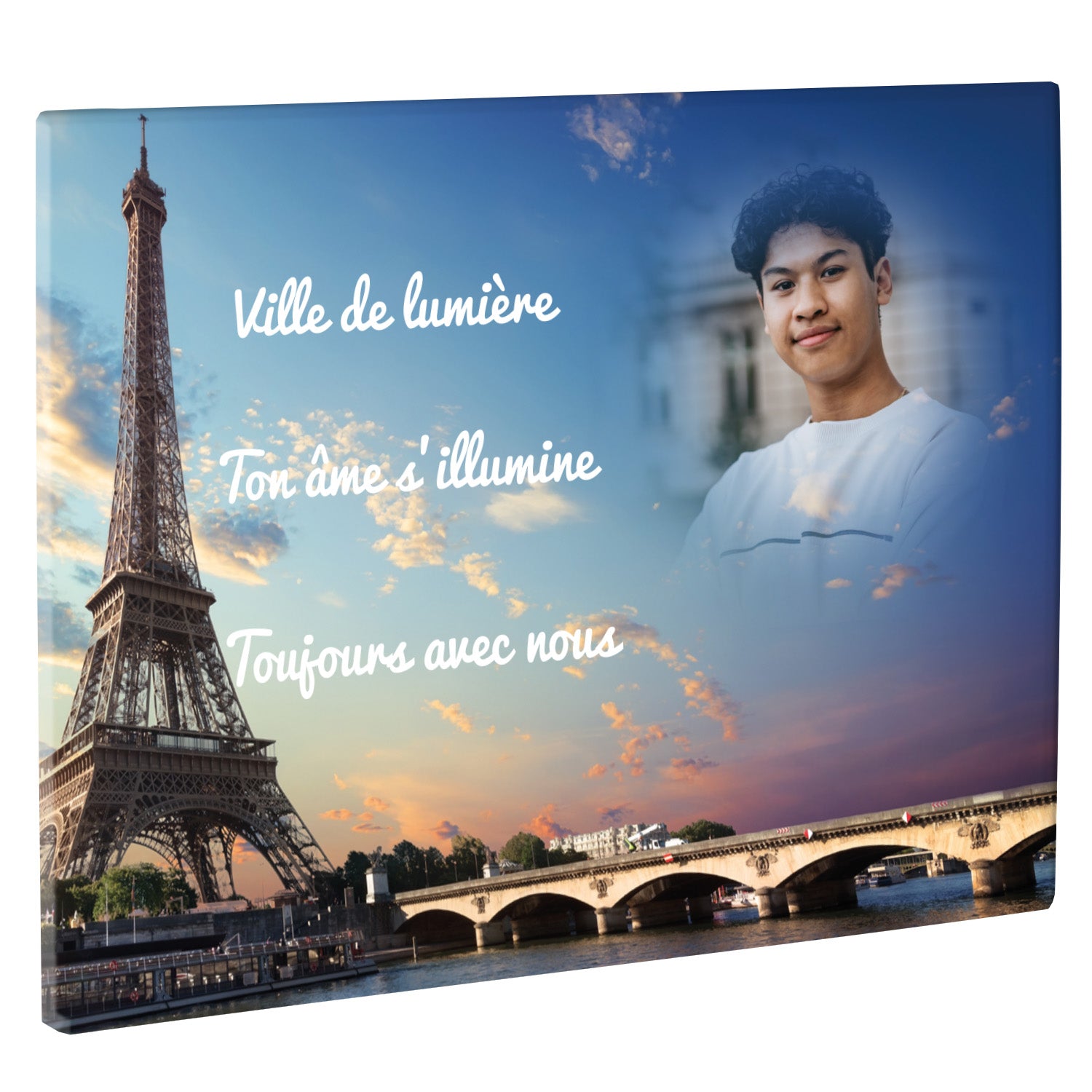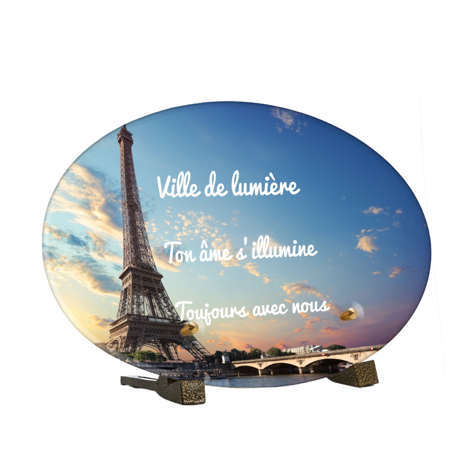 Découvrez cette plaque funéraire personnalisée illustrant délicatement la Tour Eiffel et la Seine, symbole intemporel de Paris. Conçue en plexiglas, cette plaque mortuaire allie modernité et élégance pour honorer dignement la mémoire de vos proches. Sa finition soignée en fait une plaque funéraire moderne, adaptée à tous types de mémoriaux.