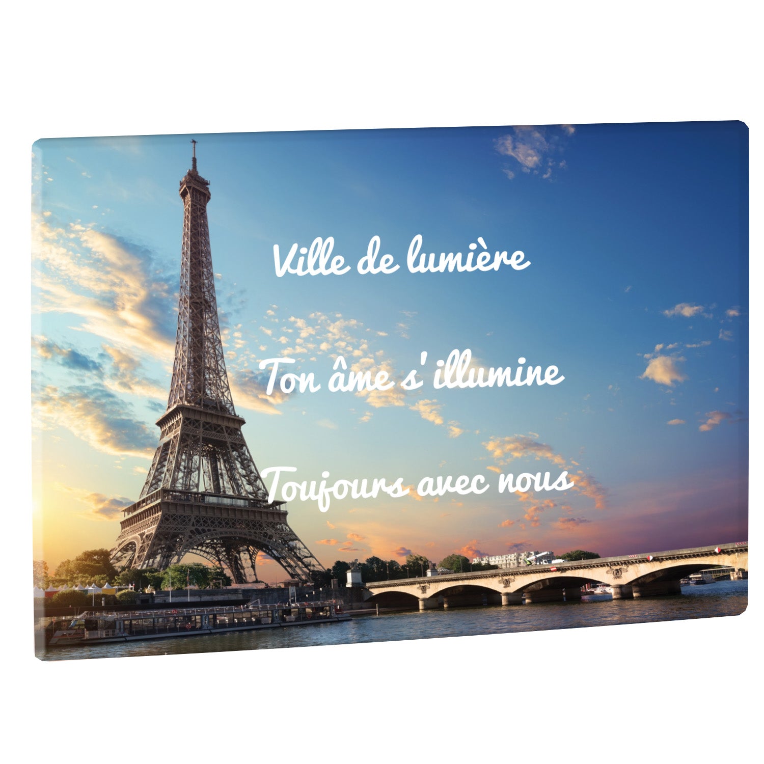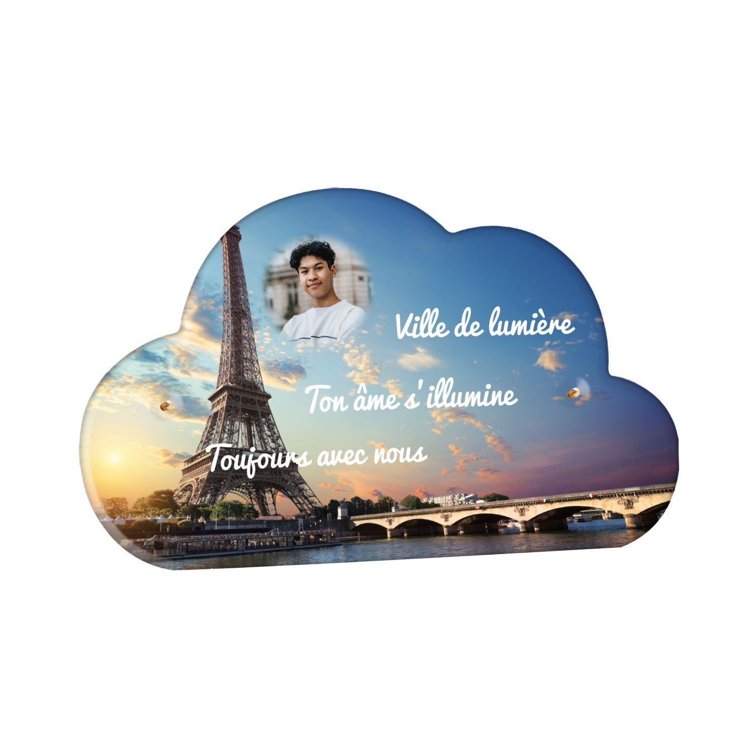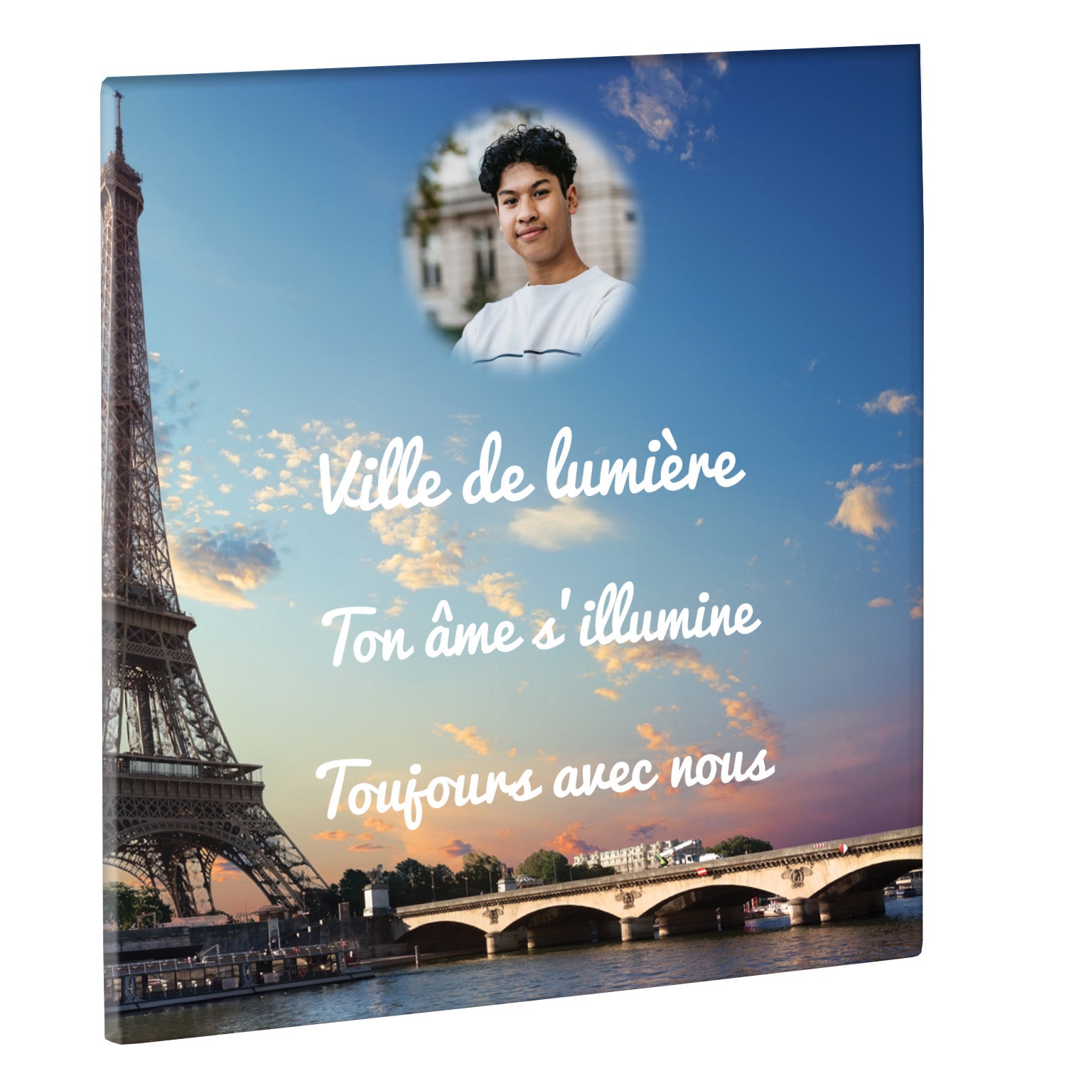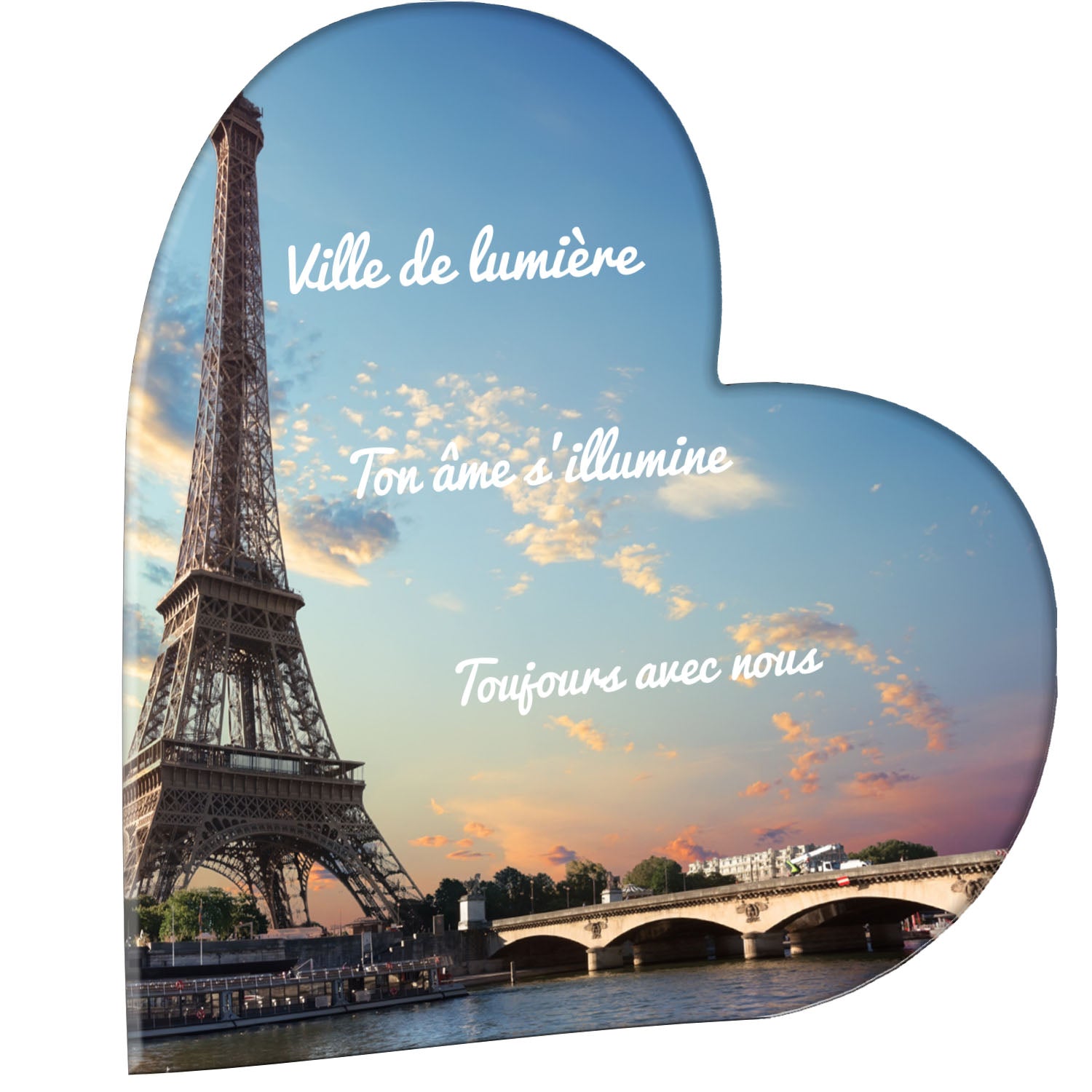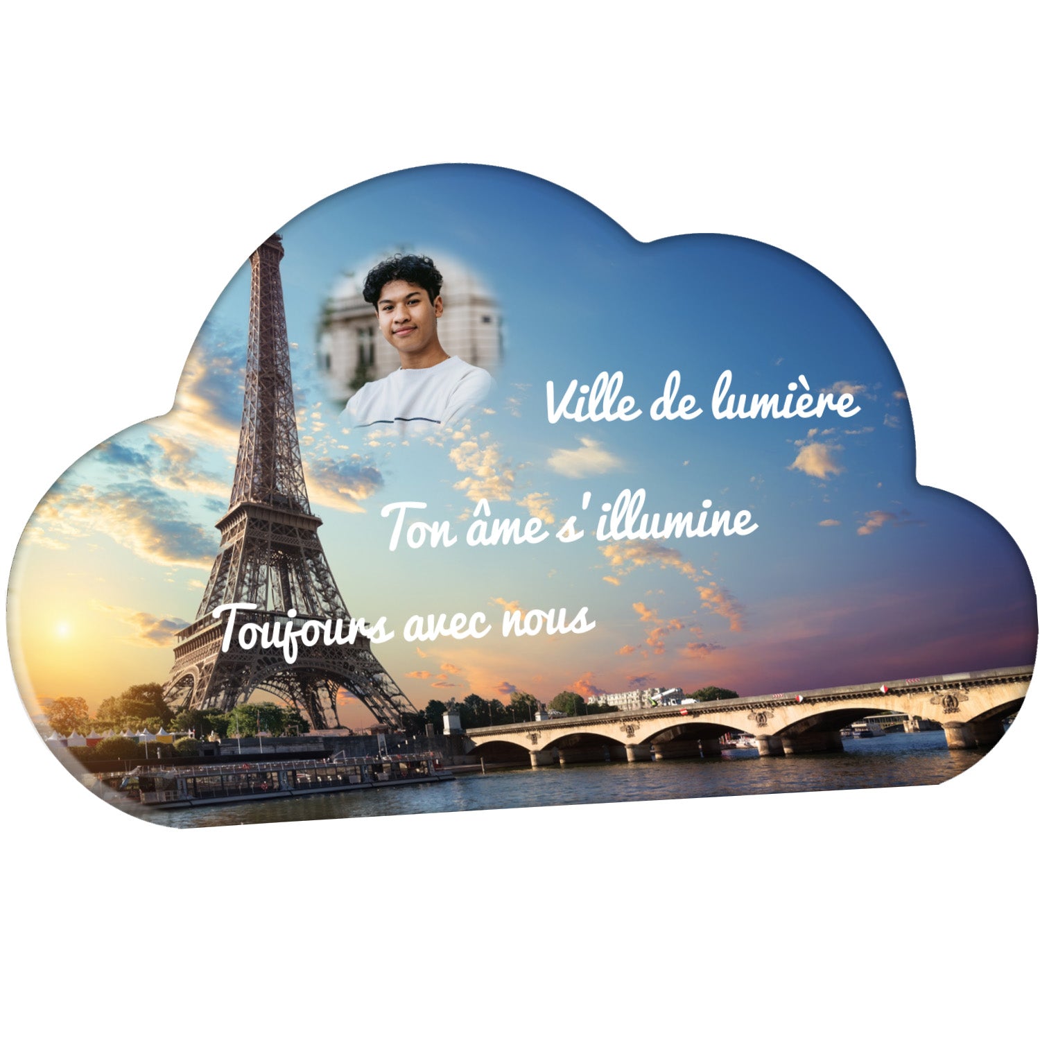 Découvrez cette plaque funéraire personnalisée illustrant délicatement la Tour Eiffel et la Seine, symbole intemporel de Paris. Conçue en plexiglas, cette plaque mortuaire allie modernité et élégance pour honorer dignement la mémoire de vos proches. Sa finition soignée en fait une plaque funéraire moderne, adaptée à tous types de mémoriaux.