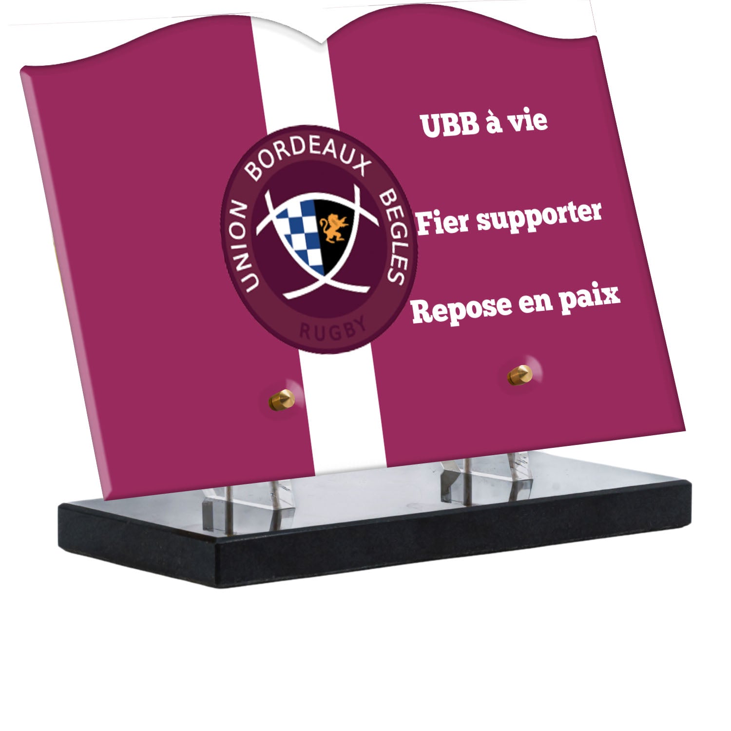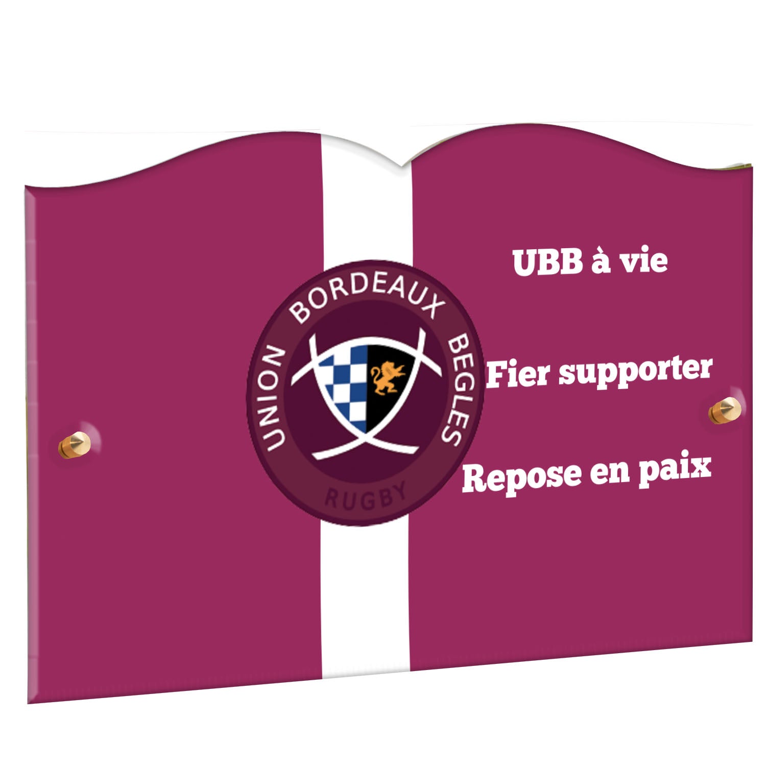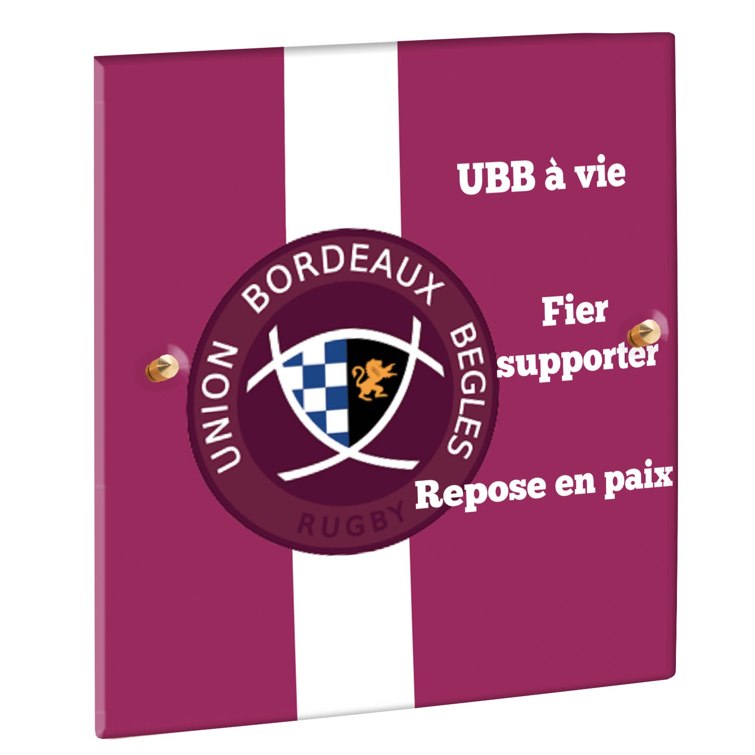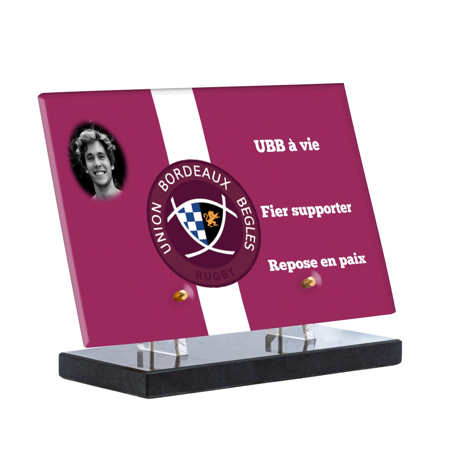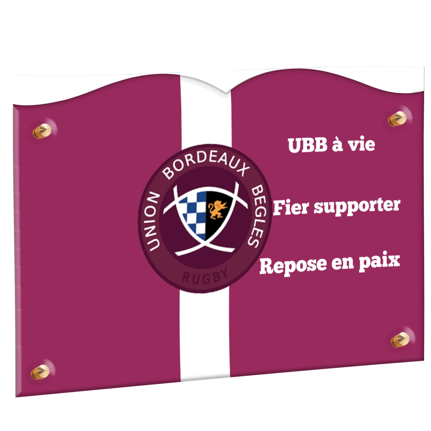 Offrez un hommage unique avec cette plaque funéraire personnalisée arborant fièrement le logo de l’Union Bordeaux Bègles (UBB). Conçue en plexiglas de haute qualité, cette plaque funéraire moderne allie élégance et durabilité, parfaite pour une plaque mortuaire qui respecte la mémoire de vos proches avec distinction.