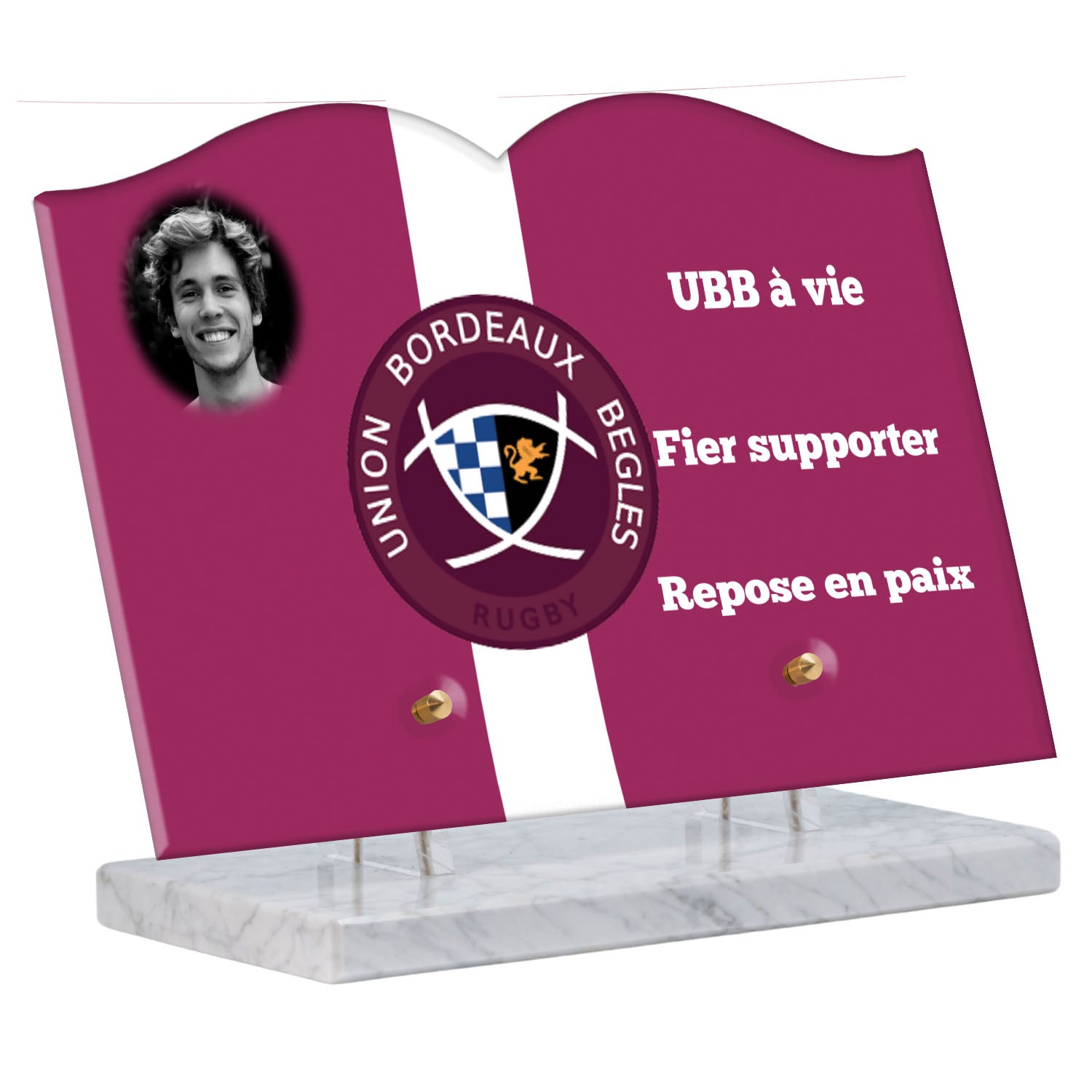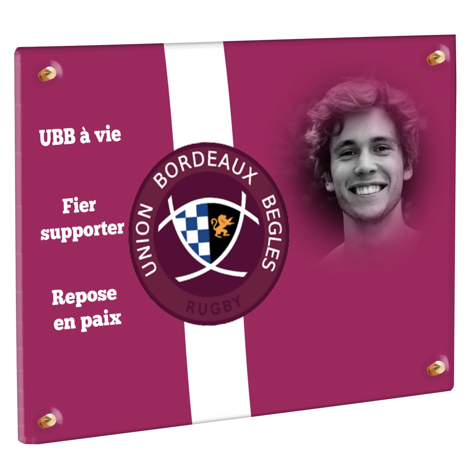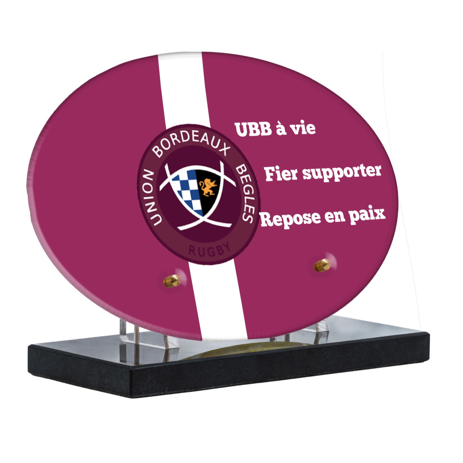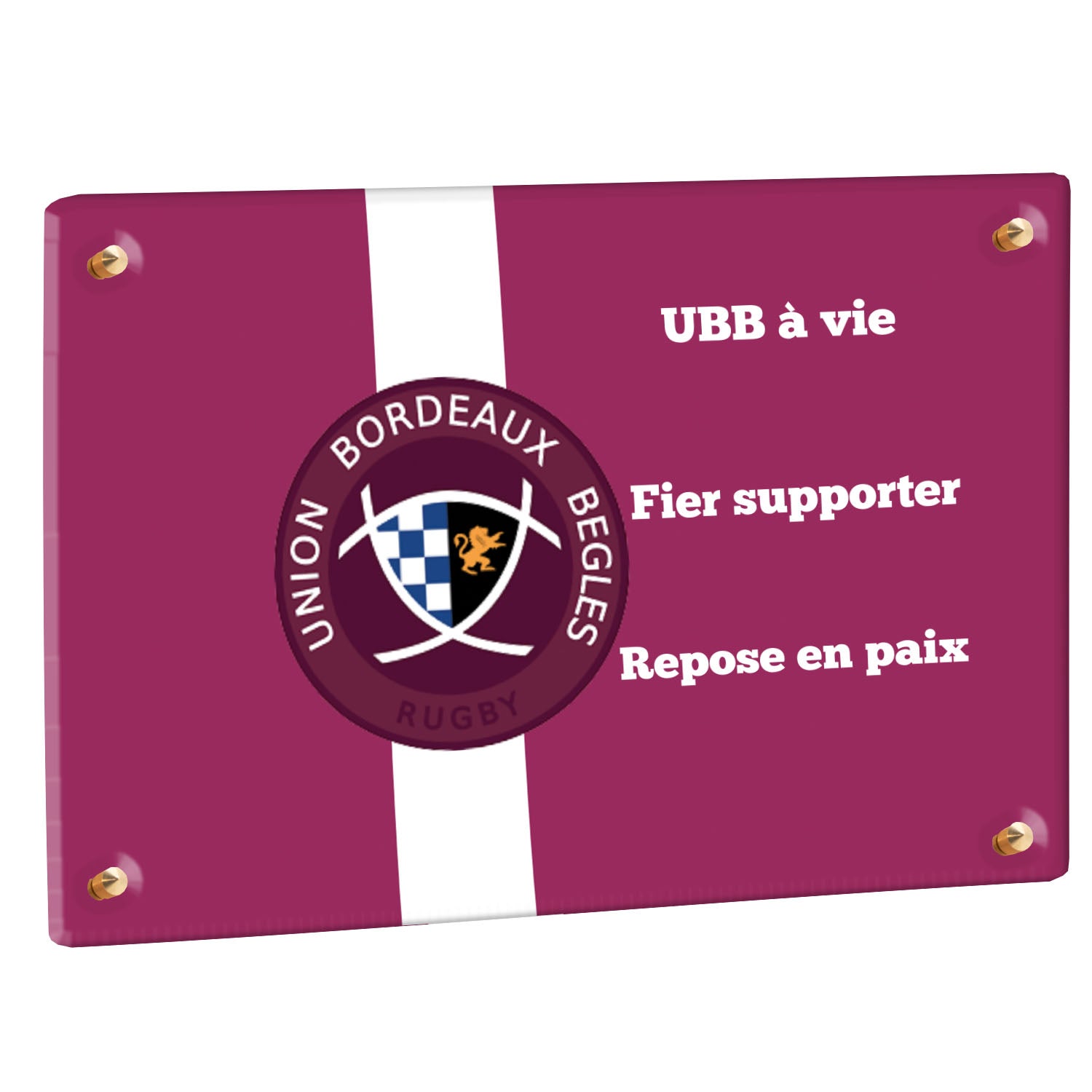 Offrez un hommage unique avec cette plaque funéraire personnalisée arborant fièrement le logo de l’Union Bordeaux Bègles (UBB). Conçue en plexiglas de haute qualité, cette plaque funéraire moderne allie élégance et durabilité, parfaite pour une plaque mortuaire qui respecte la mémoire de vos proches avec distinction.