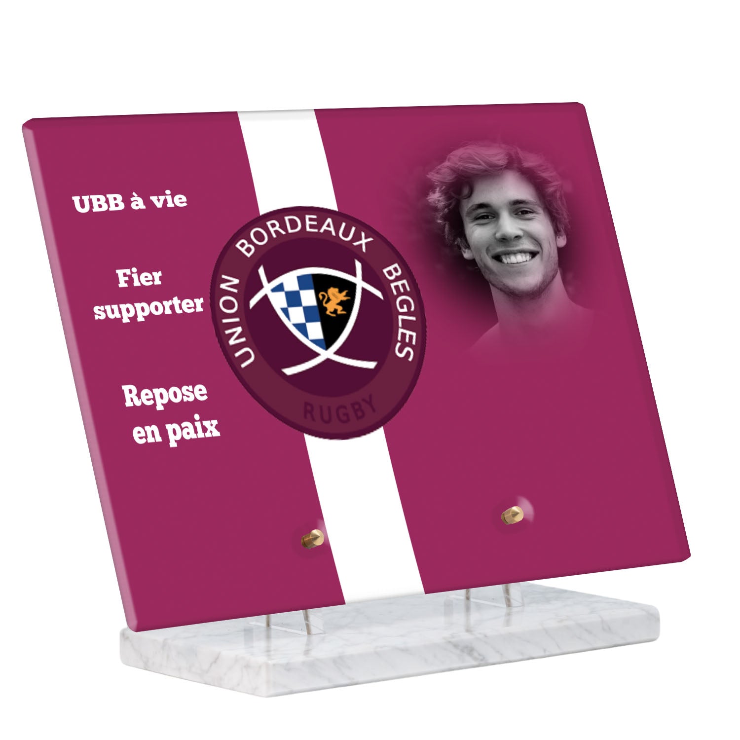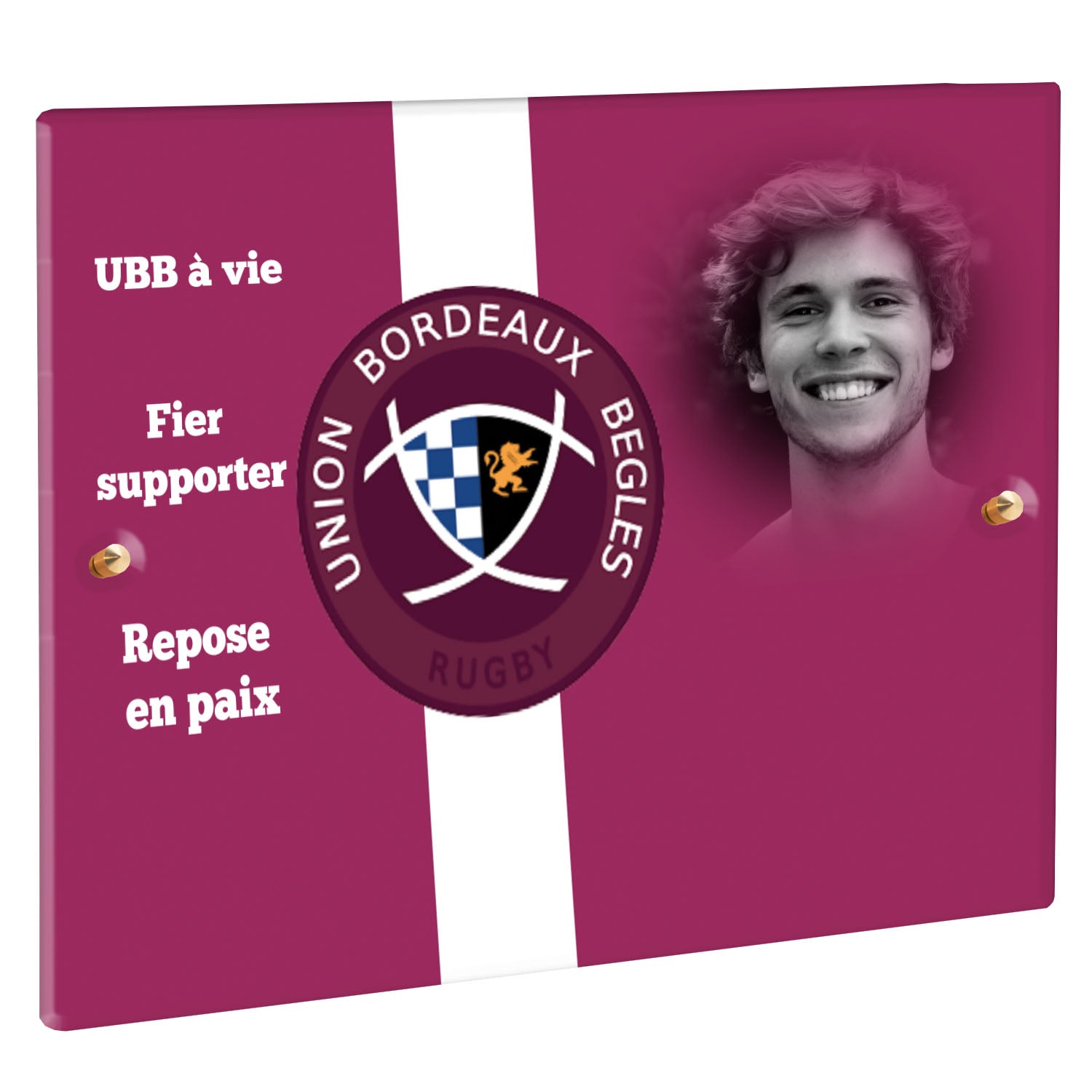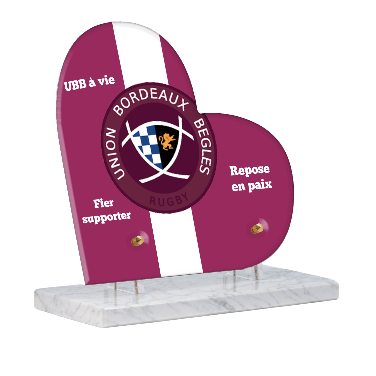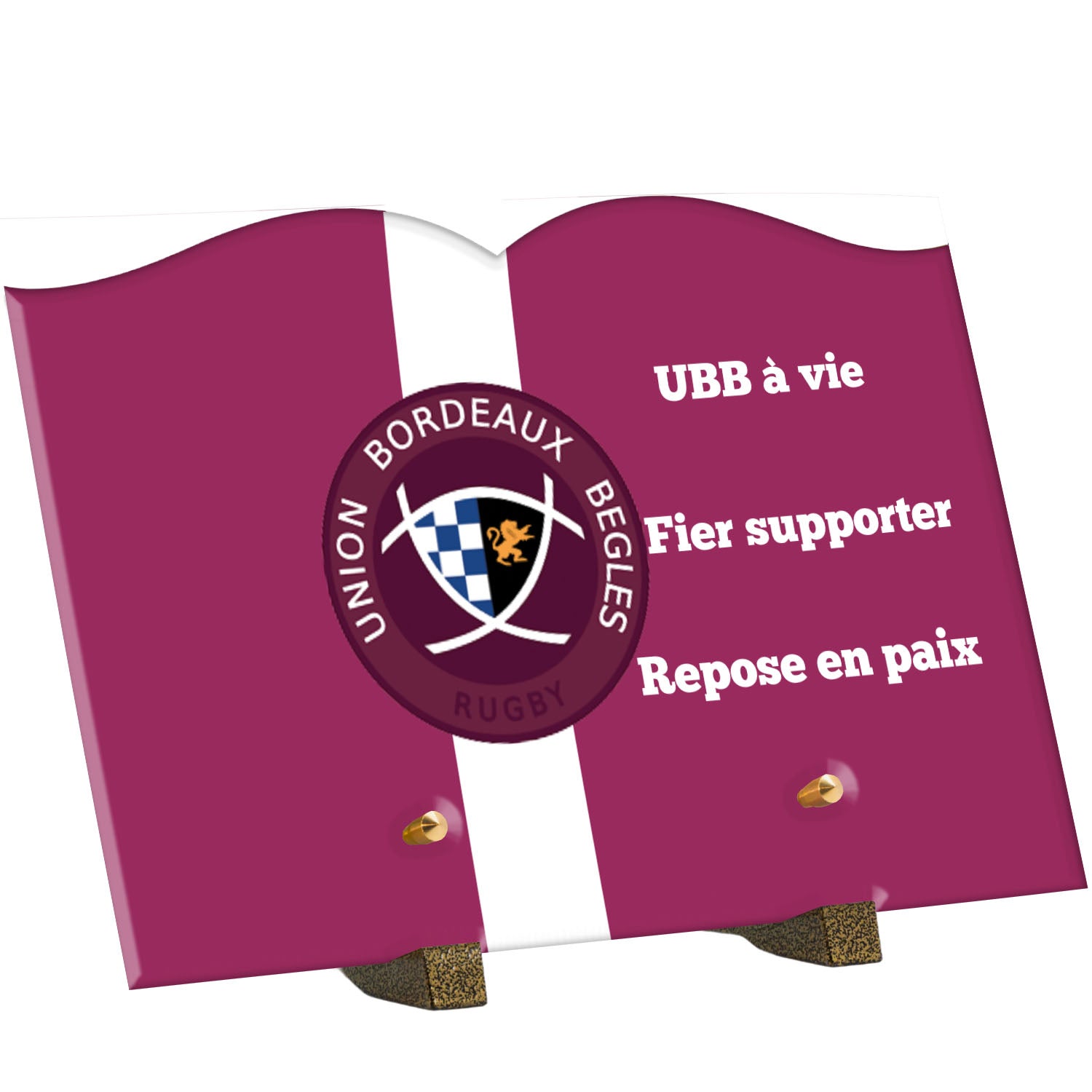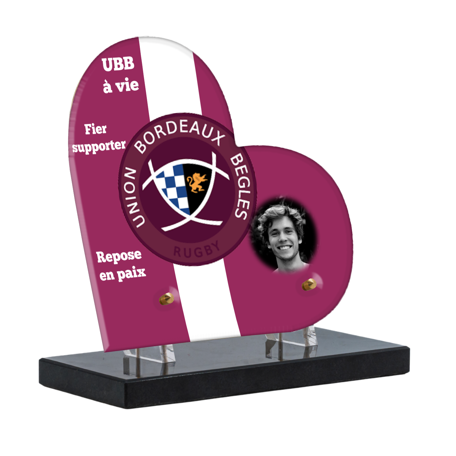Offrez un hommage unique avec cette plaque funéraire personnalisée arborant fièrement le logo de l’Union Bordeaux Bègles (UBB). Conçue en plexiglas de haute qualité, cette plaque funéraire moderne allie élégance et durabilité, parfaite pour une plaque mortuaire qui respecte la mémoire de vos proches avec distinction.