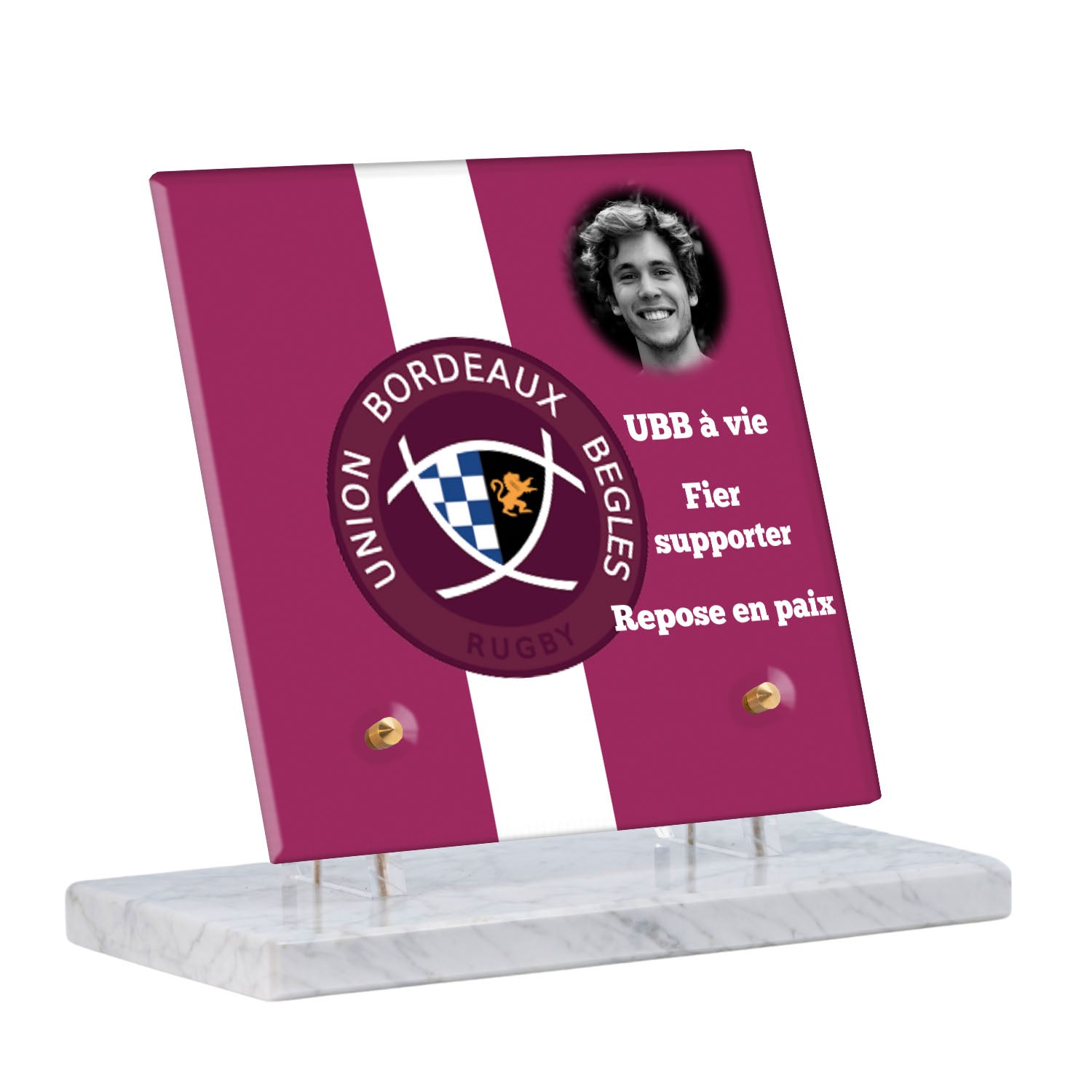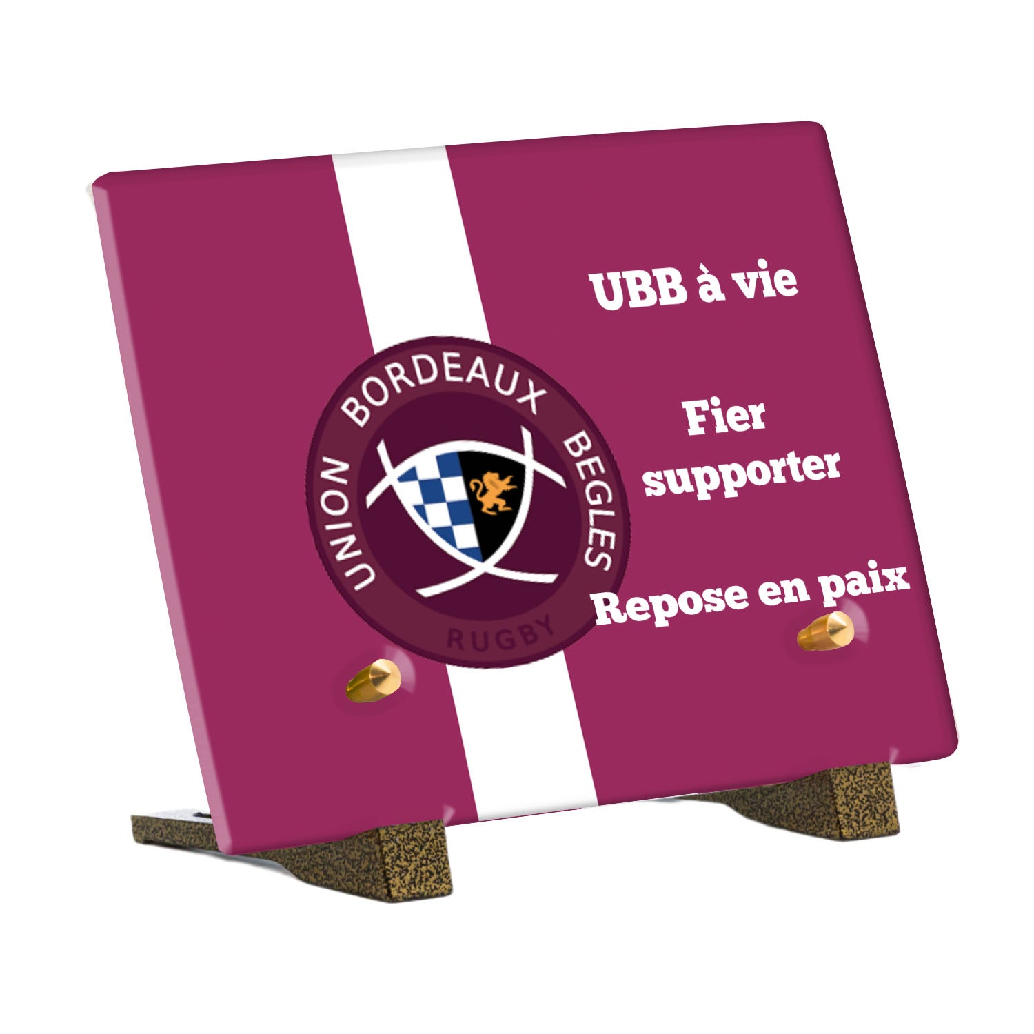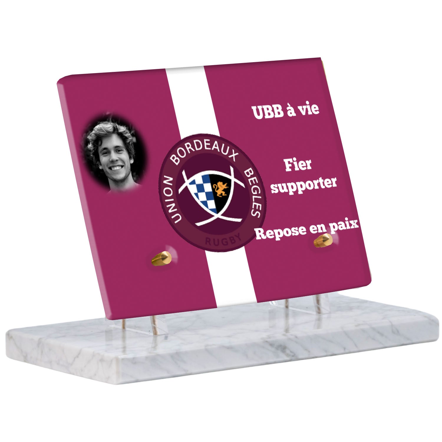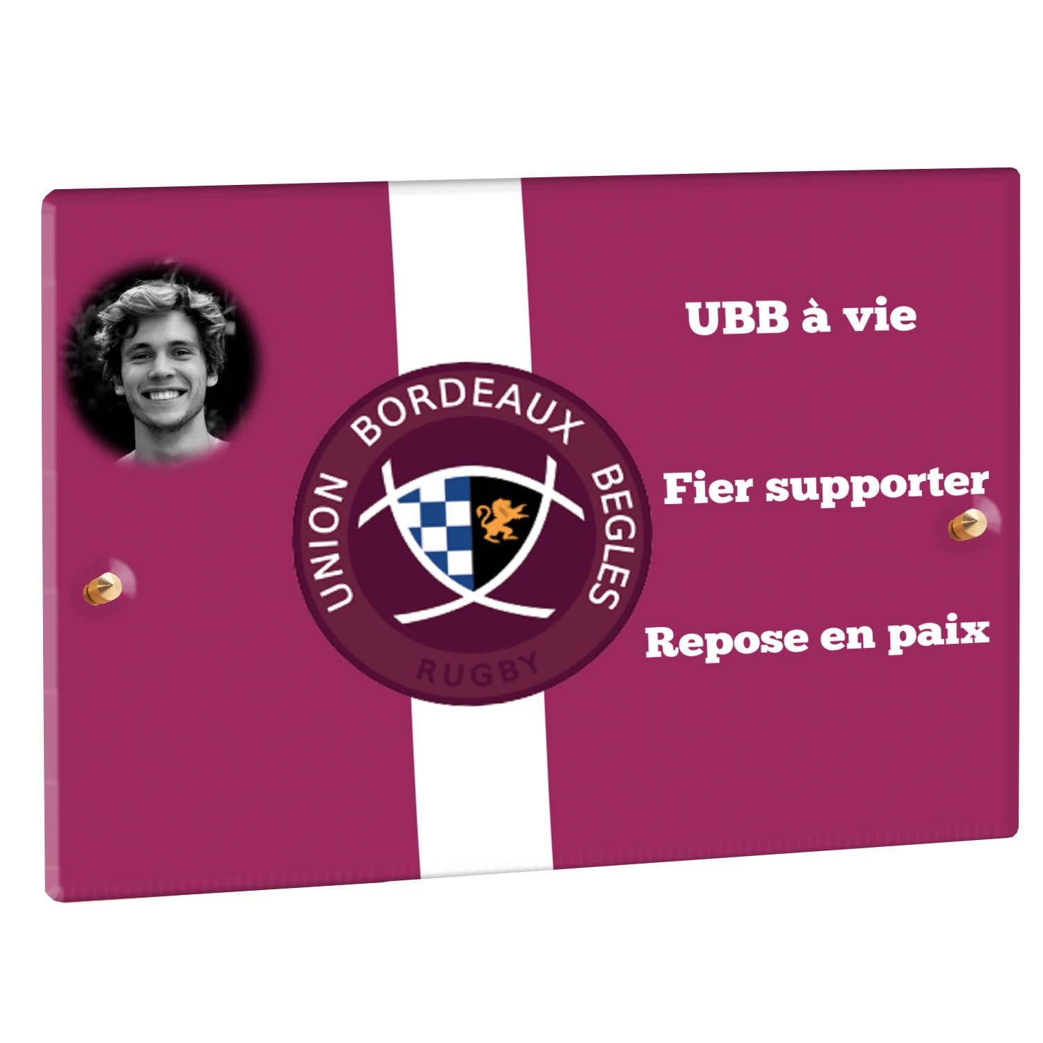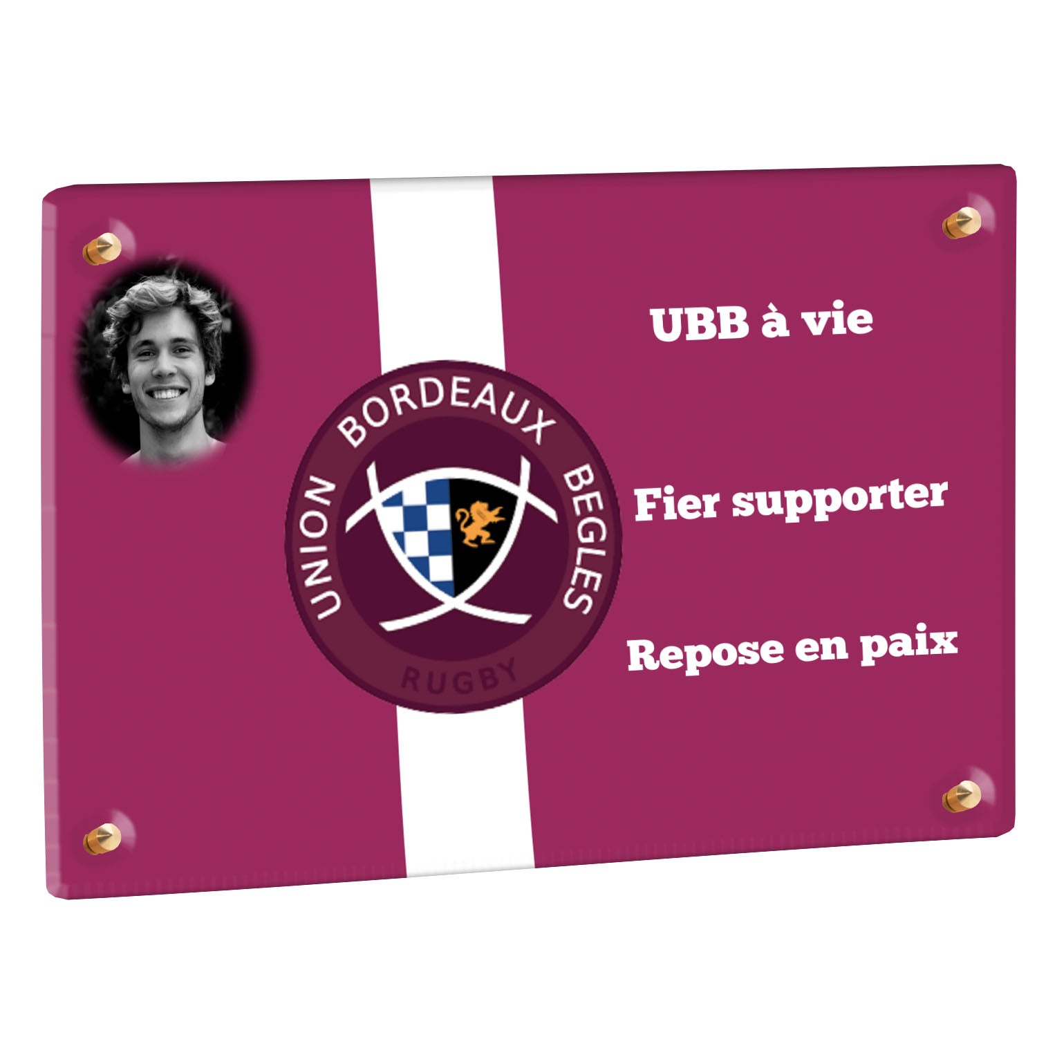 Offrez un hommage unique avec cette plaque funéraire personnalisée arborant fièrement le logo de l’Union Bordeaux Bègles (UBB). Conçue en plexiglas de haute qualité, cette plaque funéraire moderne allie élégance et durabilité, parfaite pour une plaque mortuaire qui respecte la mémoire de vos proches avec distinction.