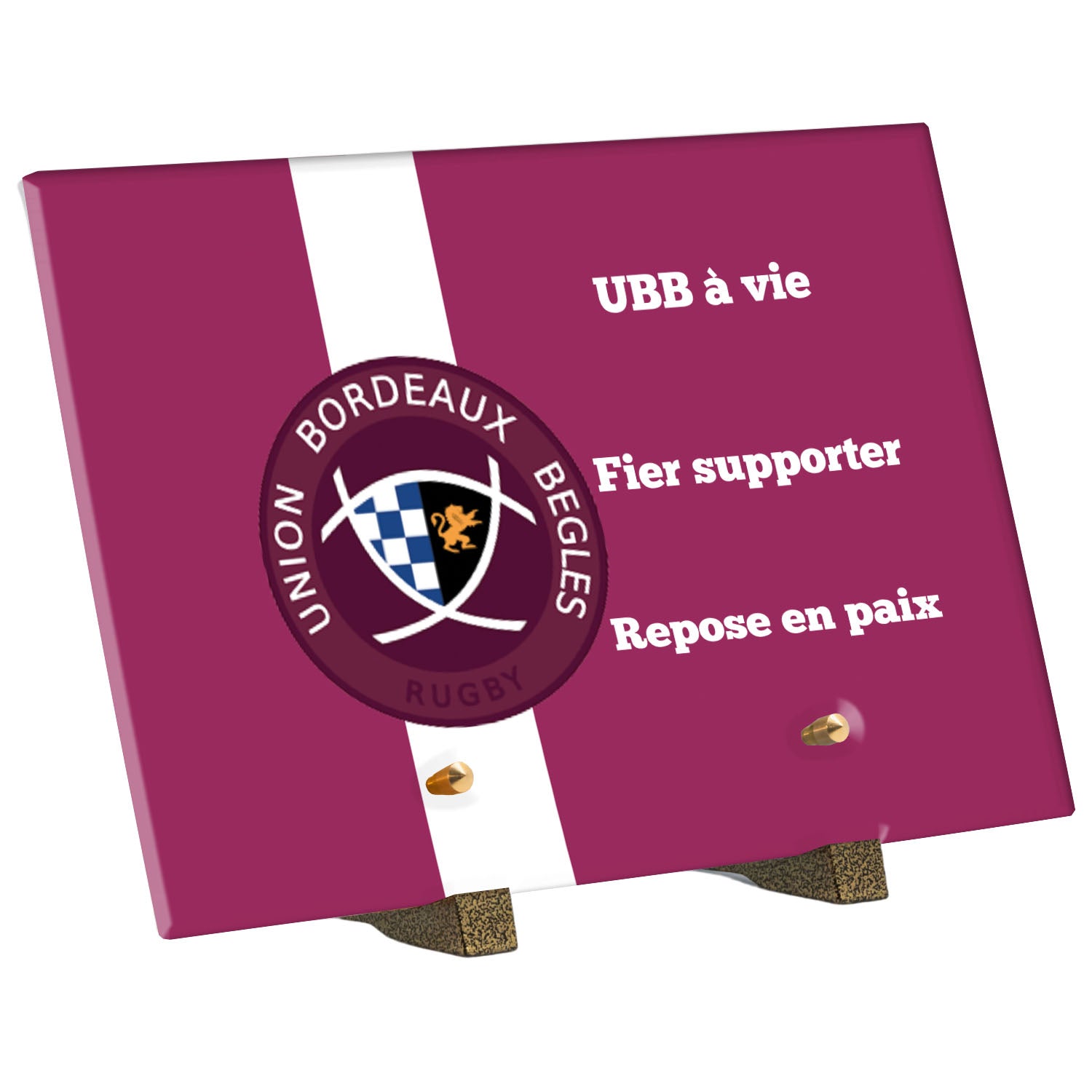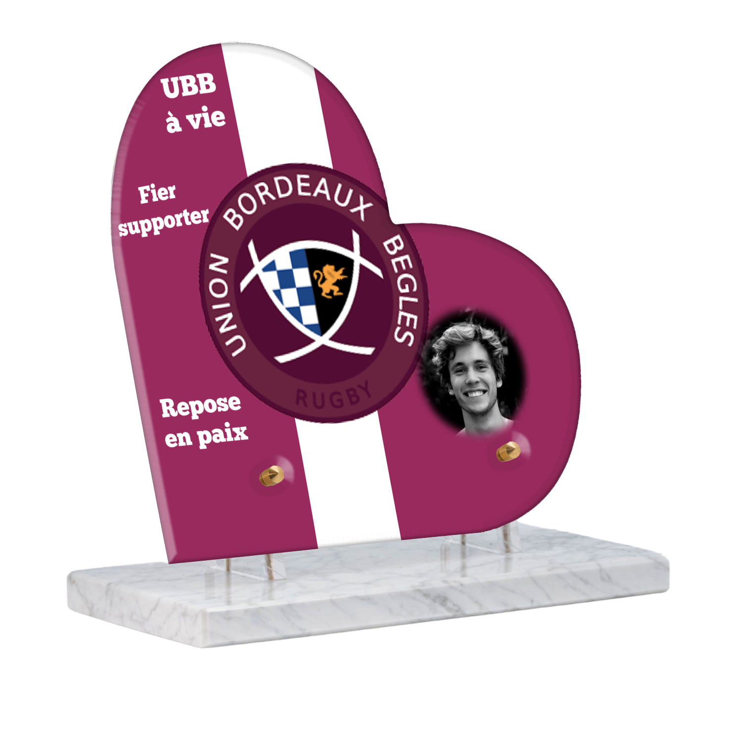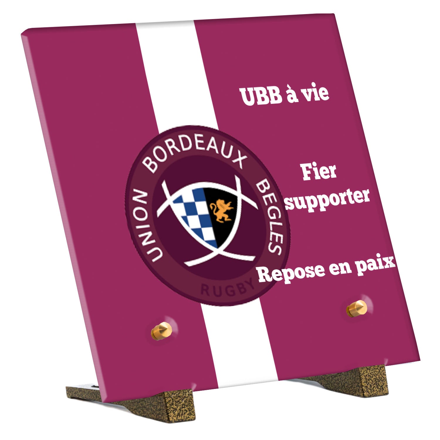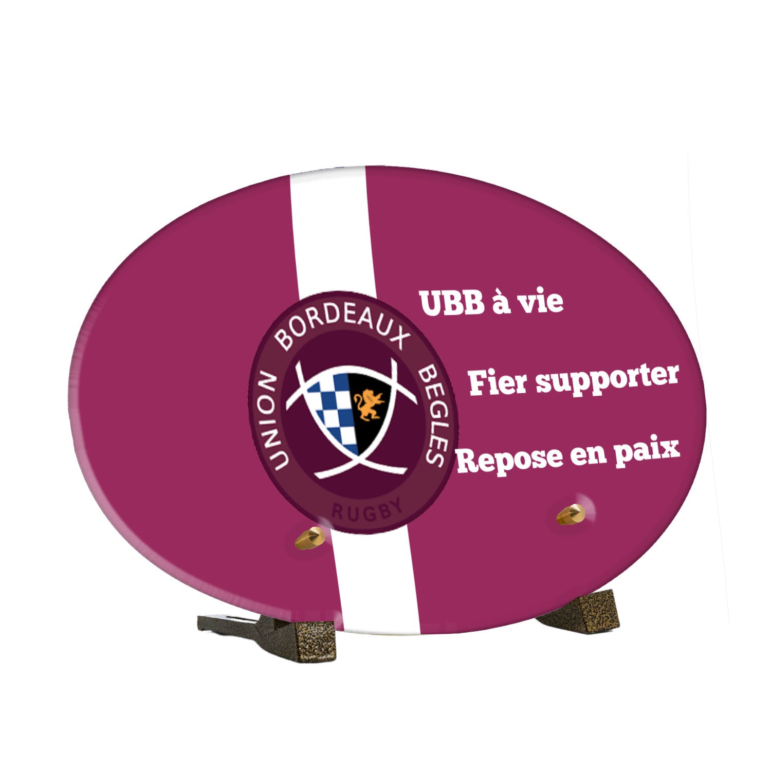Offrez un hommage unique avec cette plaque funéraire personnalisée arborant fièrement le logo de l’Union Bordeaux Bègles (UBB). Conçue en plexiglas de haute qualité, cette plaque funéraire moderne allie élégance et durabilité, parfaite pour une plaque mortuaire qui respecte la mémoire de vos proches avec distinction.
