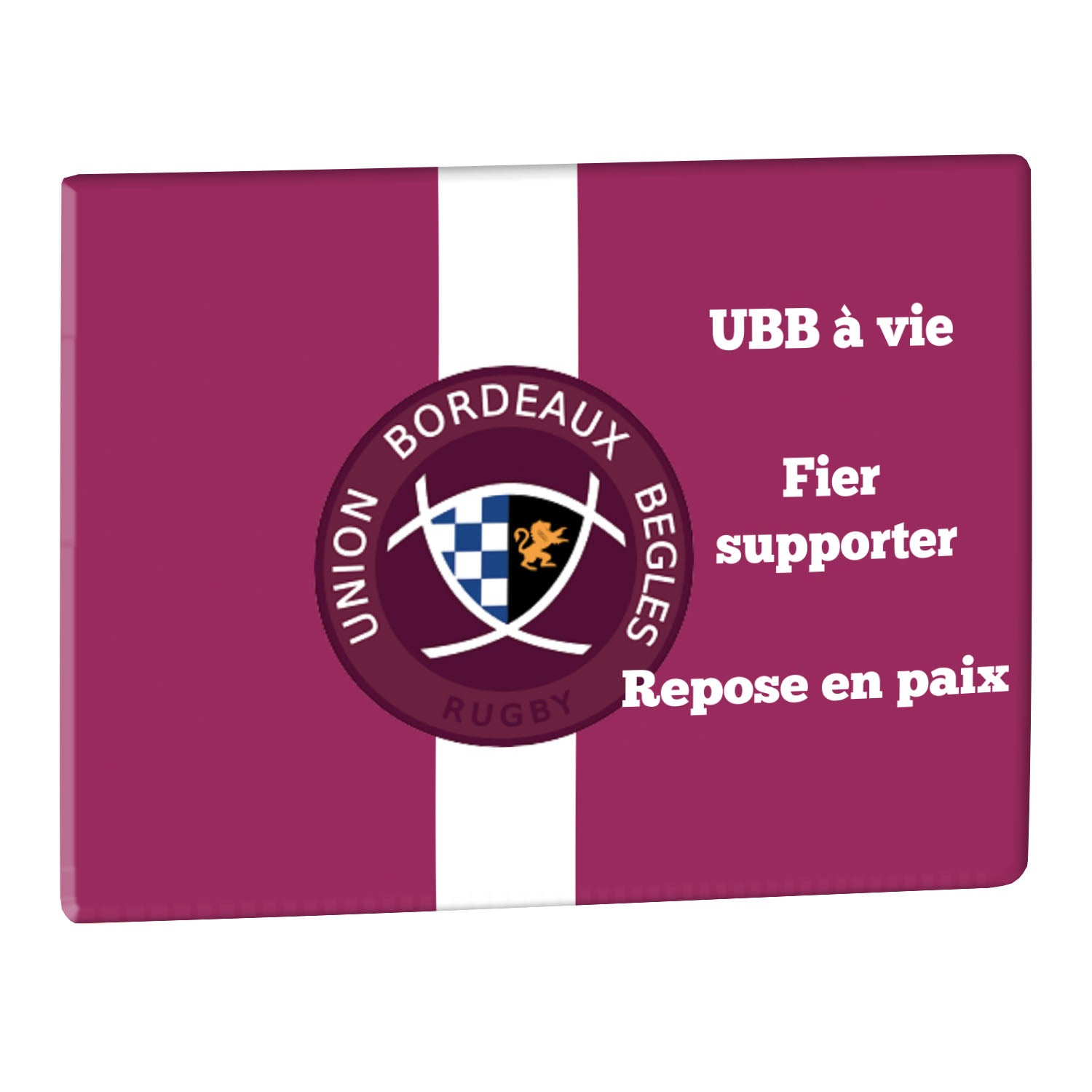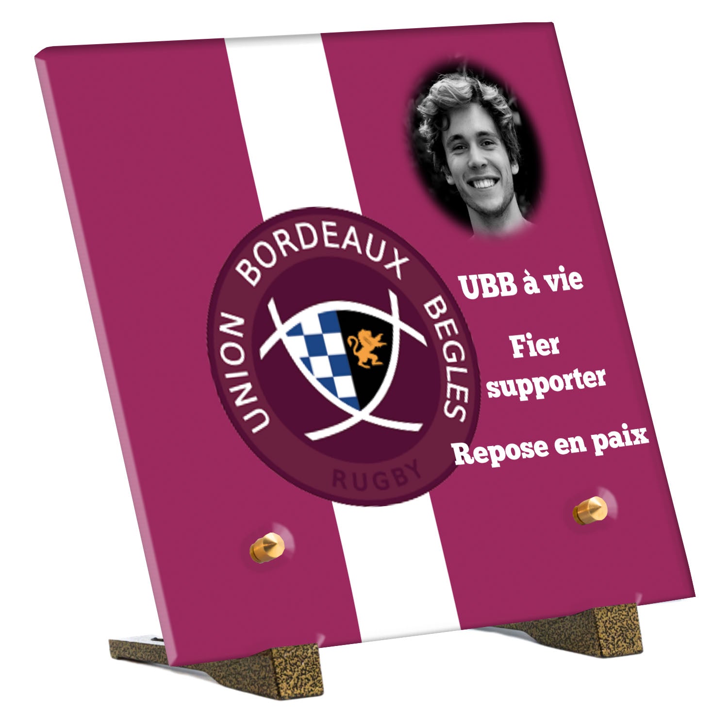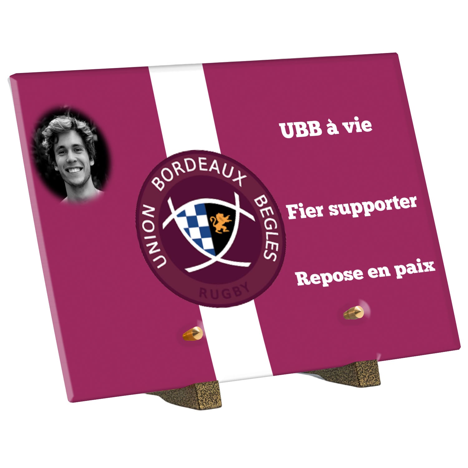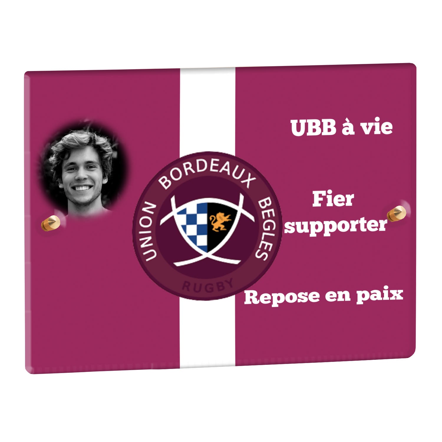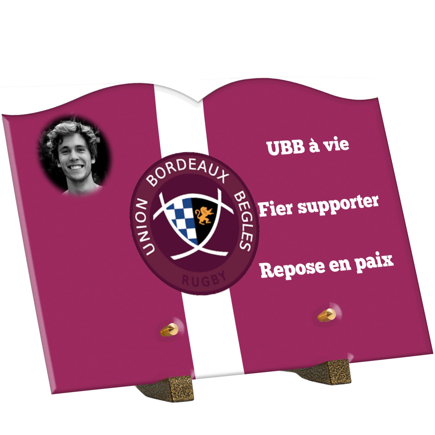 Offrez un hommage unique avec cette plaque funéraire personnalisée arborant fièrement le logo de l’Union Bordeaux Bègles (UBB). Conçue en plexiglas de haute qualité, cette plaque funéraire moderne allie élégance et durabilité, parfaite pour une plaque mortuaire qui respecte la mémoire de vos proches avec distinction.