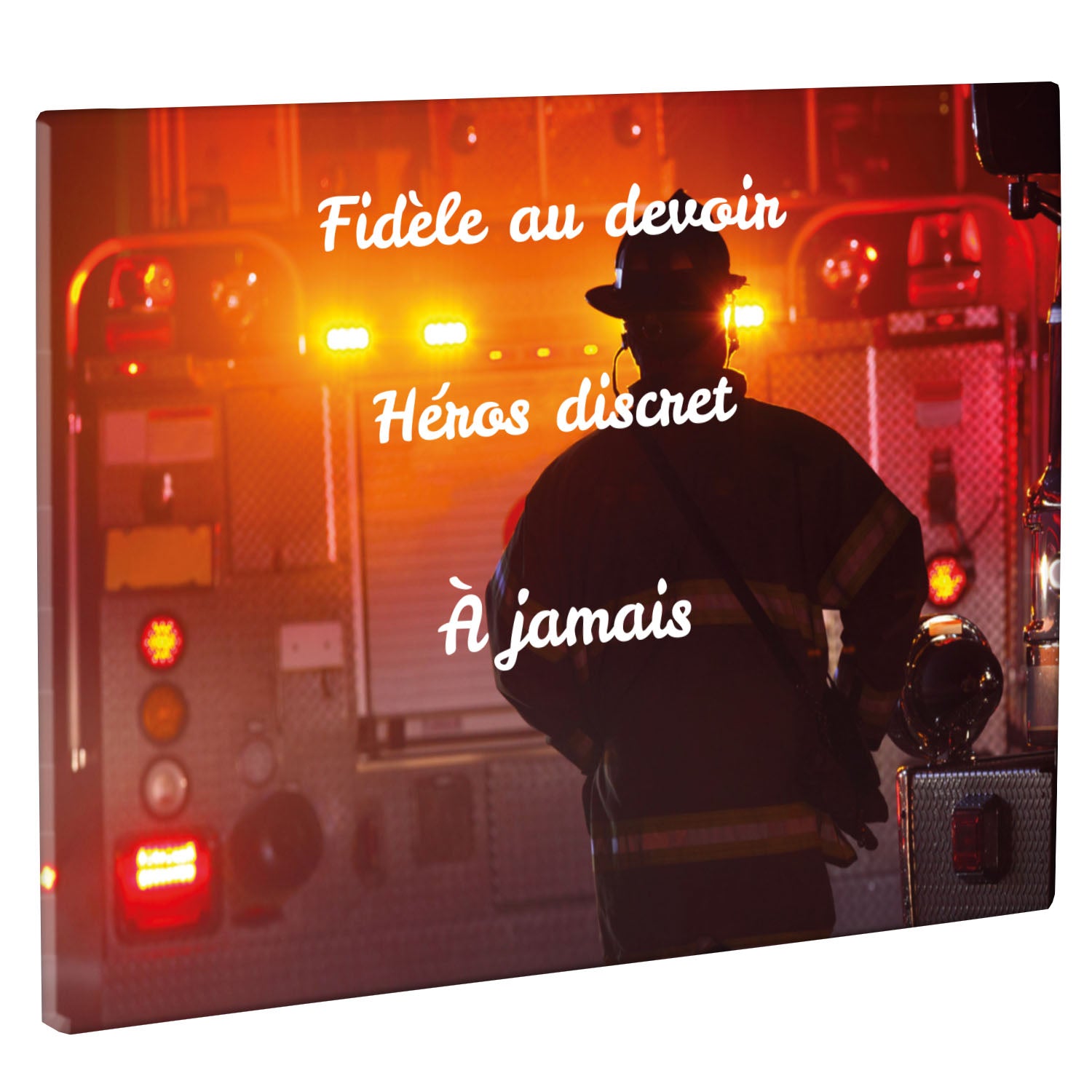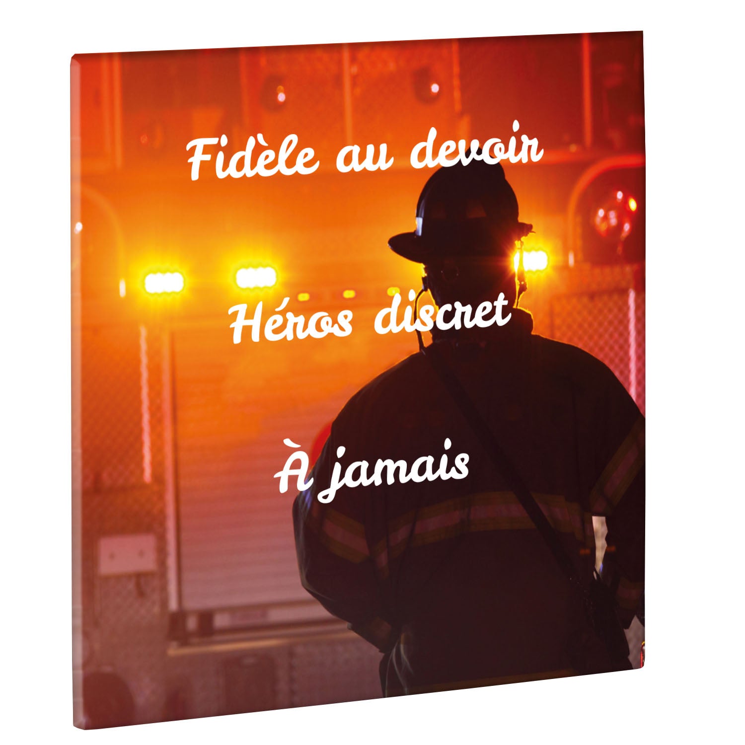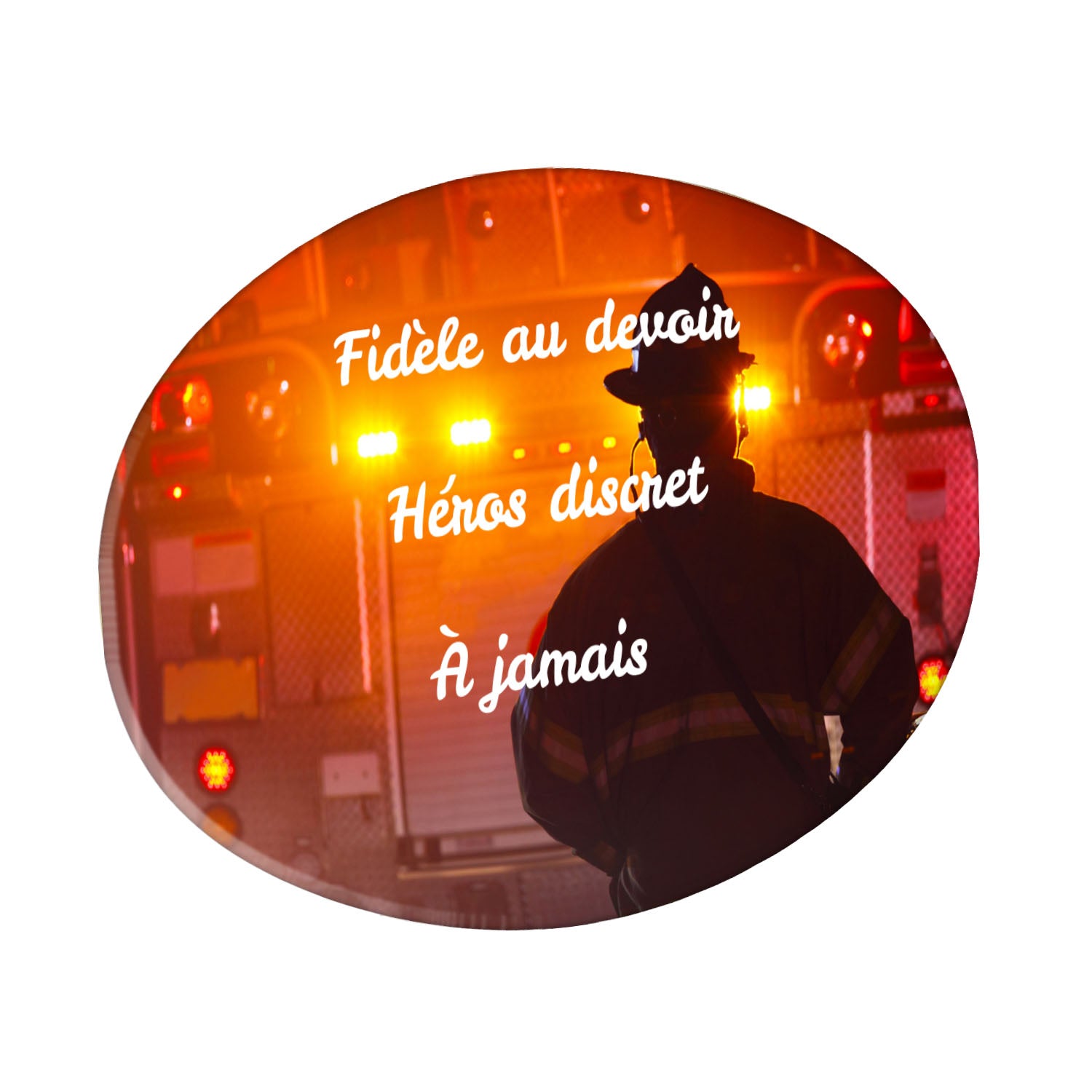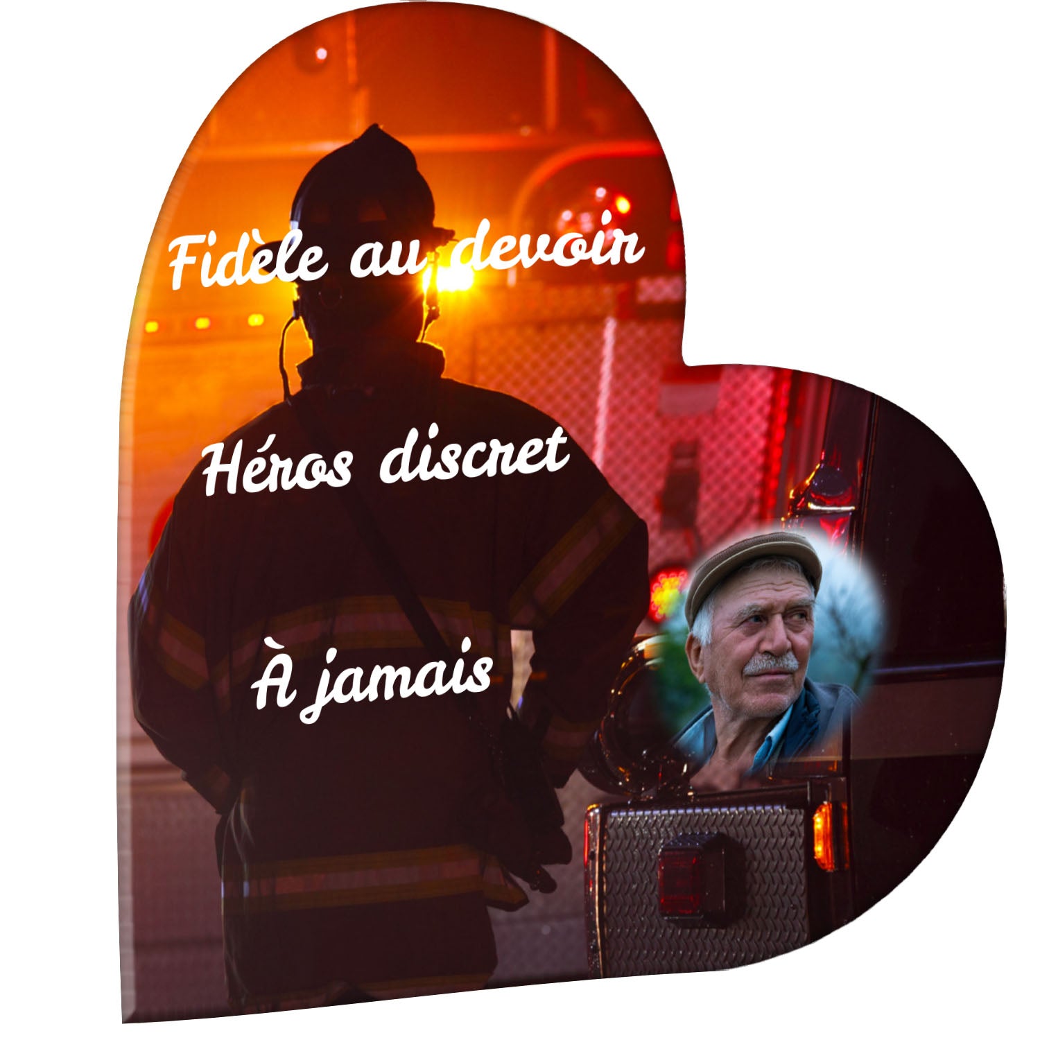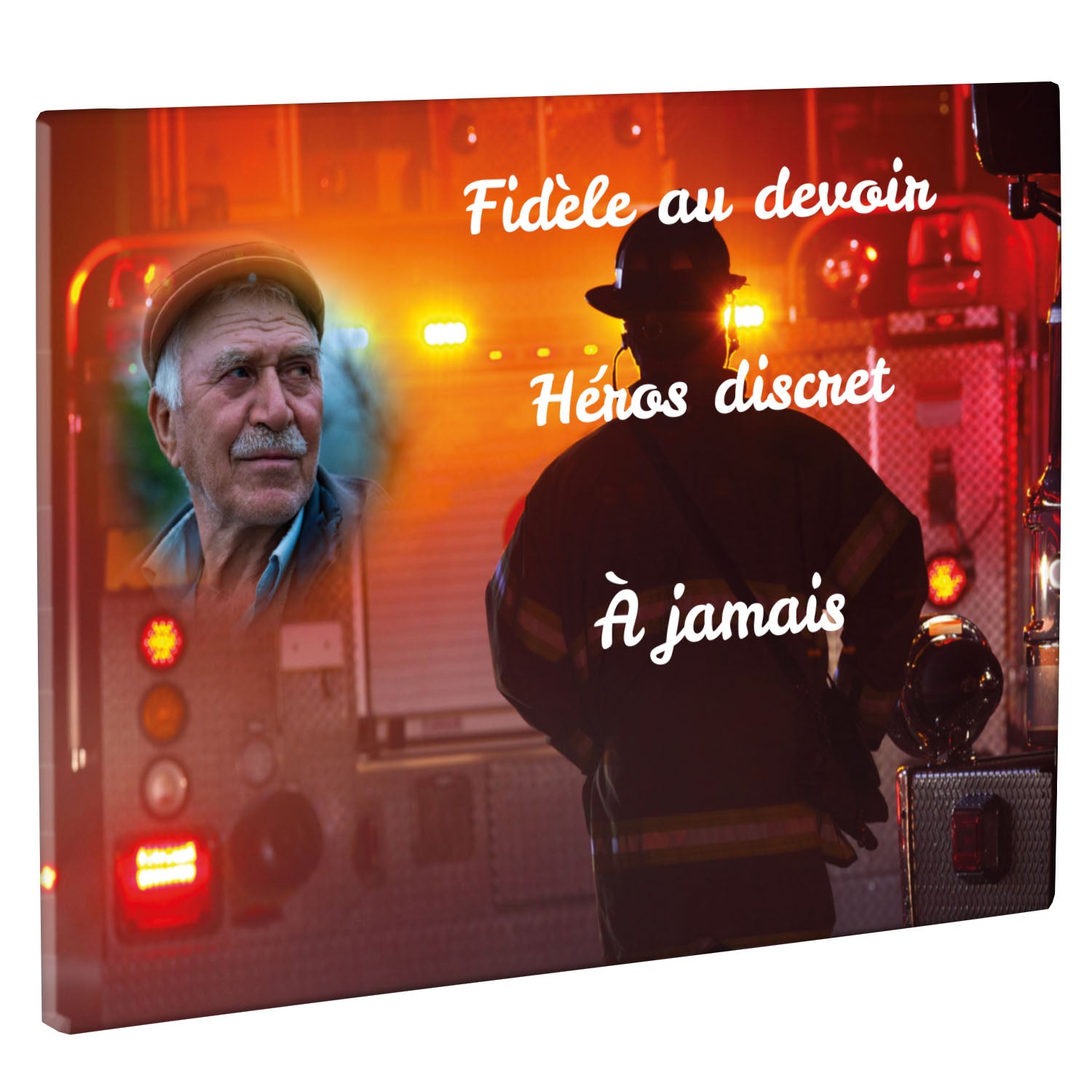 Cette plaque funéraire personnalisée rend hommage aux pompiers avec un design sobre et élégant. Réalisée en plexiglas, elle présente un visuel gravé représentant un casque de pompier et une lance d'incendie, symboles forts du courage et du dévouement. Ce modèle combine à la fois la modernité et le respect, faisant de cette plaque mortuaire un choix parfait pour une commémoration durable.