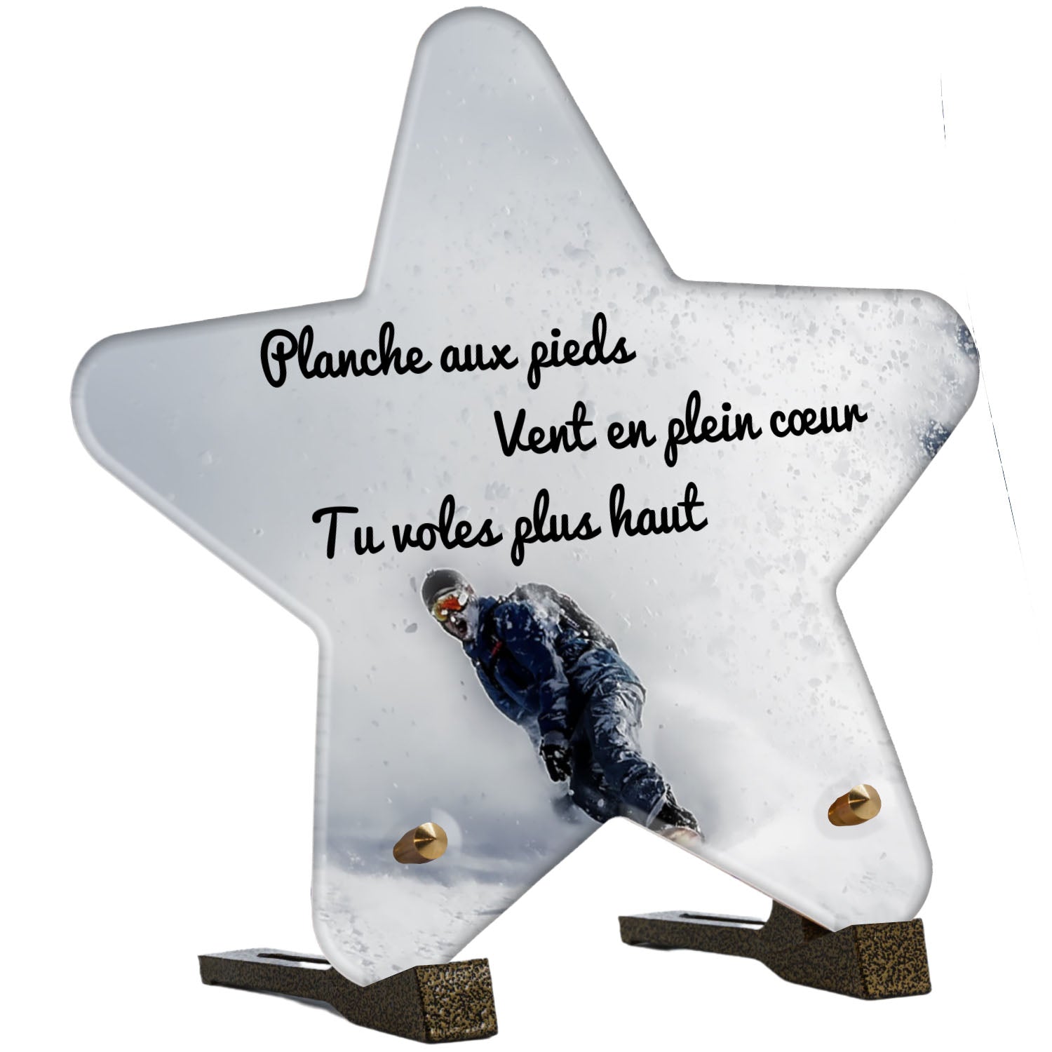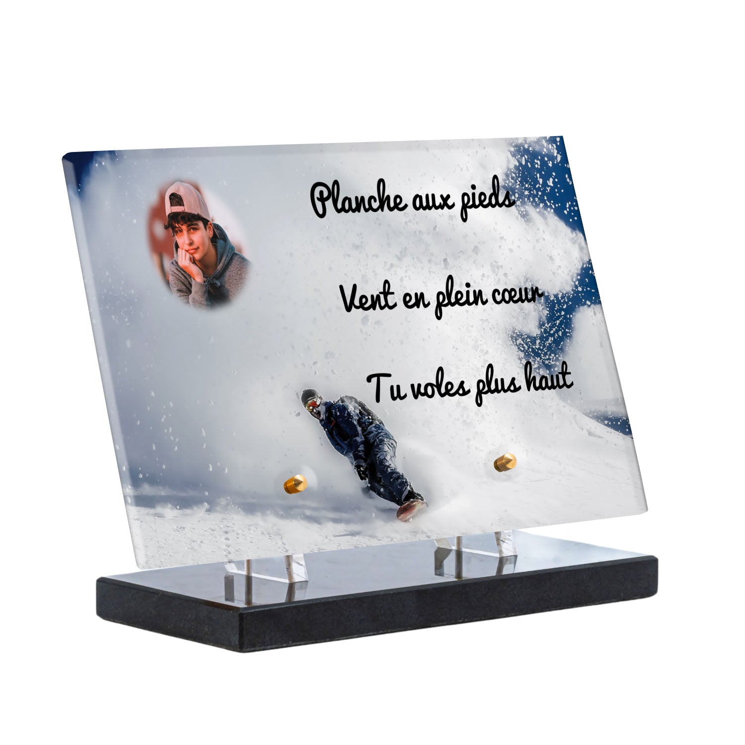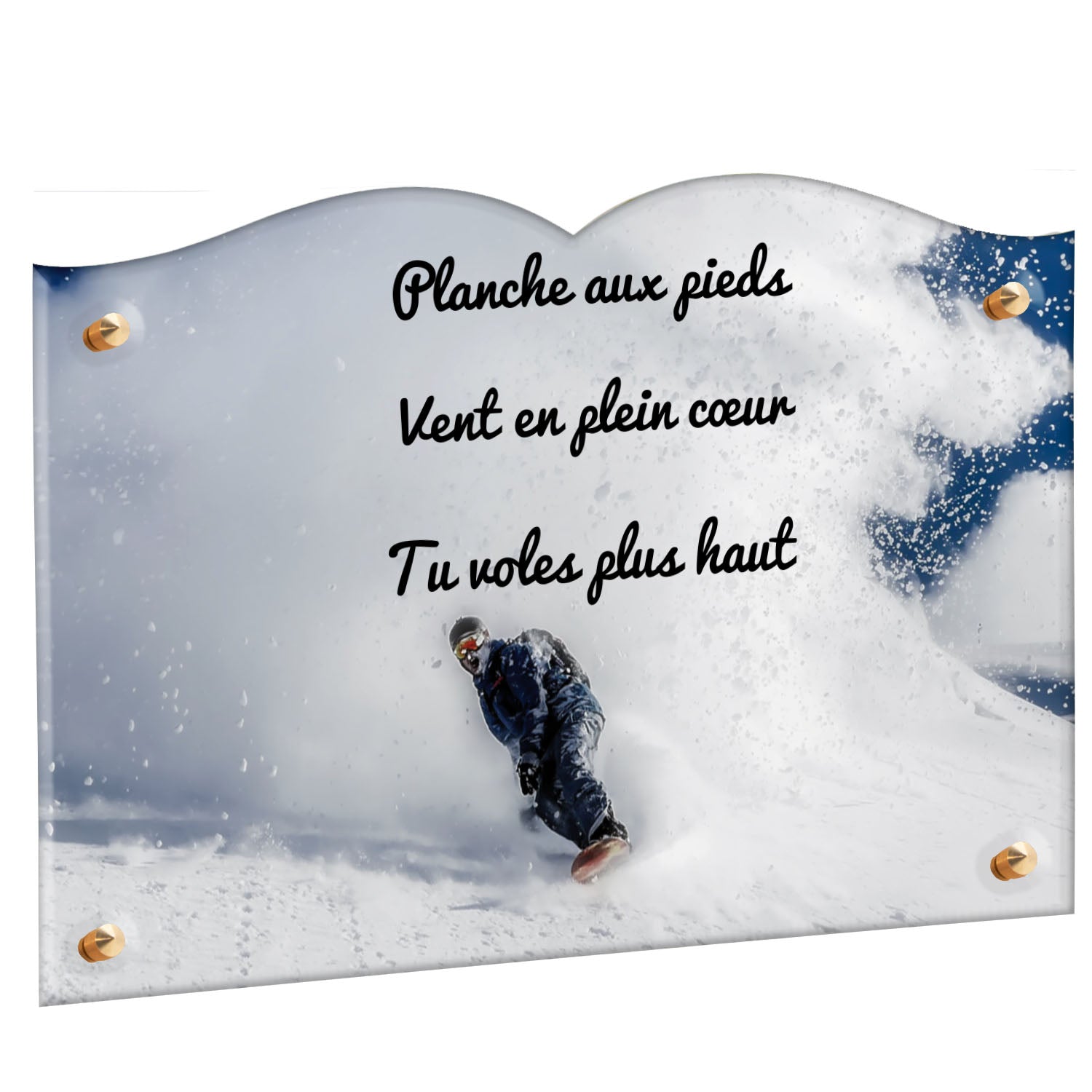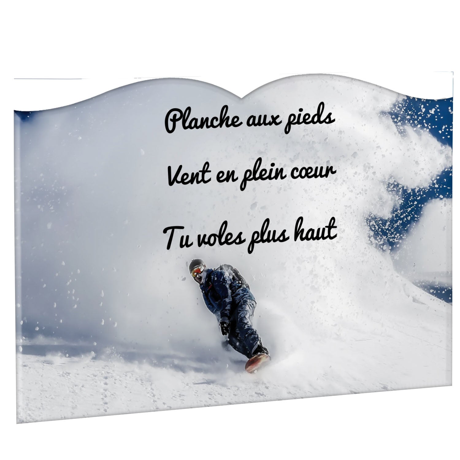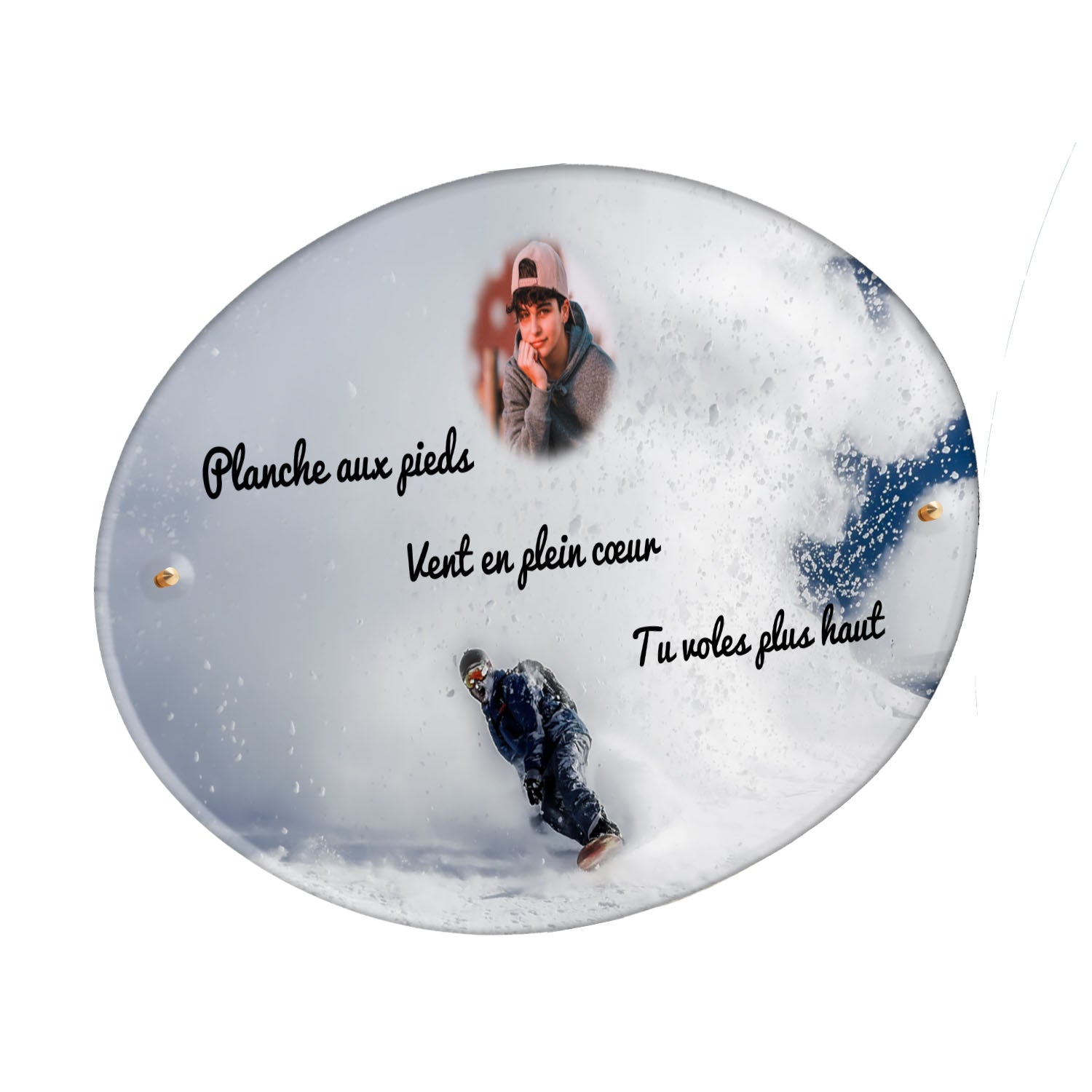 Offrez un hommage unique avec cette plaque funéraire personnalisée représentant un snowboarder, parfaite pour rendre hommage à un passionné de sports d’hiver. Cette plaque mortuaire allie design moderne et matériaux de qualité, intégrant une plaque funéraire plexiglas qui apporte élégance et résistance aux intempéries. Son style contemporain en fait une pièce remarquable parmi les plaques funéraires modernes.