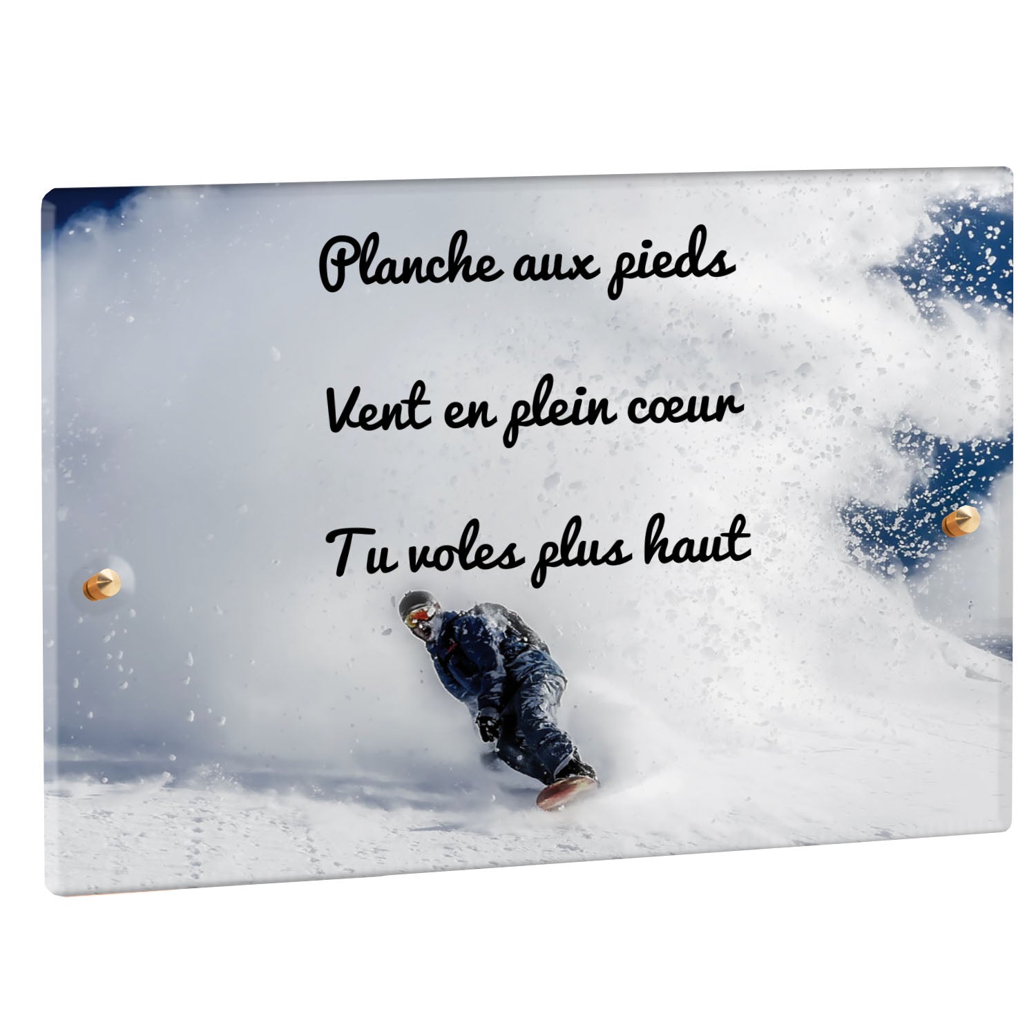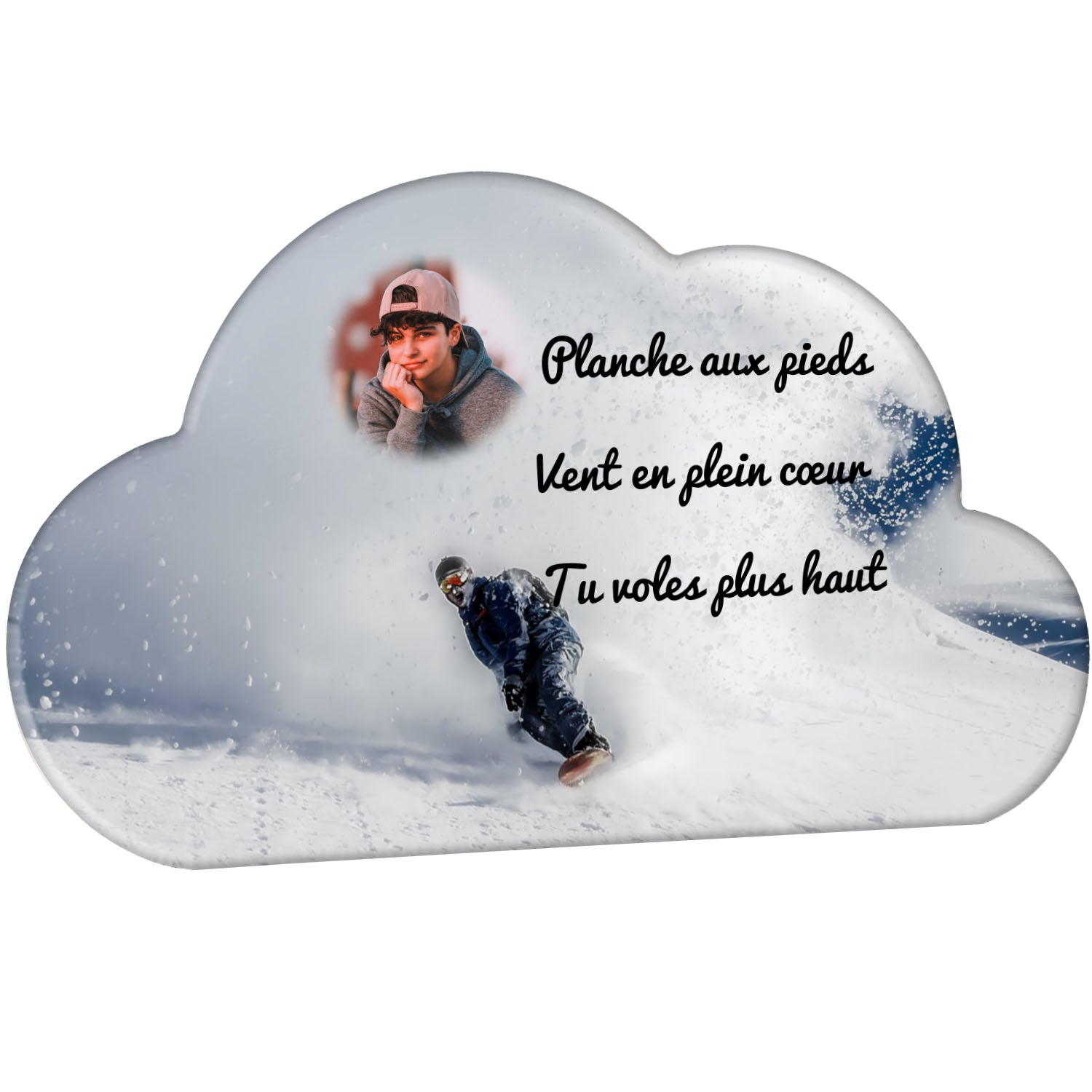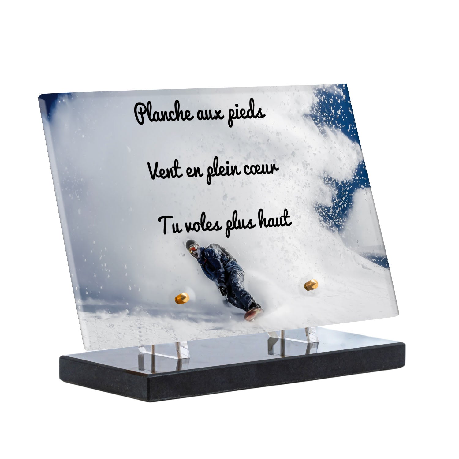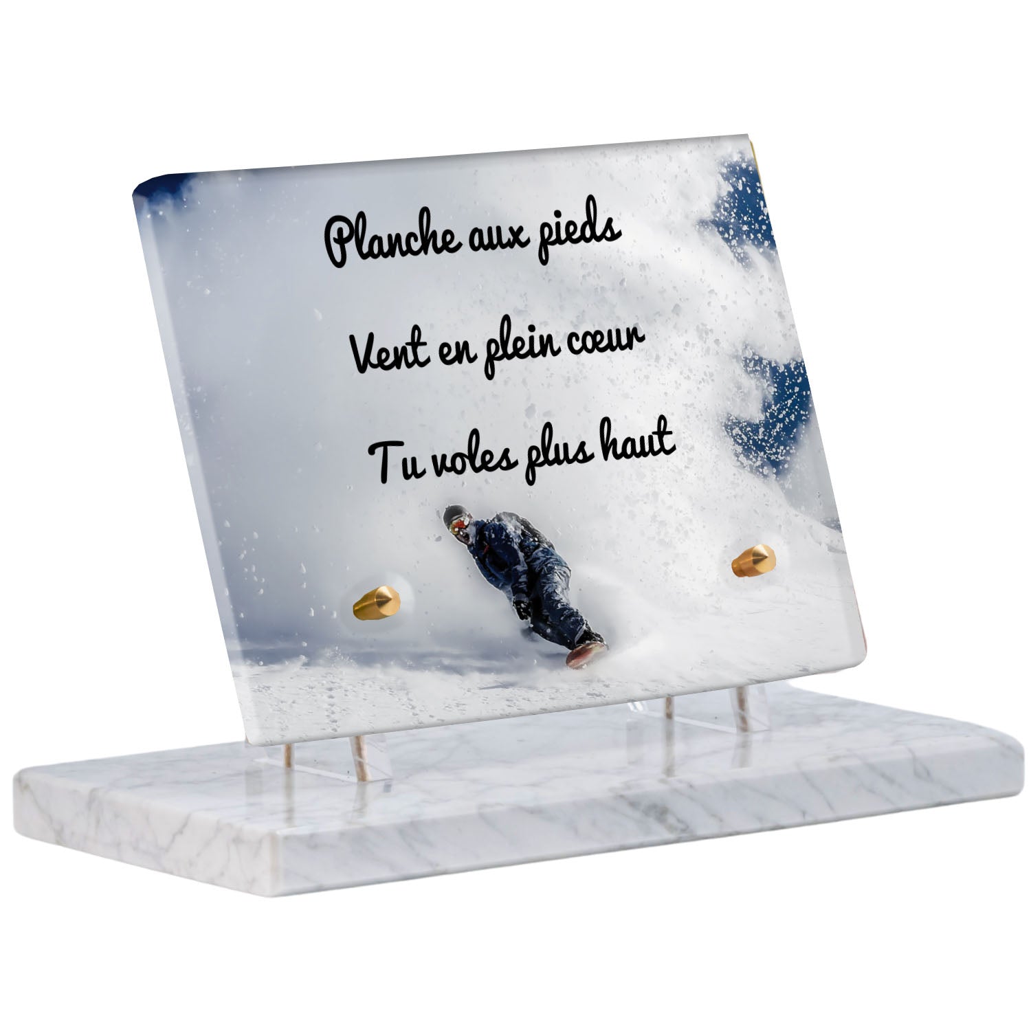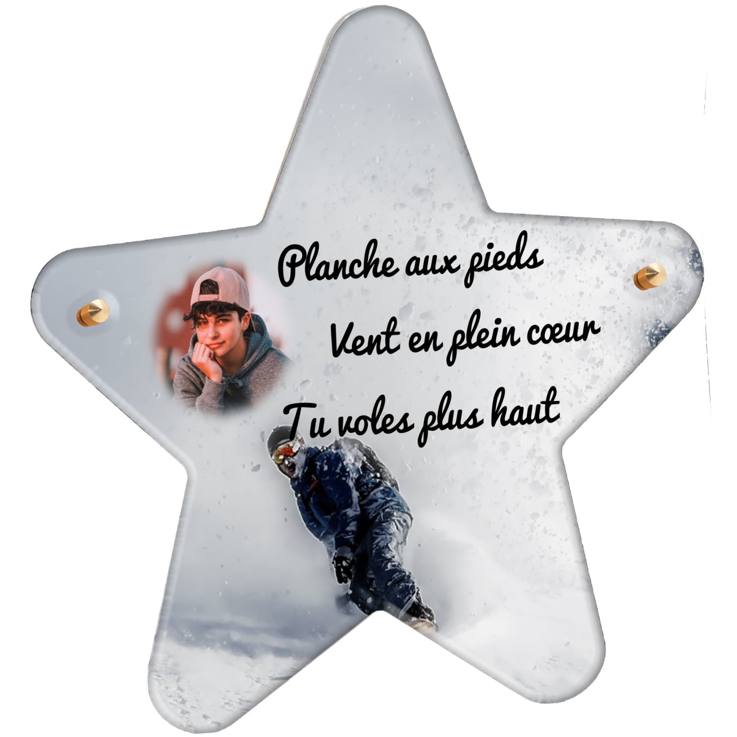 Offrez un hommage unique avec cette plaque funéraire personnalisée représentant un snowboarder, parfaite pour rendre hommage à un passionné de sports d’hiver. Cette plaque mortuaire allie design moderne et matériaux de qualité, intégrant une plaque funéraire plexiglas qui apporte élégance et résistance aux intempéries. Son style contemporain en fait une pièce remarquable parmi les plaques funéraires modernes.