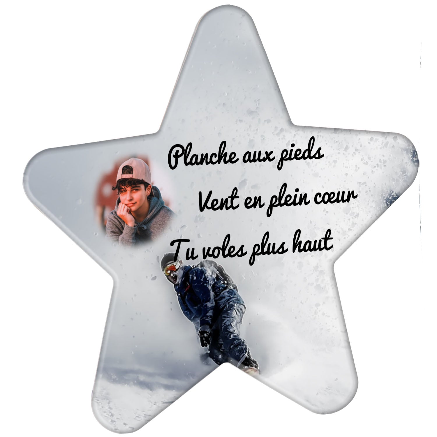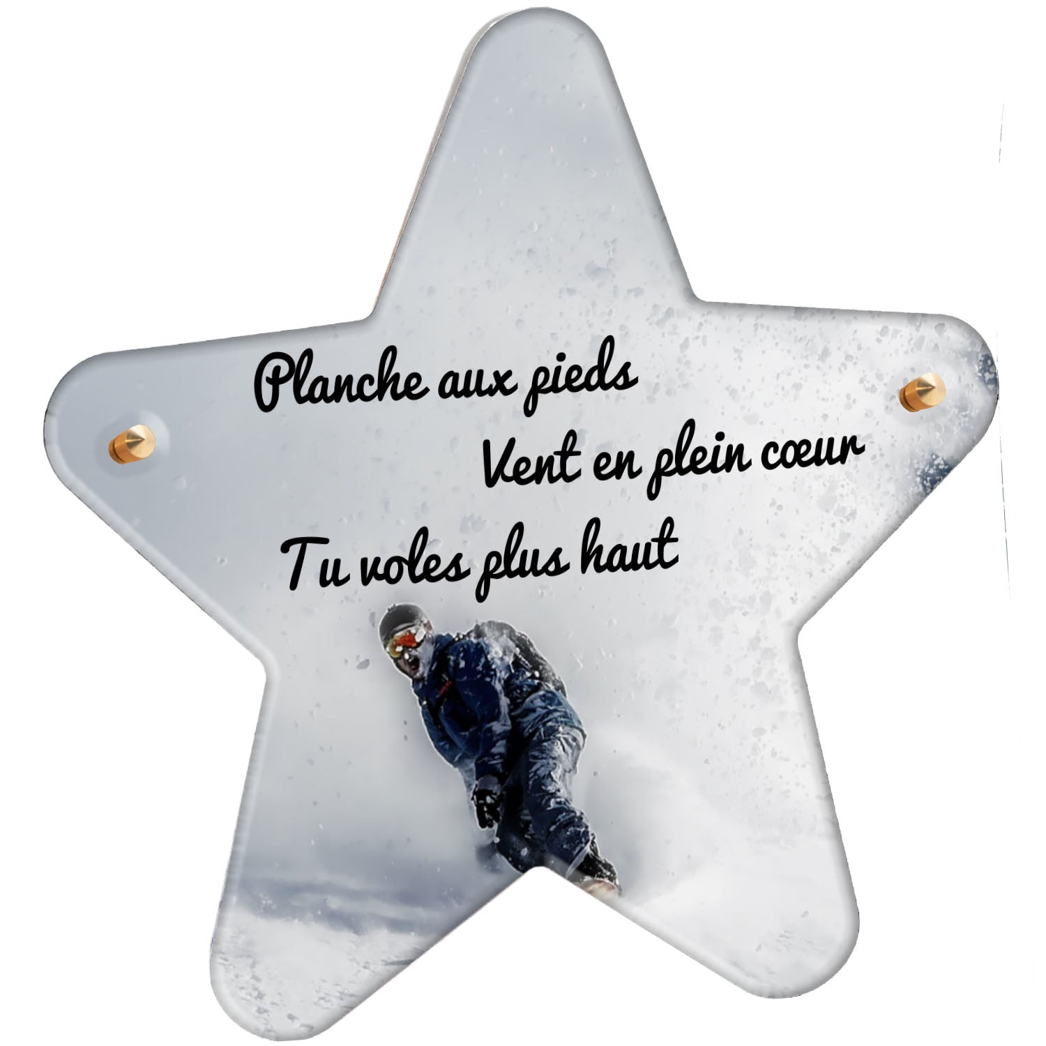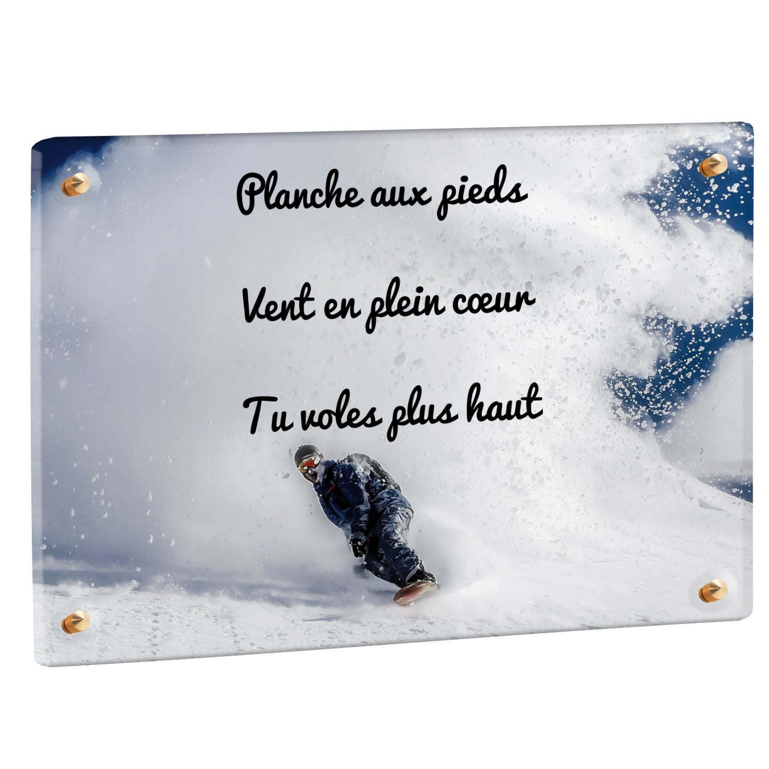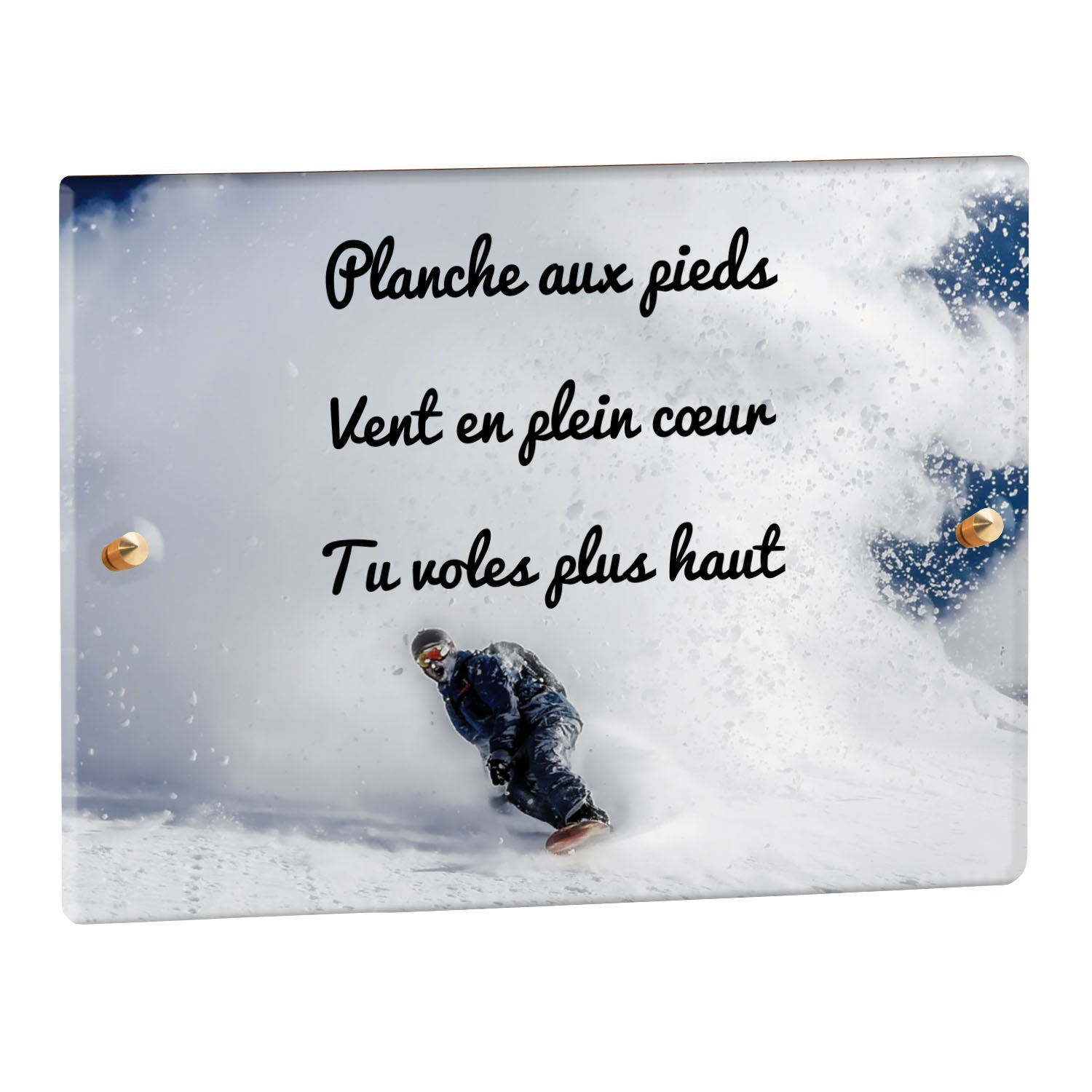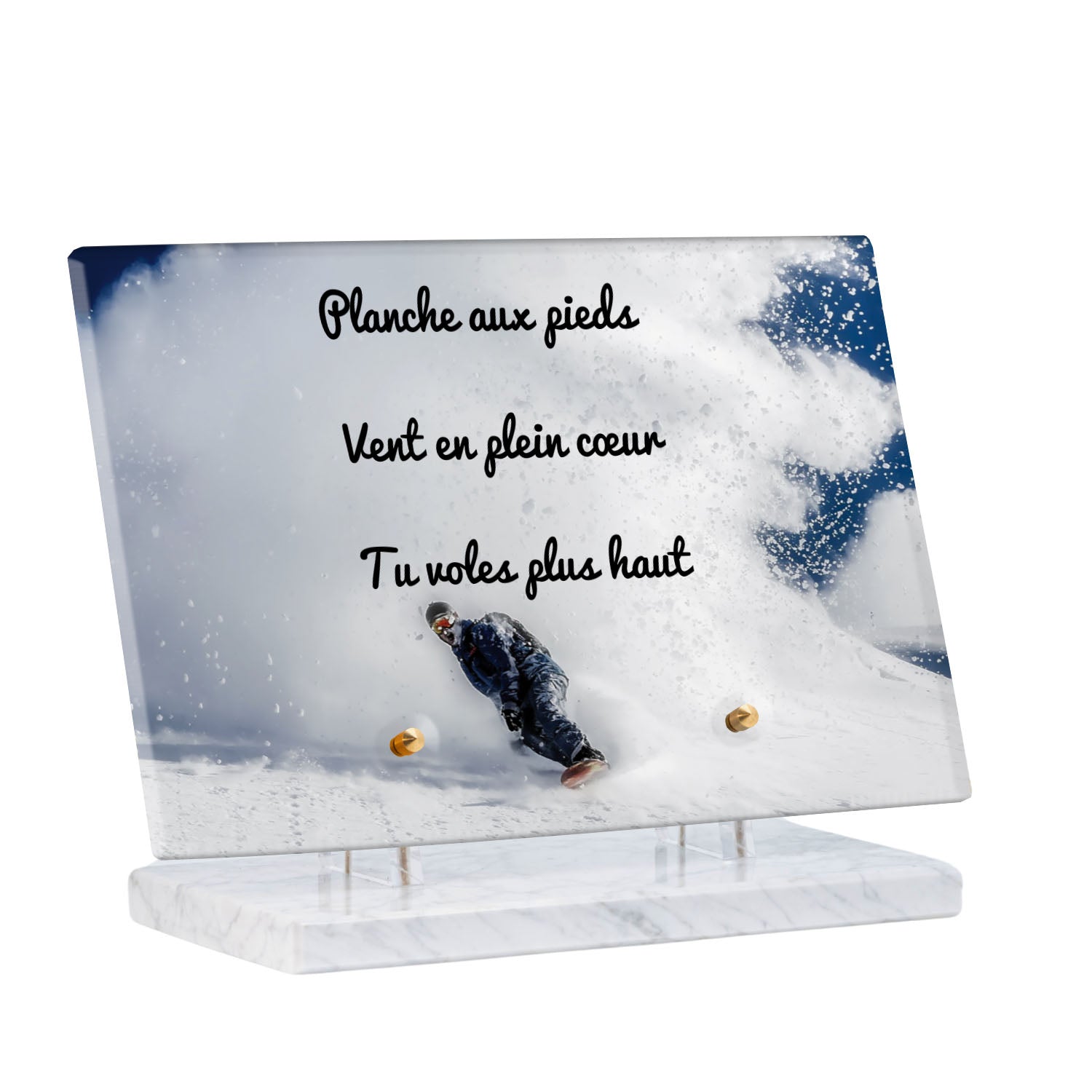 Offrez un hommage unique avec cette plaque funéraire personnalisée représentant un snowboarder, parfaite pour rendre hommage à un passionné de sports d’hiver. Cette plaque mortuaire allie design moderne et matériaux de qualité, intégrant une plaque funéraire plexiglas qui apporte élégance et résistance aux intempéries. Son style contemporain en fait une pièce remarquable parmi les plaques funéraires modernes.